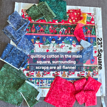 This is a 23" square that looks like it was going to be a center of a quilt. Well, nothing has happened yet so it's time to ship it off to a new home that will make something more with it. We're including some flannel pieces to help ignite your creativity.