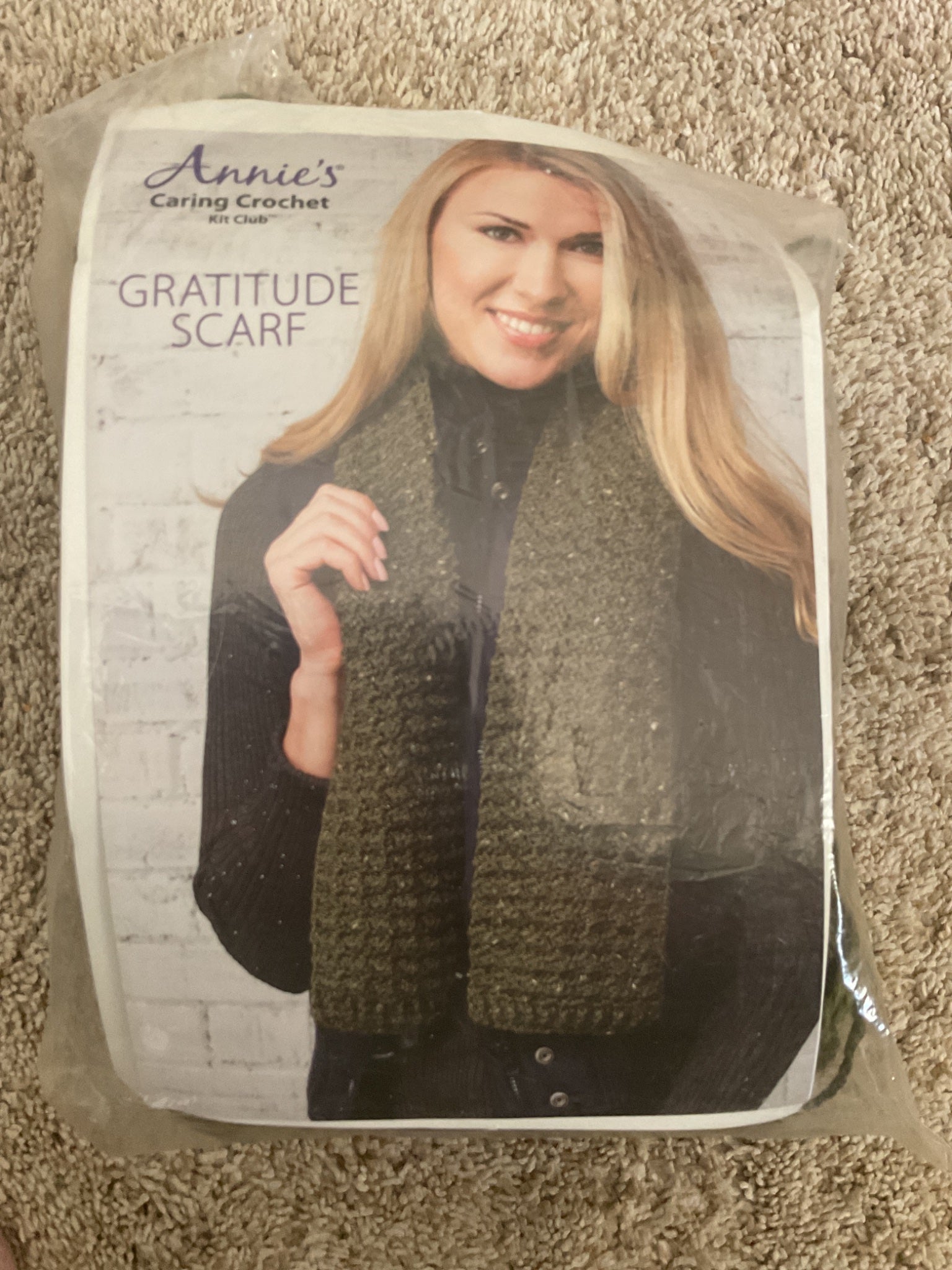 Annie’s Crochet Kit Scarf Olive Green tweed