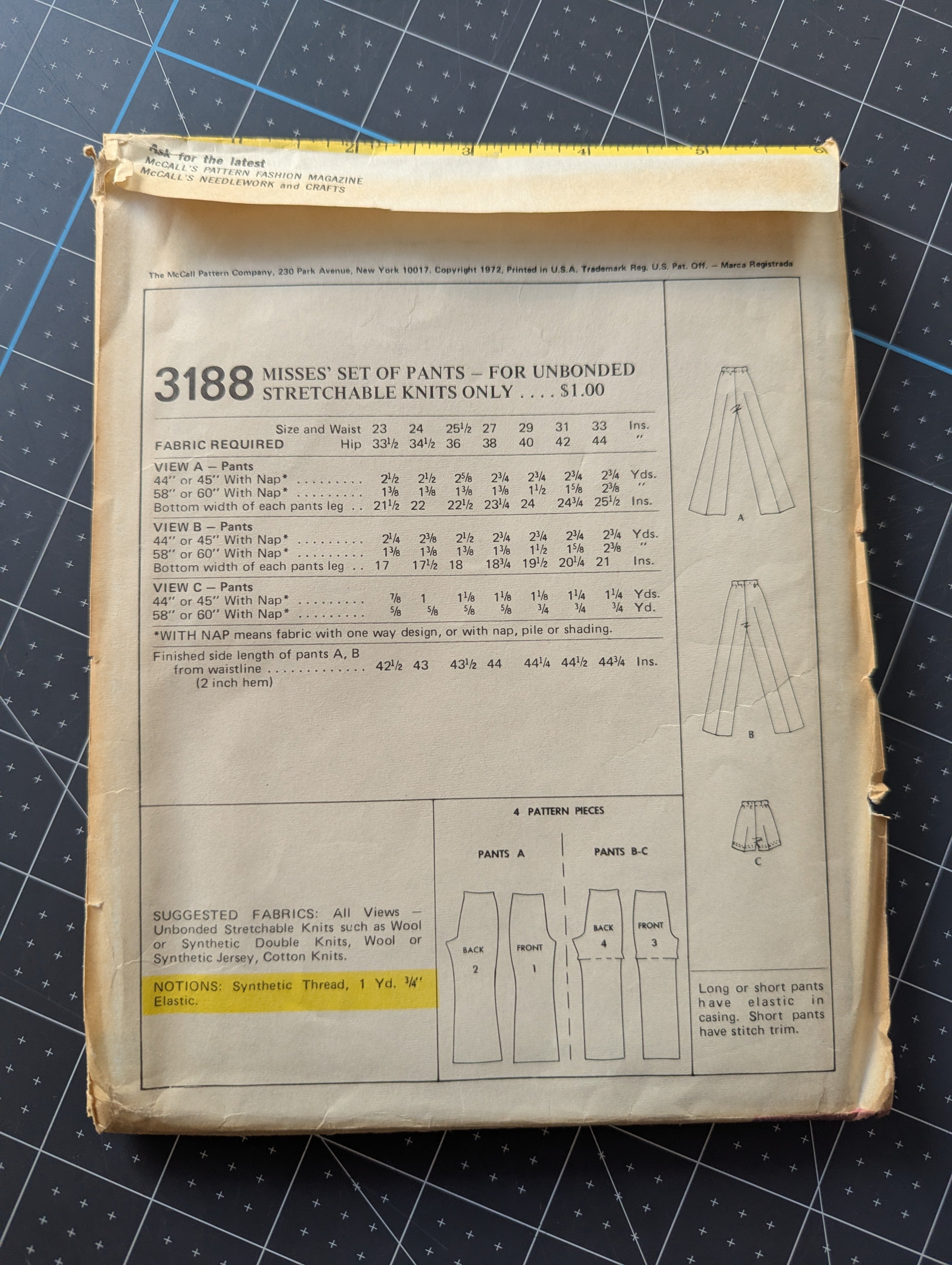 McCall's Set of Pants Pattern #3188