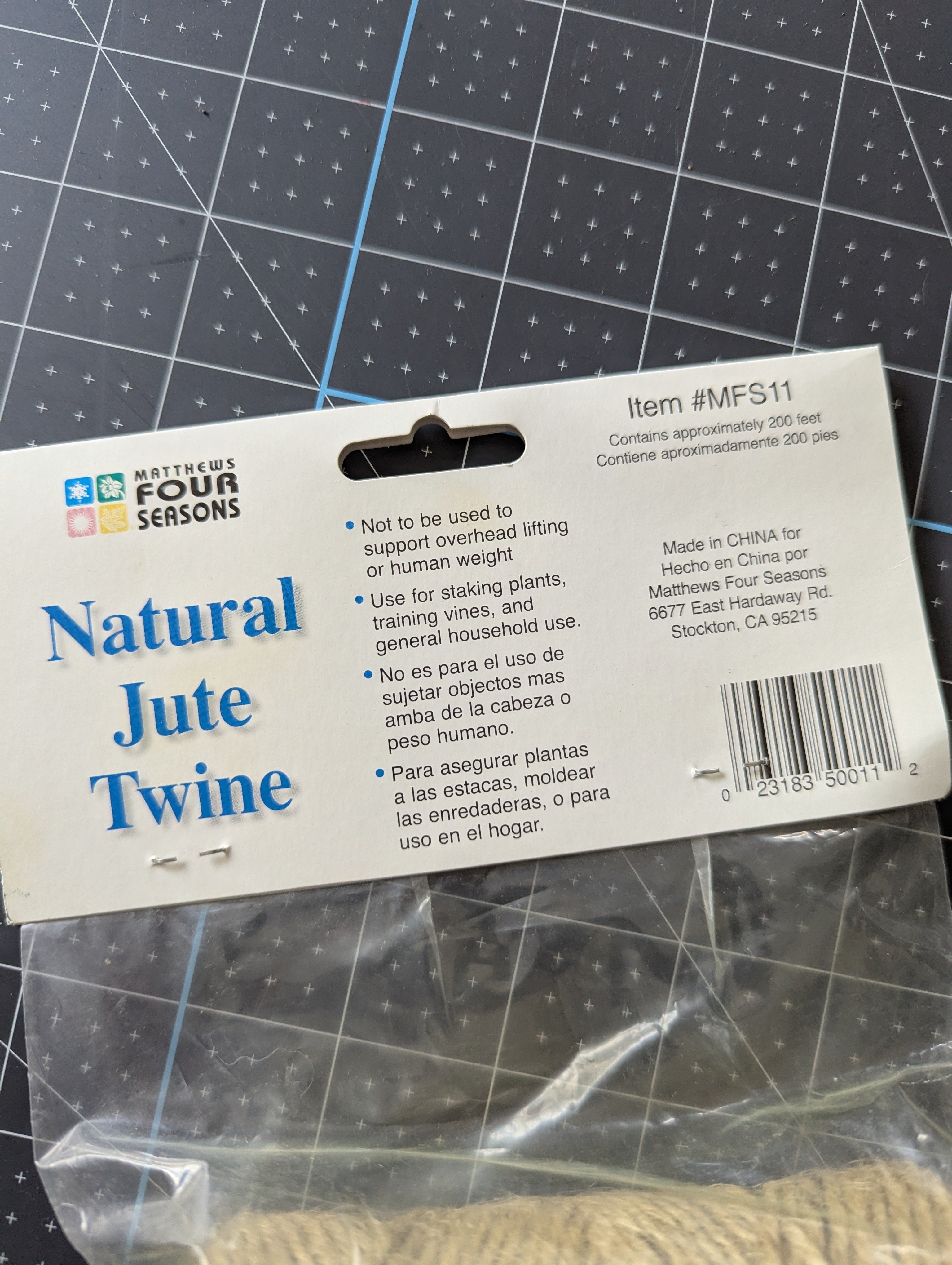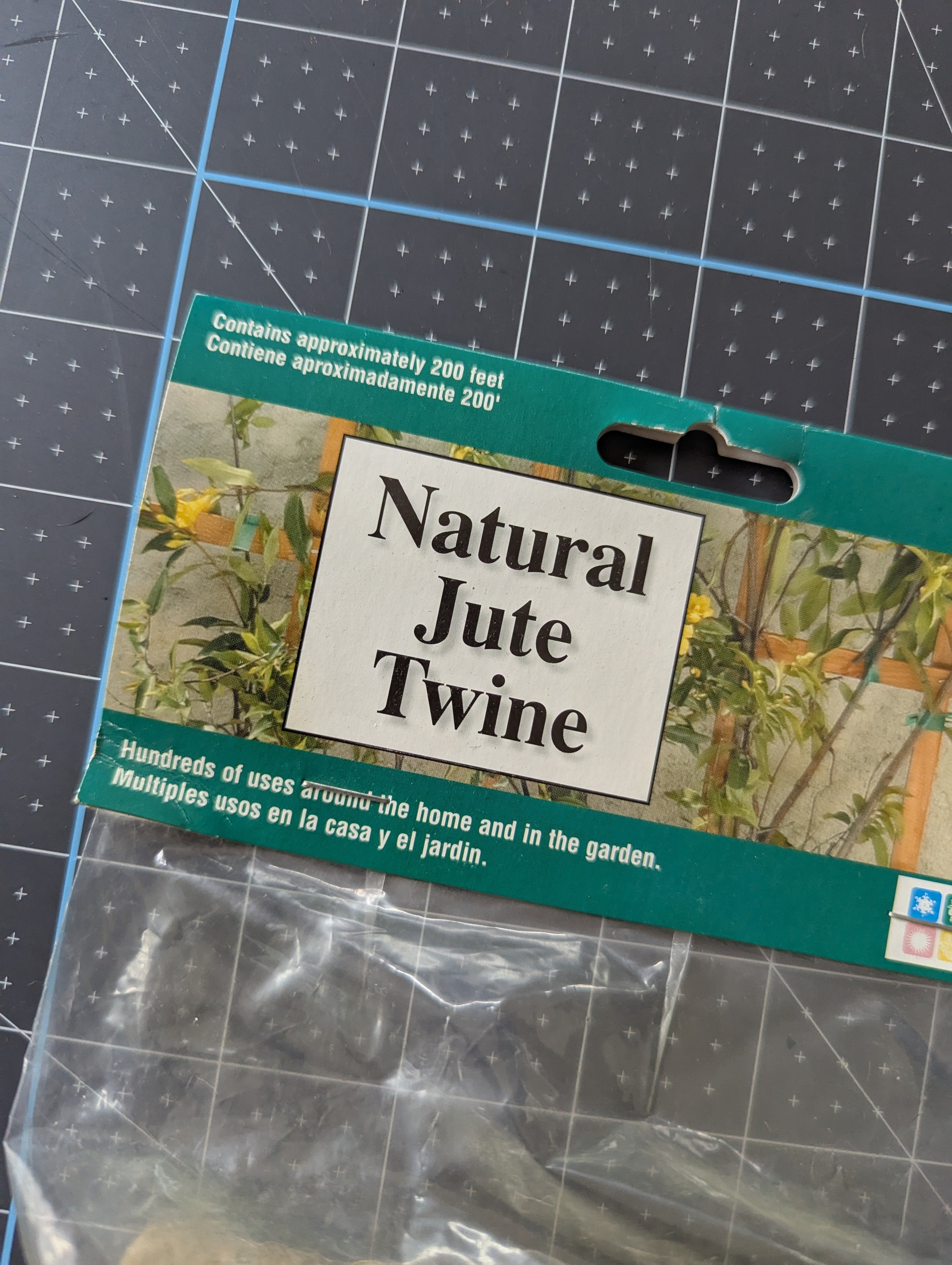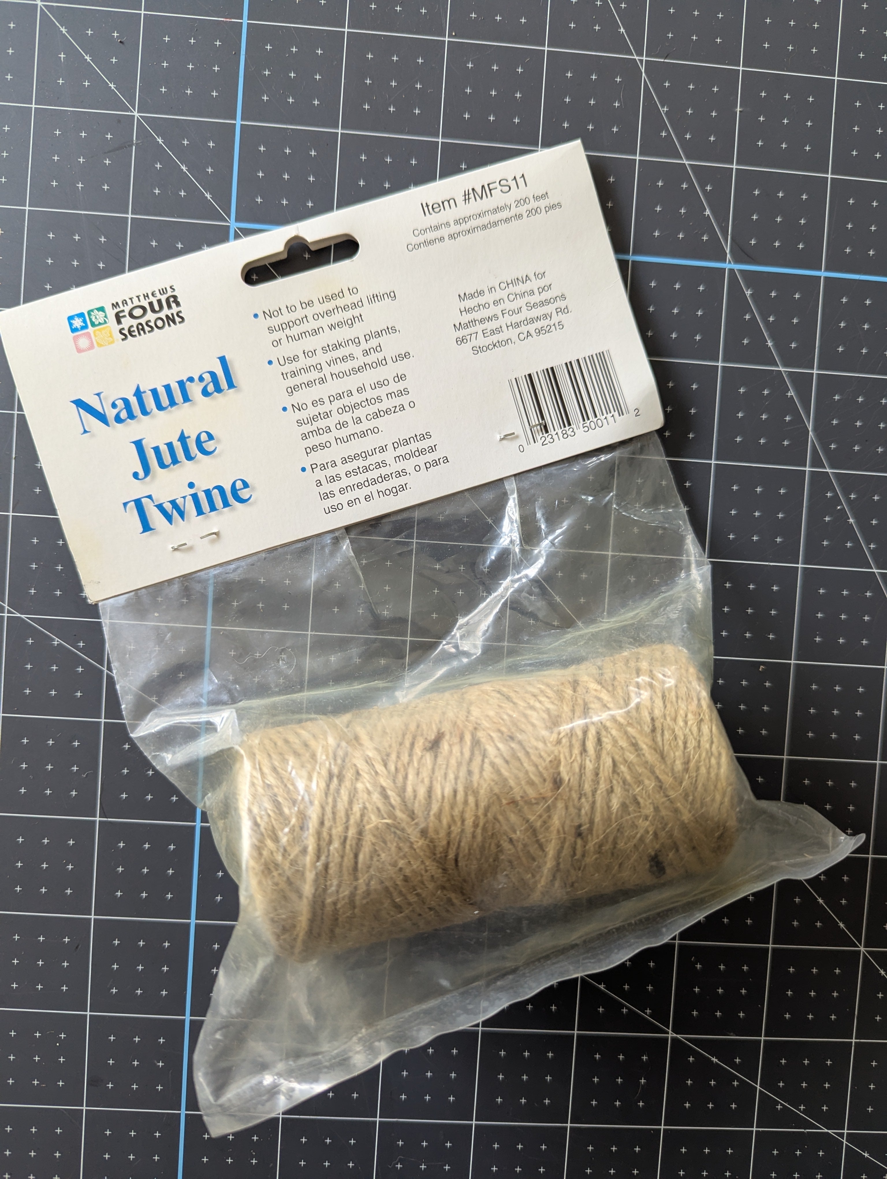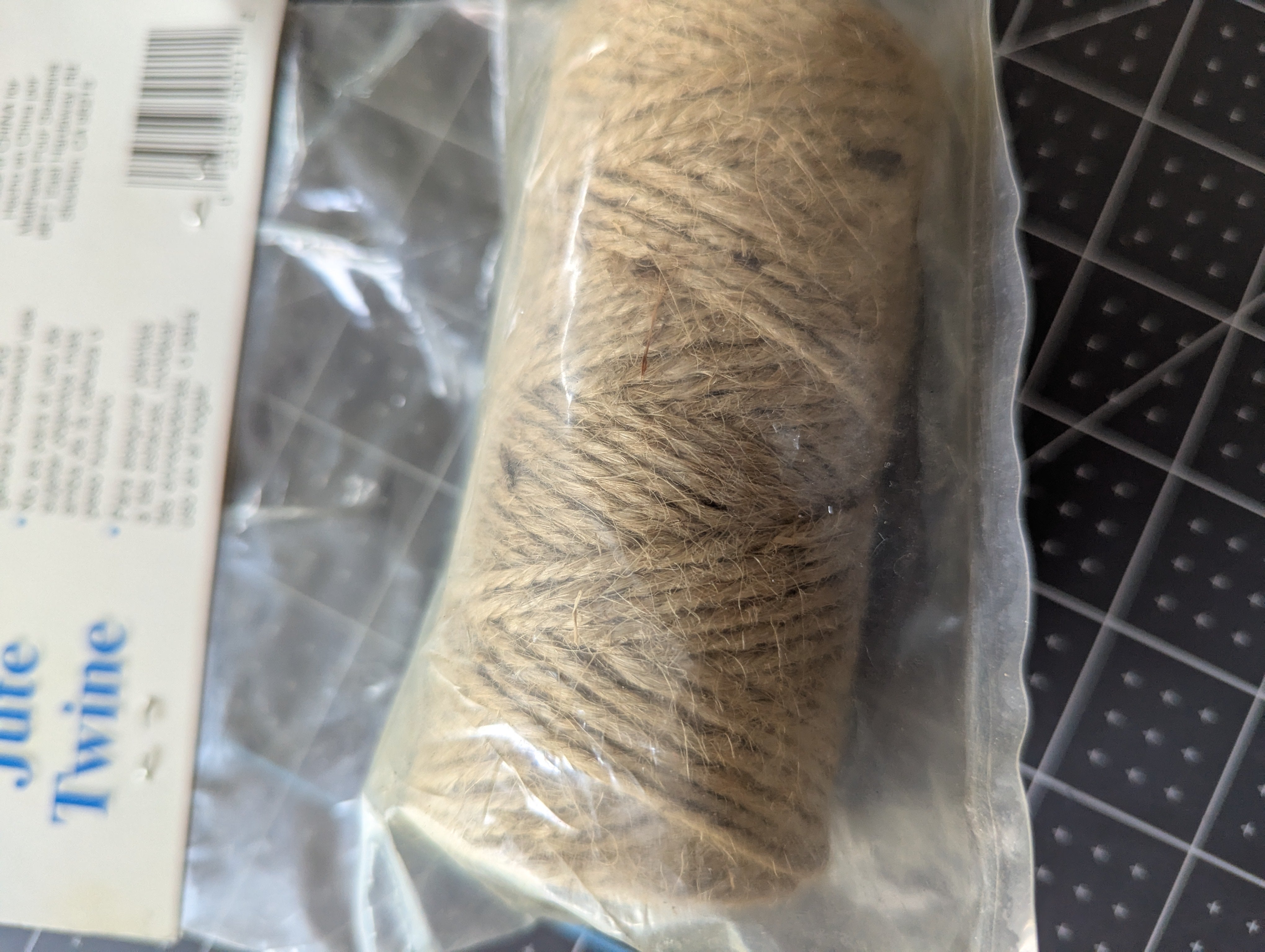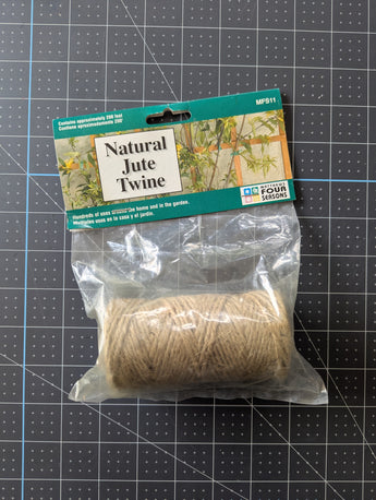 An unopened roll of natural jute twine, by Matthews Four Seasons. Approximately 200 ft.