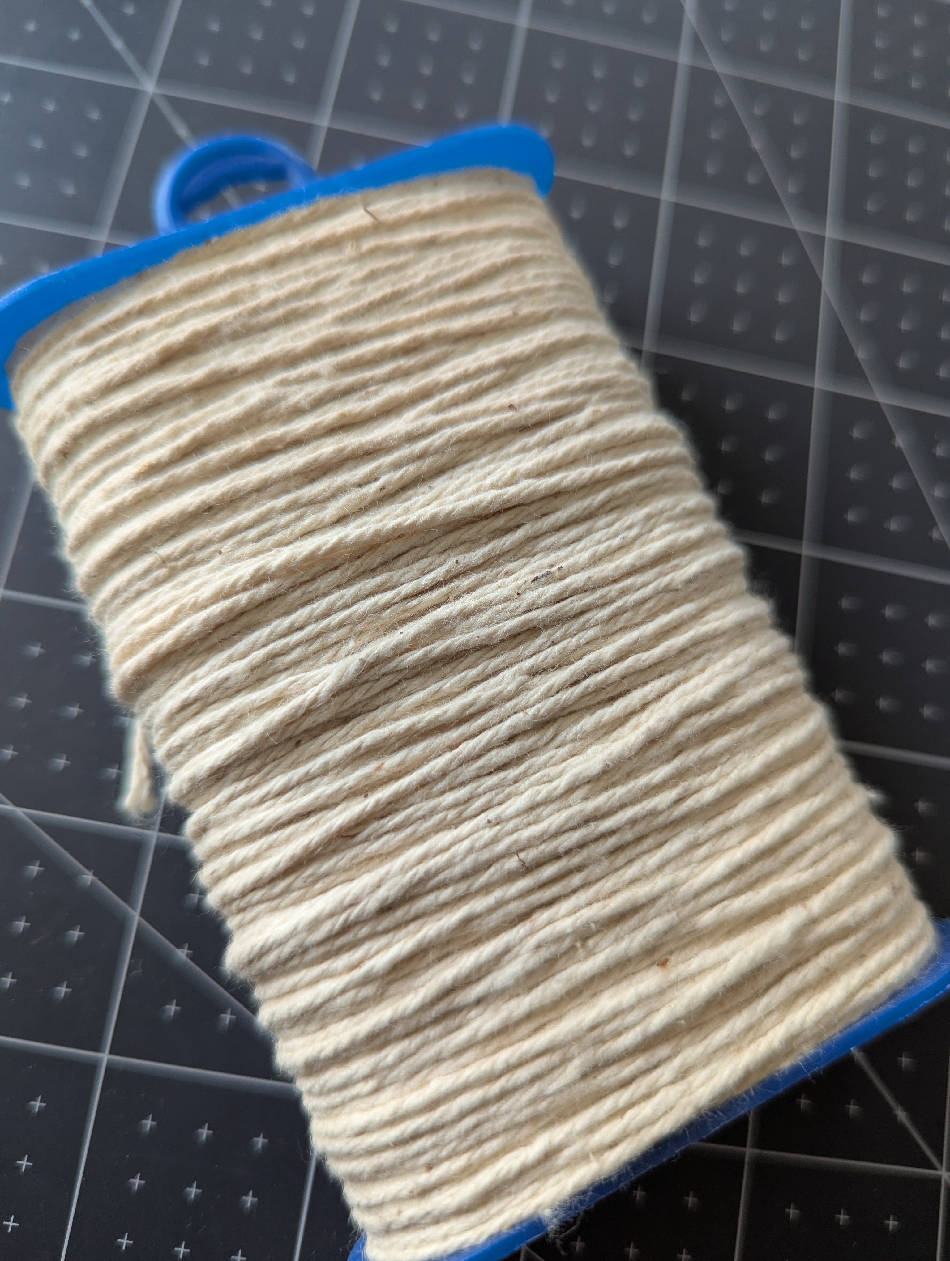 You'll receive this spool of natural style cord. It was unmarked, and we don't know the fiber content or yardage.