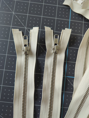 Off-White Heavy-Duty Zipper with Silver Teeth - Two Sizes