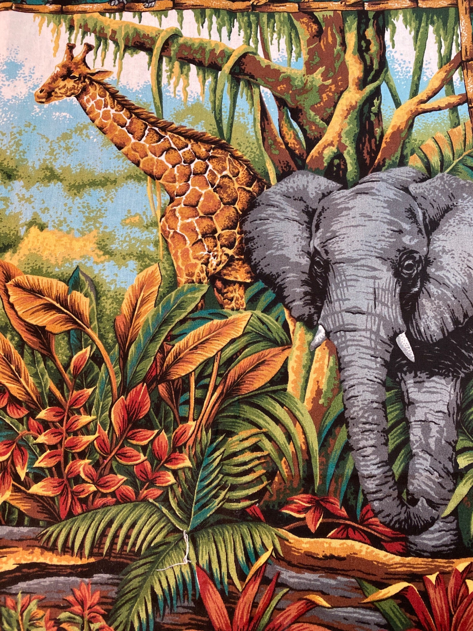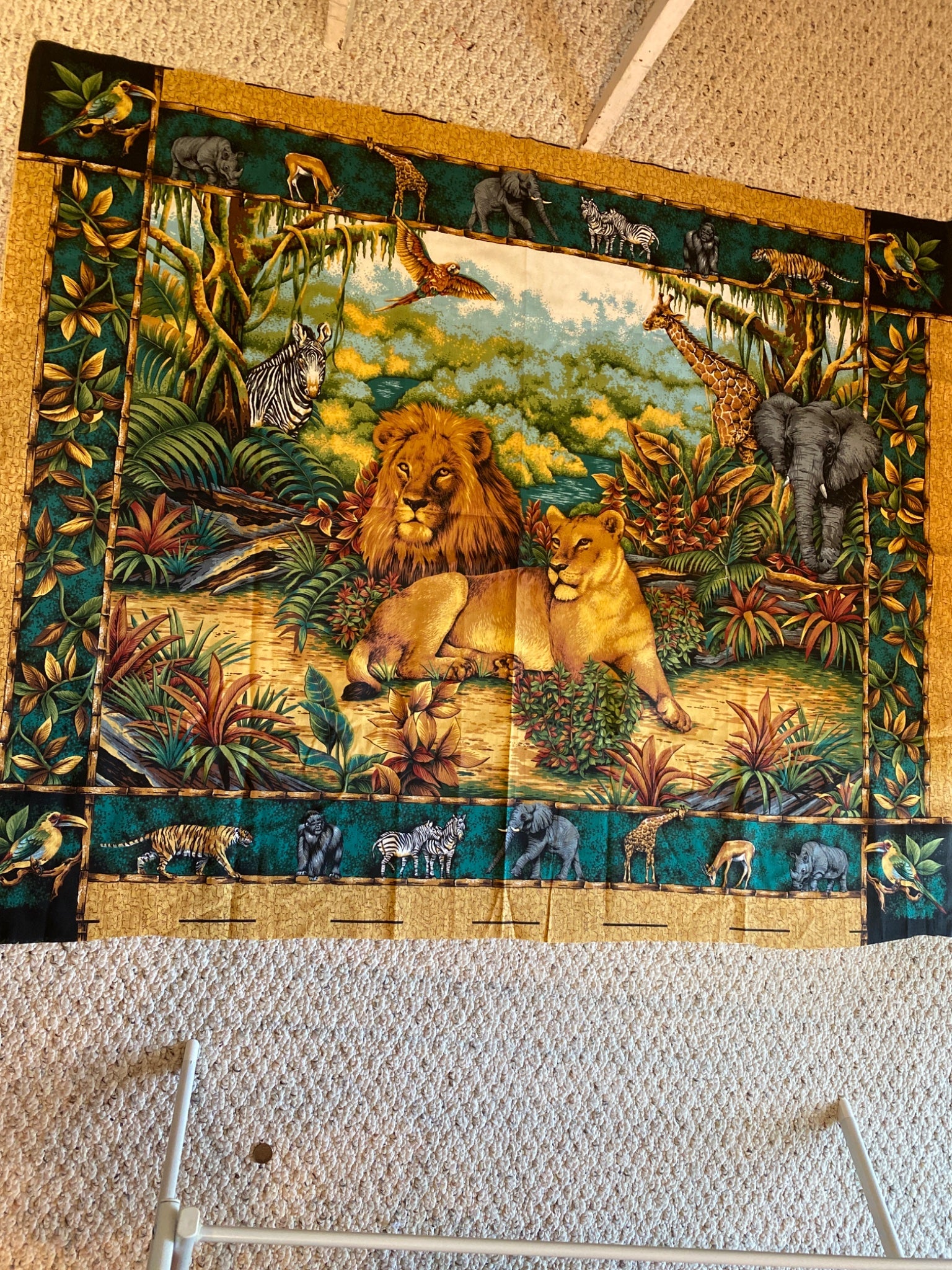 Safari tropical Animals lions cotton fabric panel 1 yd Springs