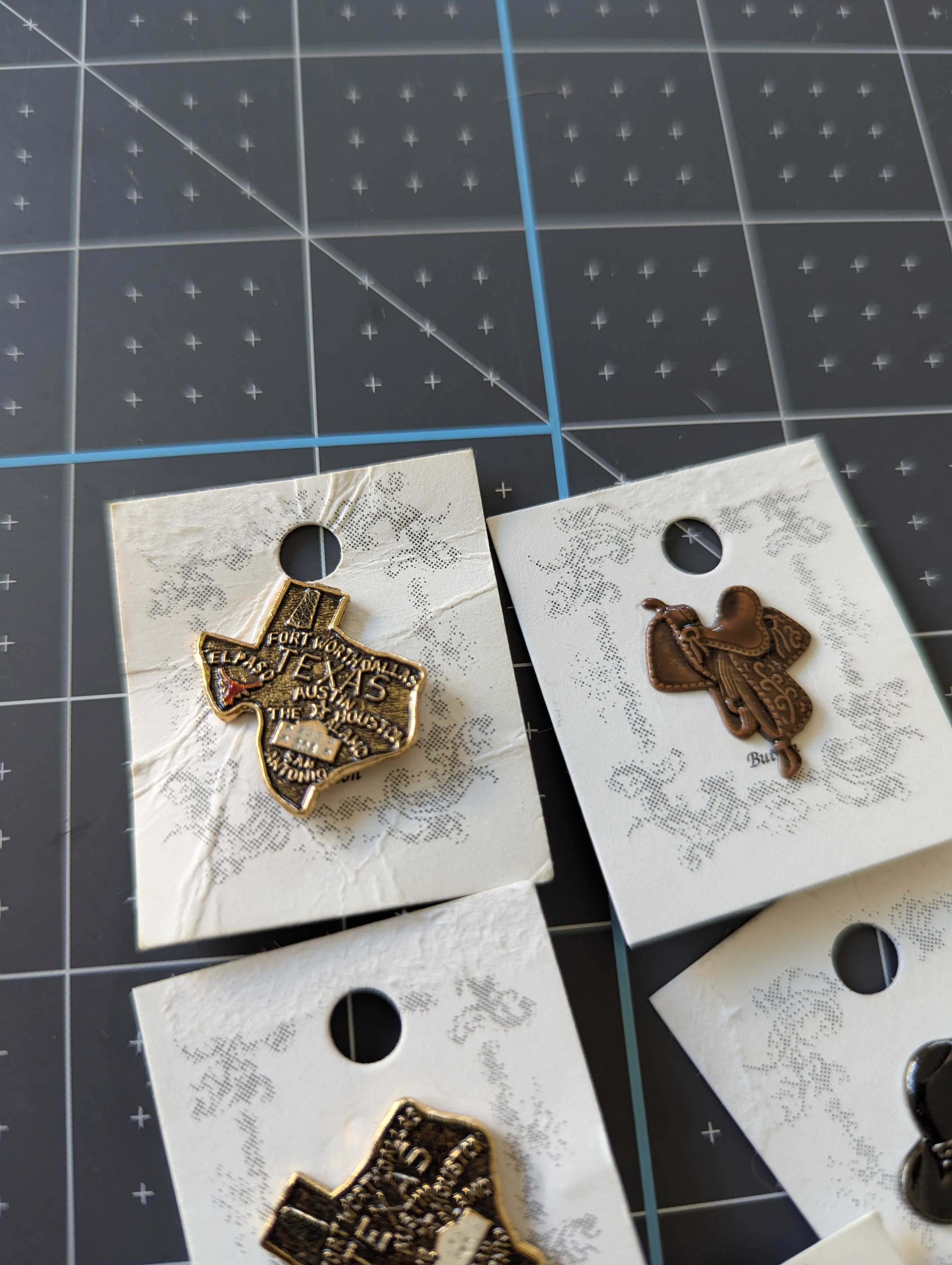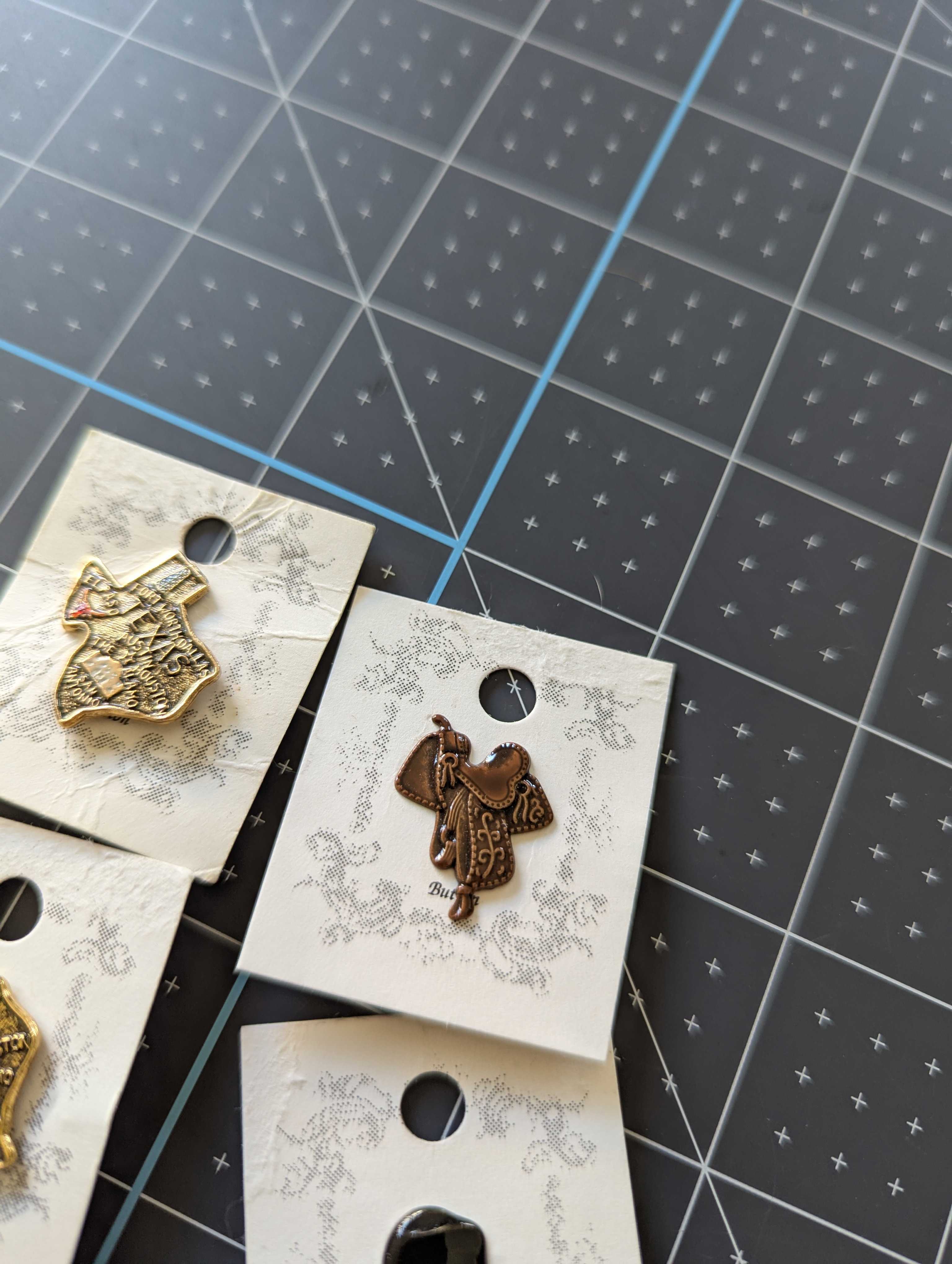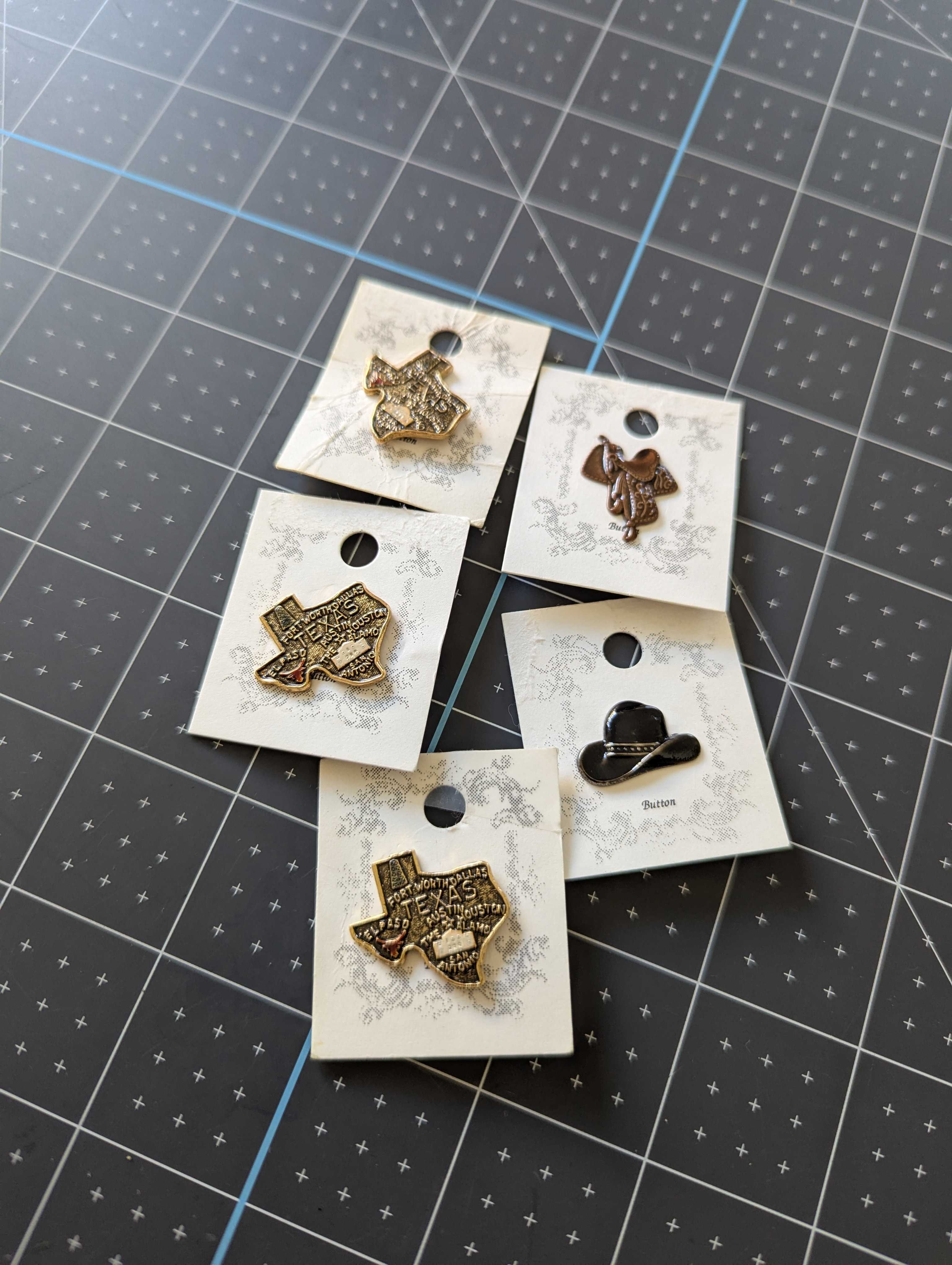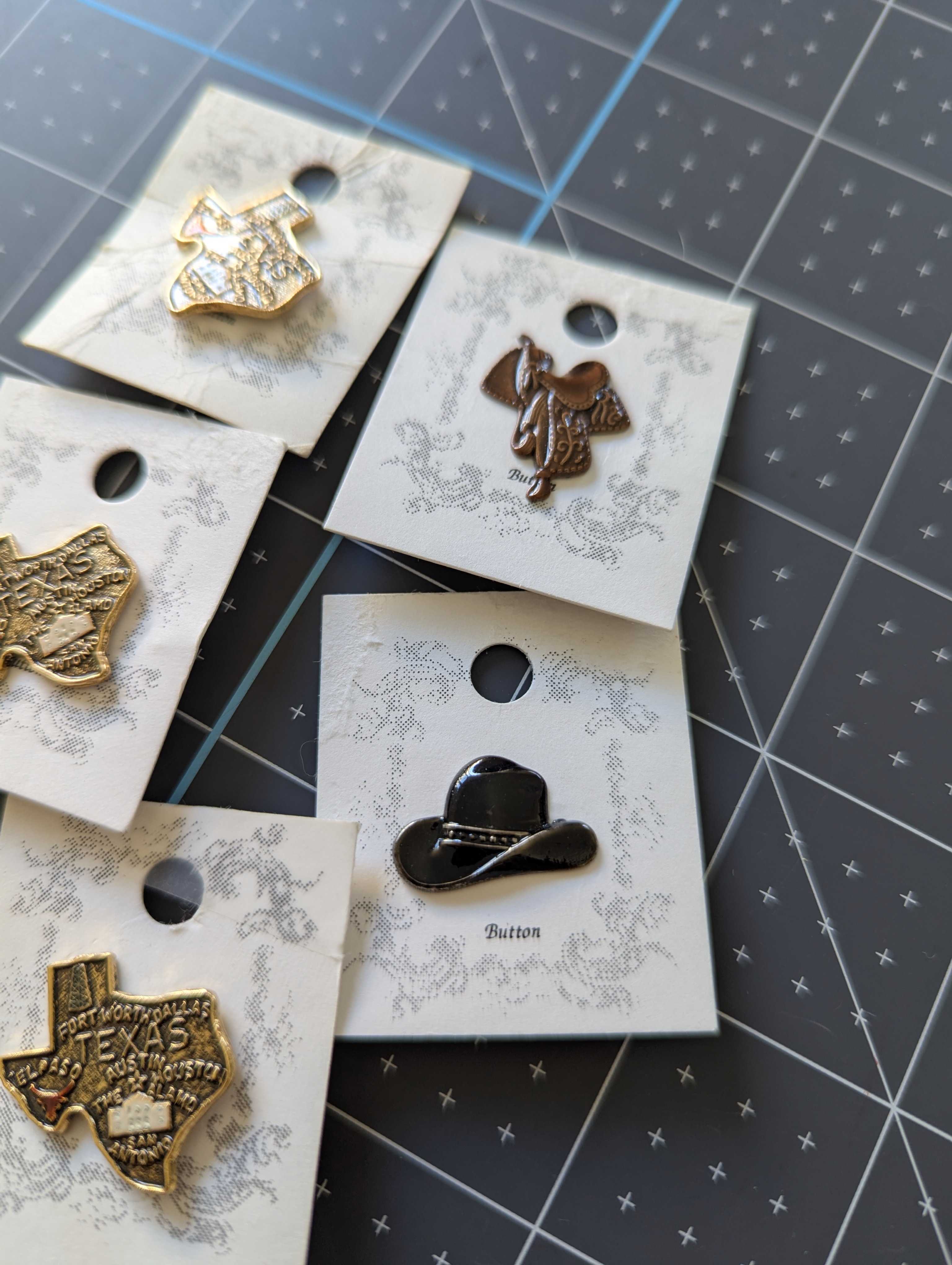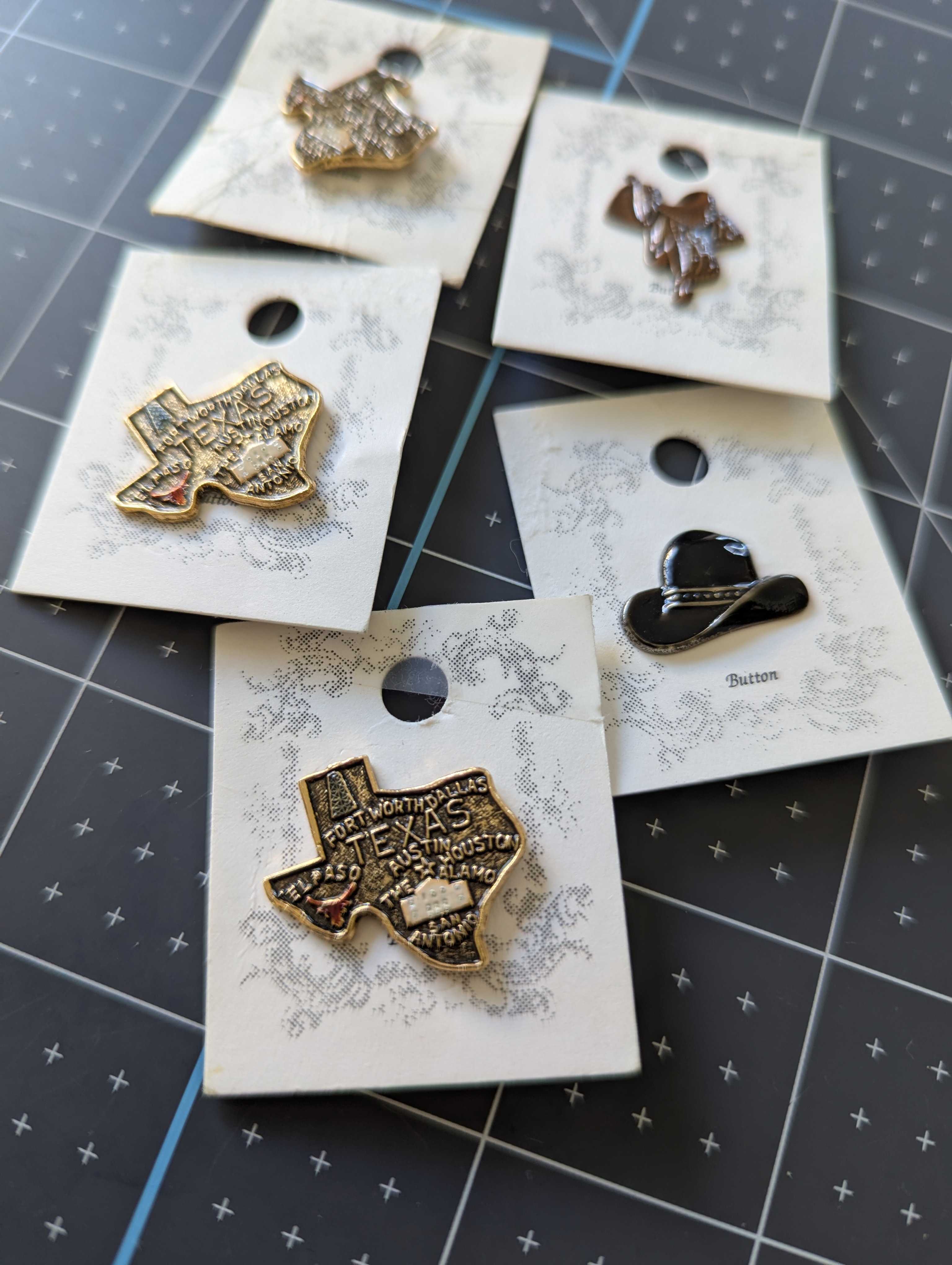 You'll receive all pictured buttons. Enameled metal. Charms are by Susan Clarke.