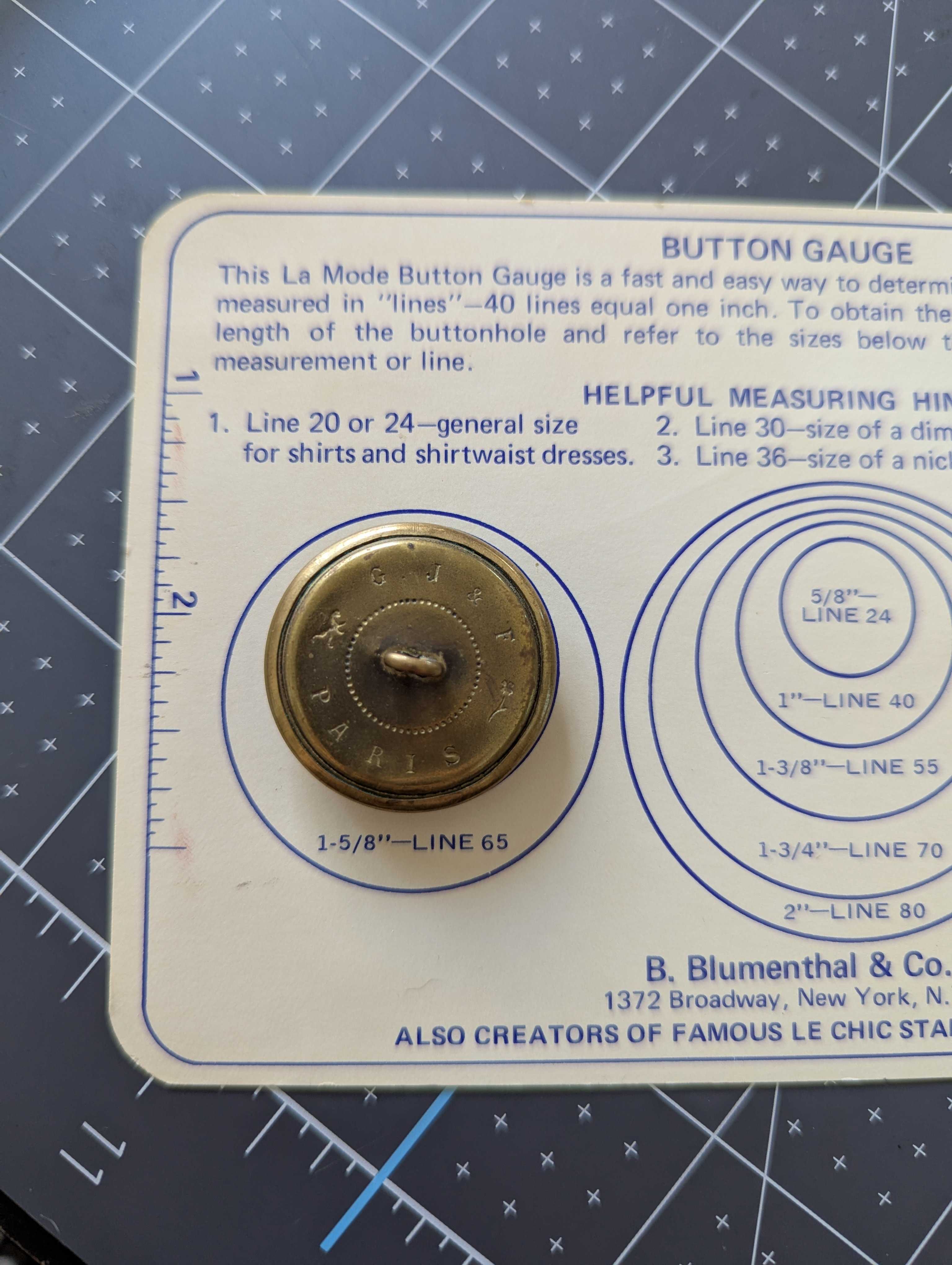 Vintage Military Button with G.J. & F. Paris Maker's Mark - 1 1/4"