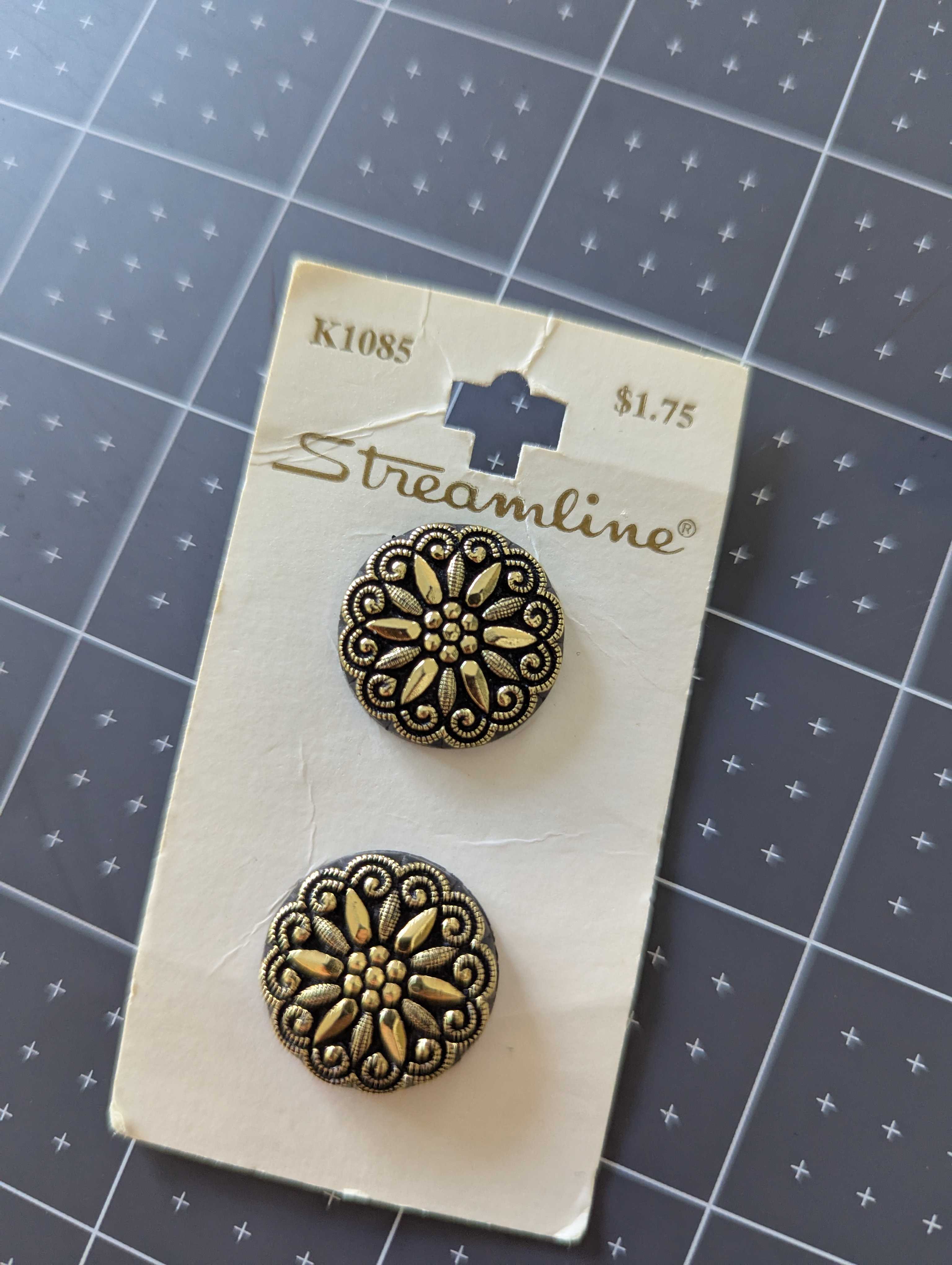 Vintage Streamline Plastic Shank Buttons - Gold & Black - 7/8"