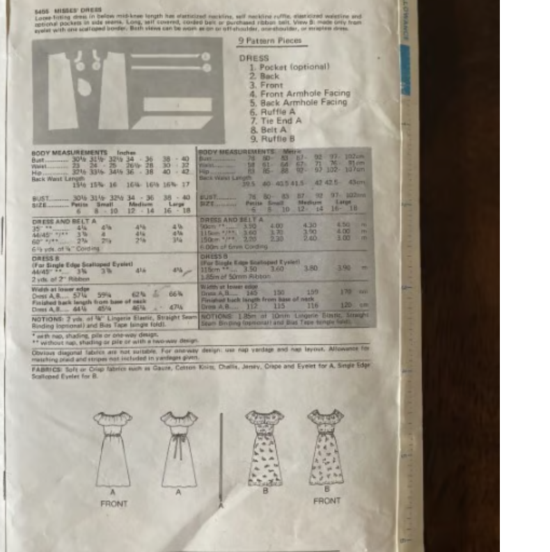 VTG ~ 1970s ~ Butterick Dress Pattern #5455 ~ Miss Size Small ~ Bust 32”