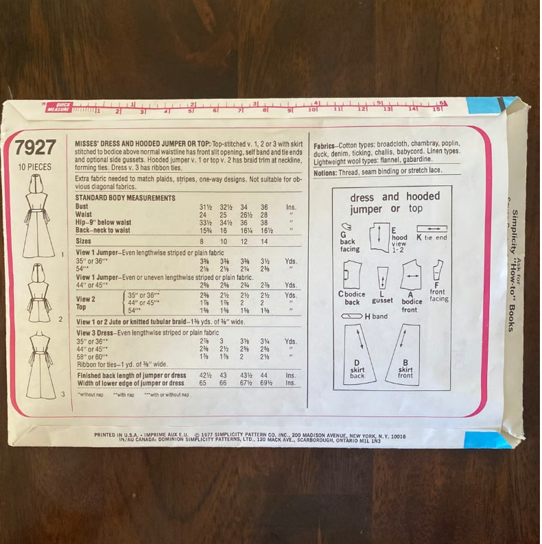 VTG ~ 1977 ~ Simplicity Dress Pattern #7927 ~ Miss Size 8 ~ Bust 31.5”