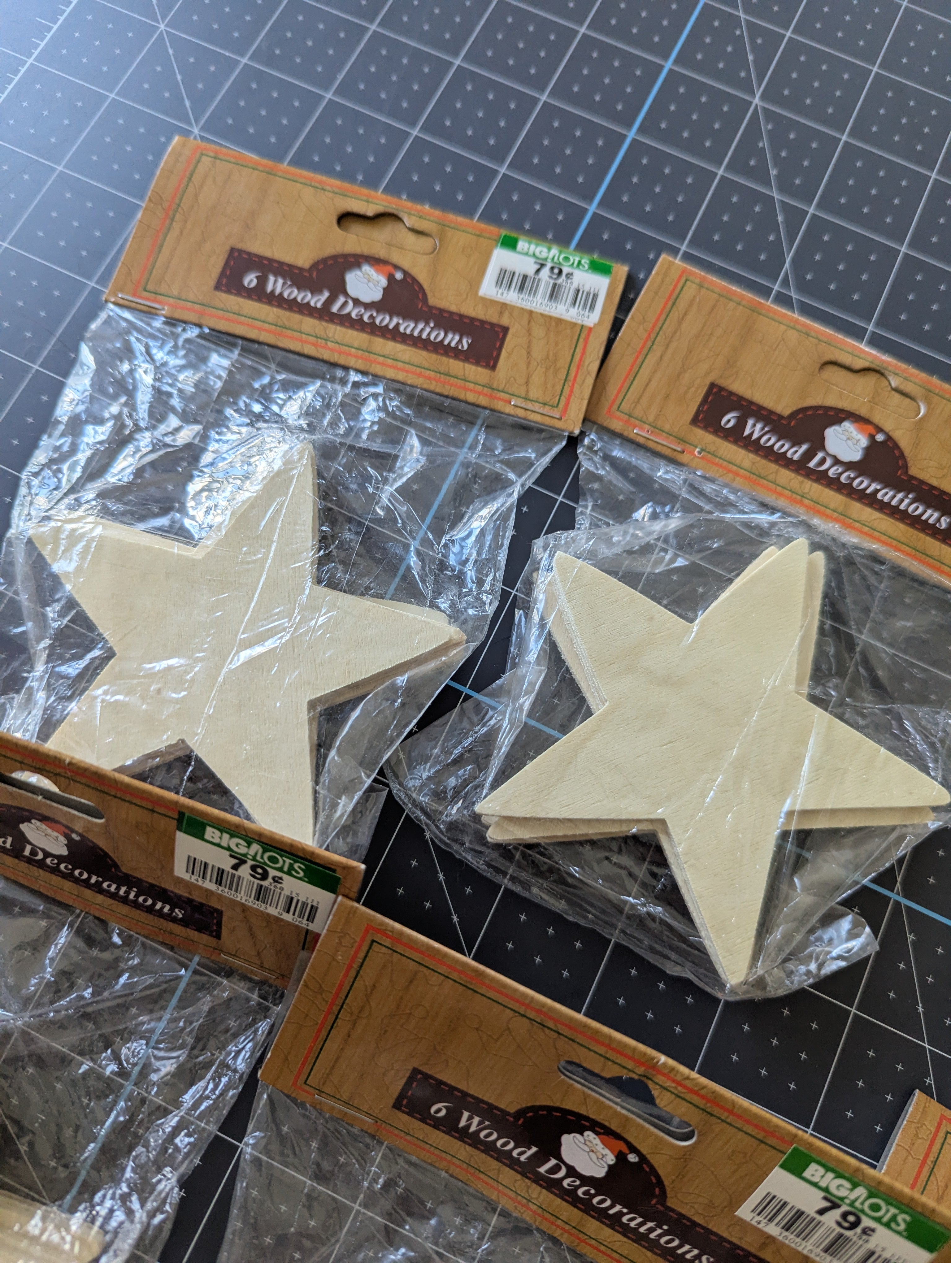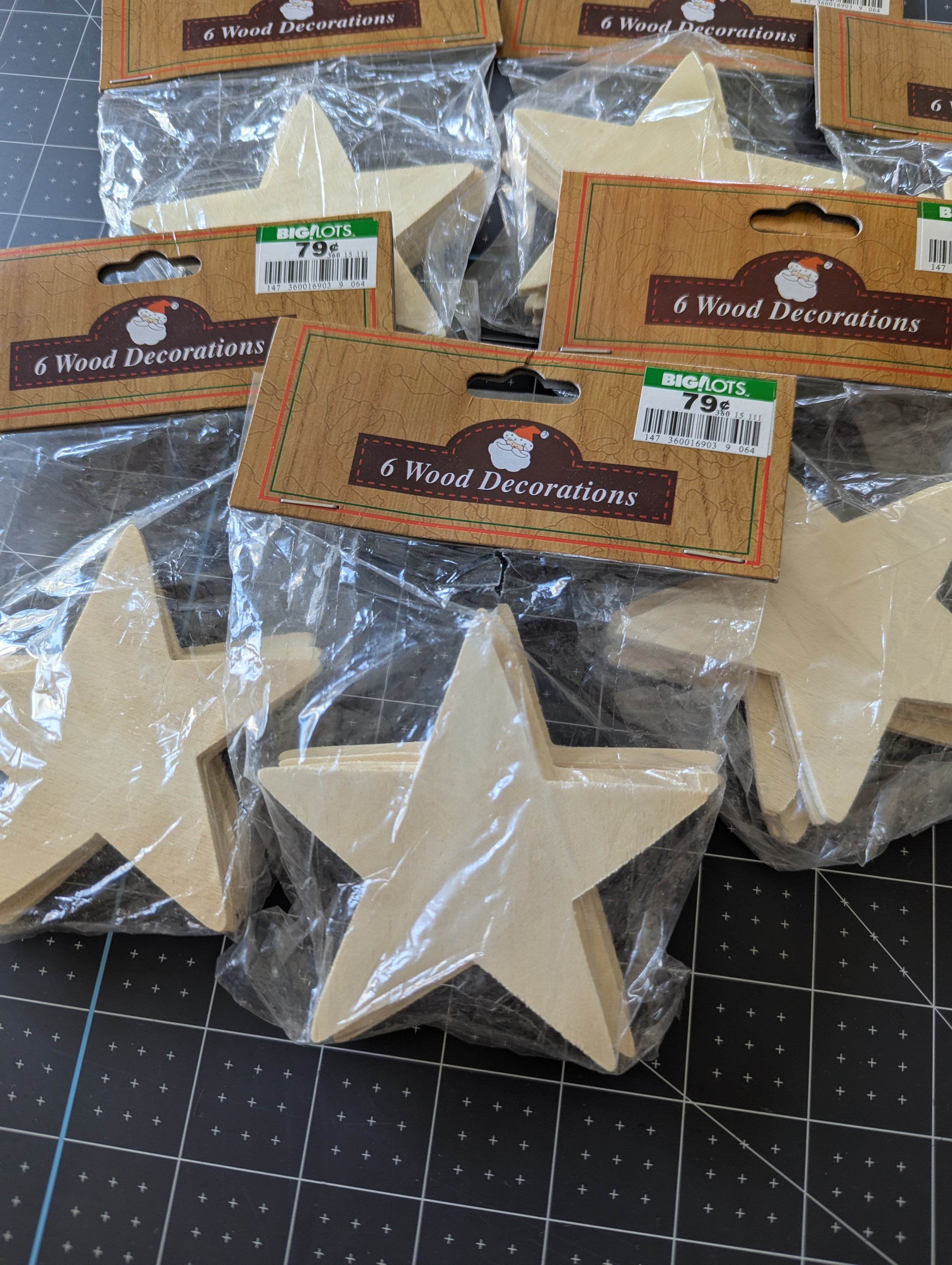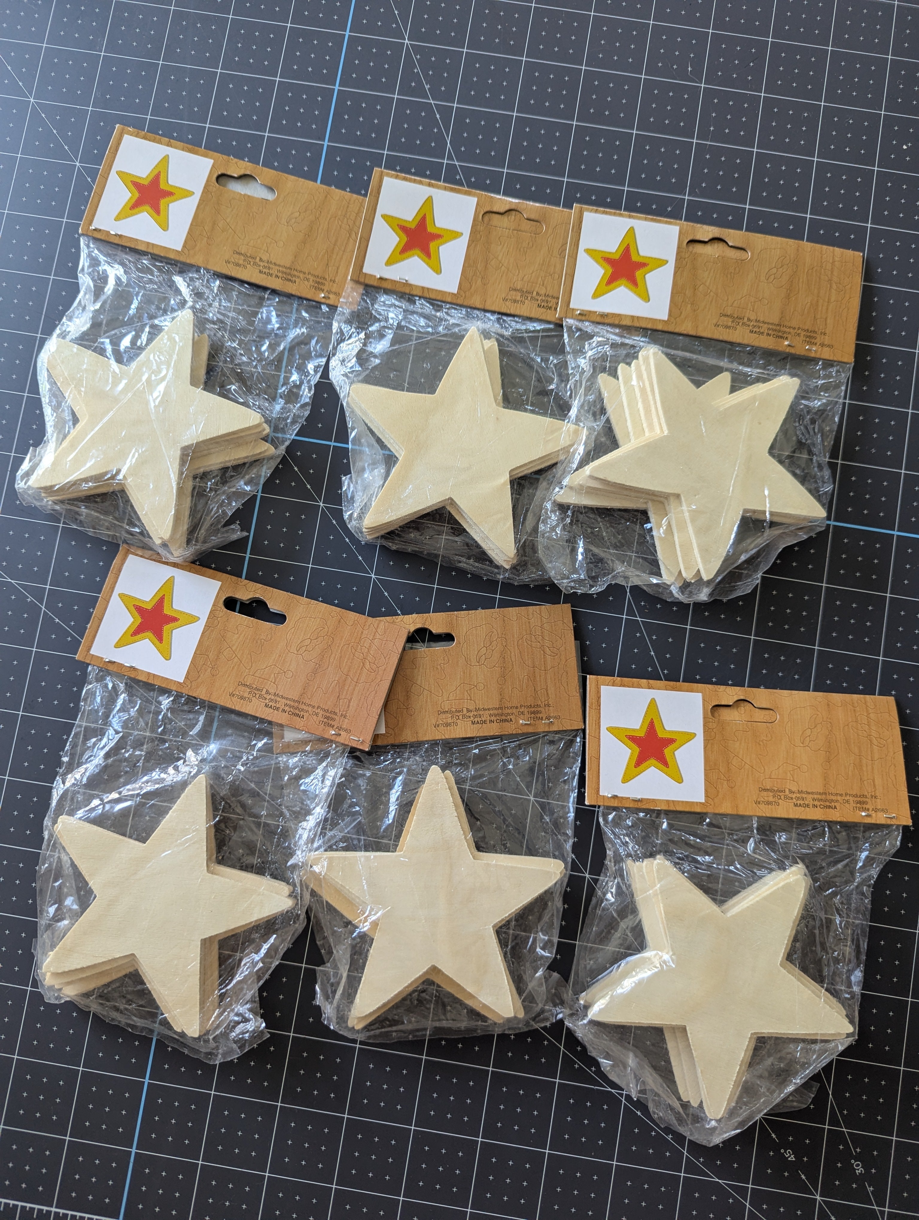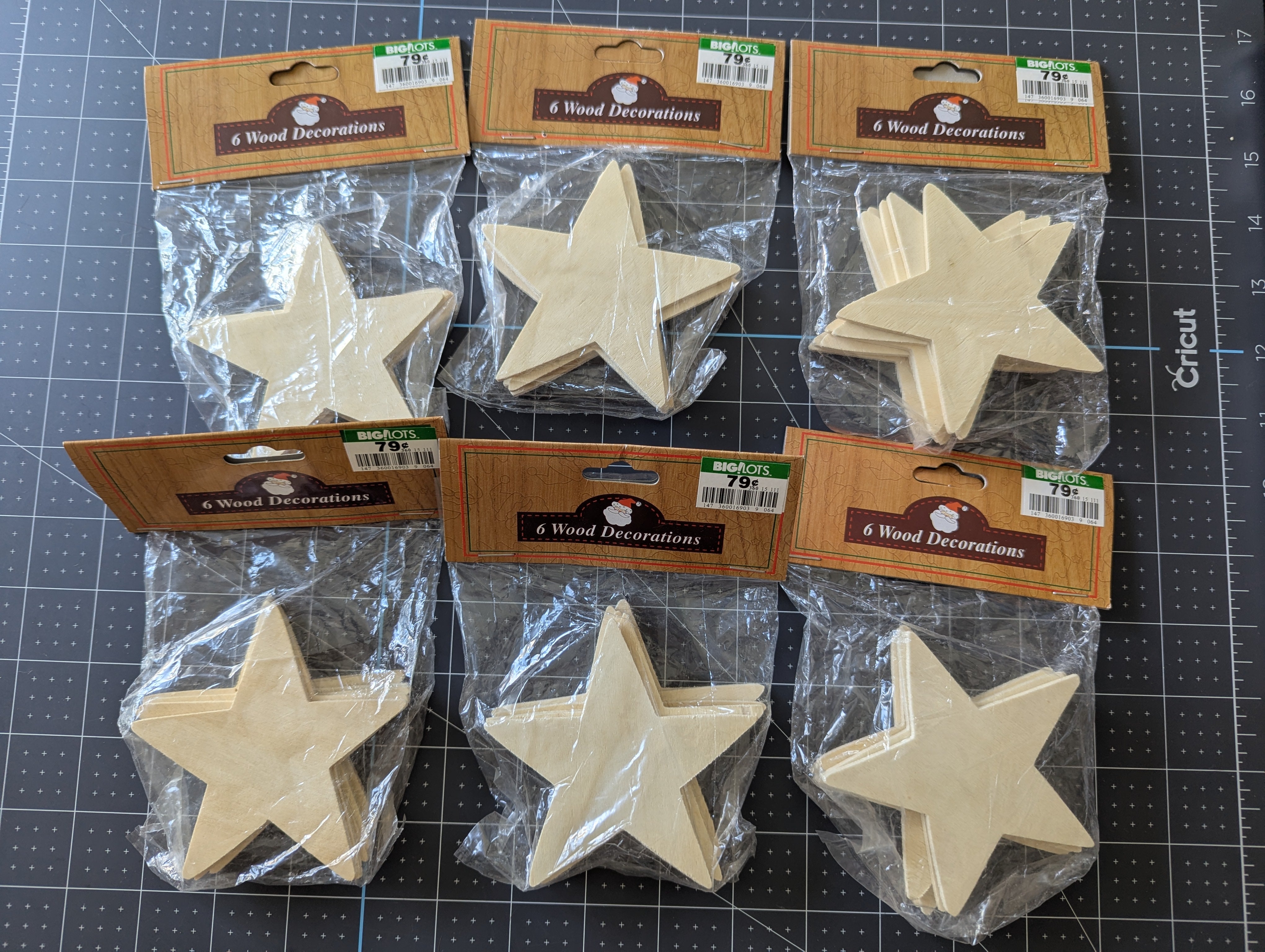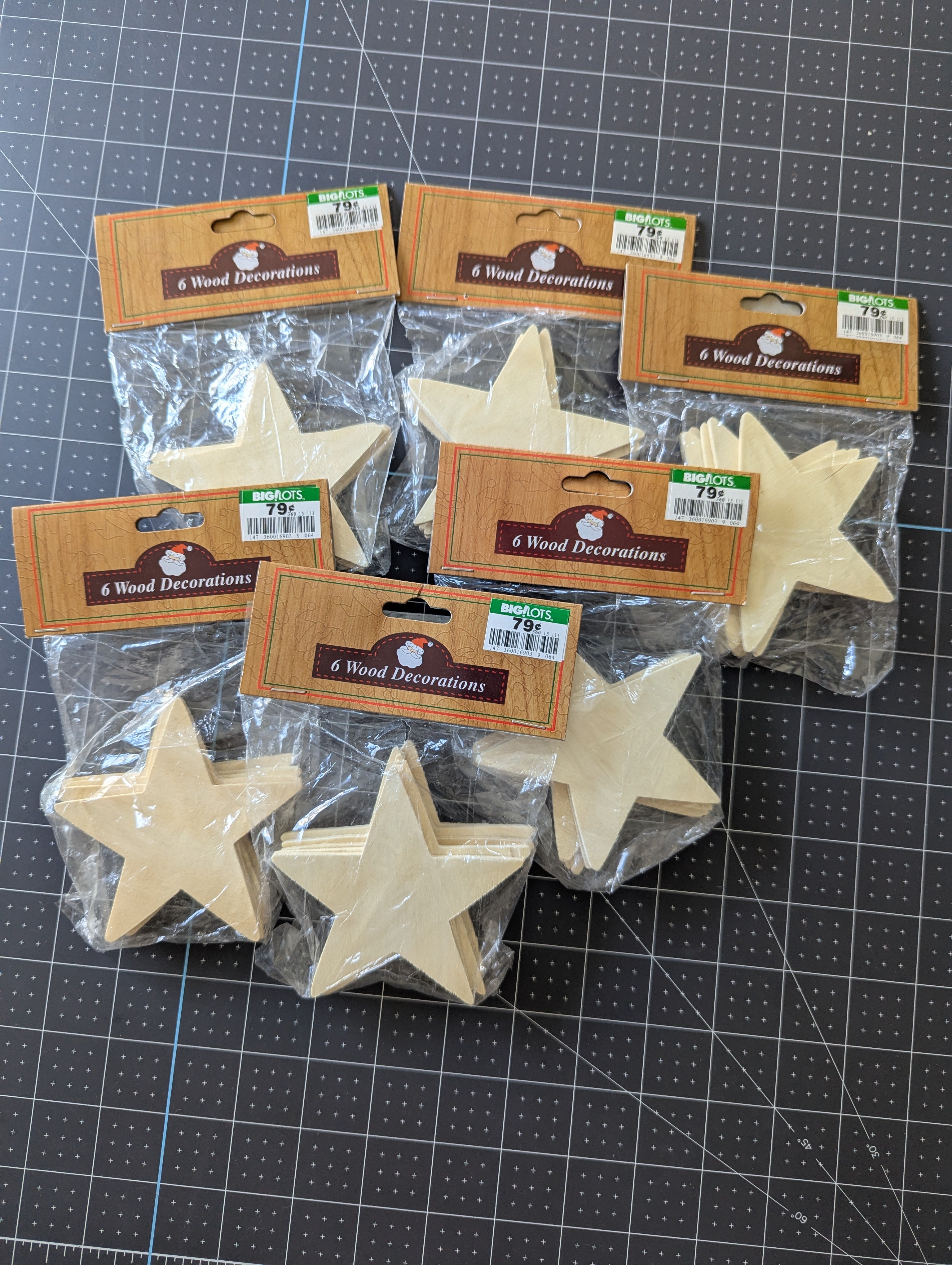You'll receive all six packs of wood craft shapes, each with six stars. All are unopened.
