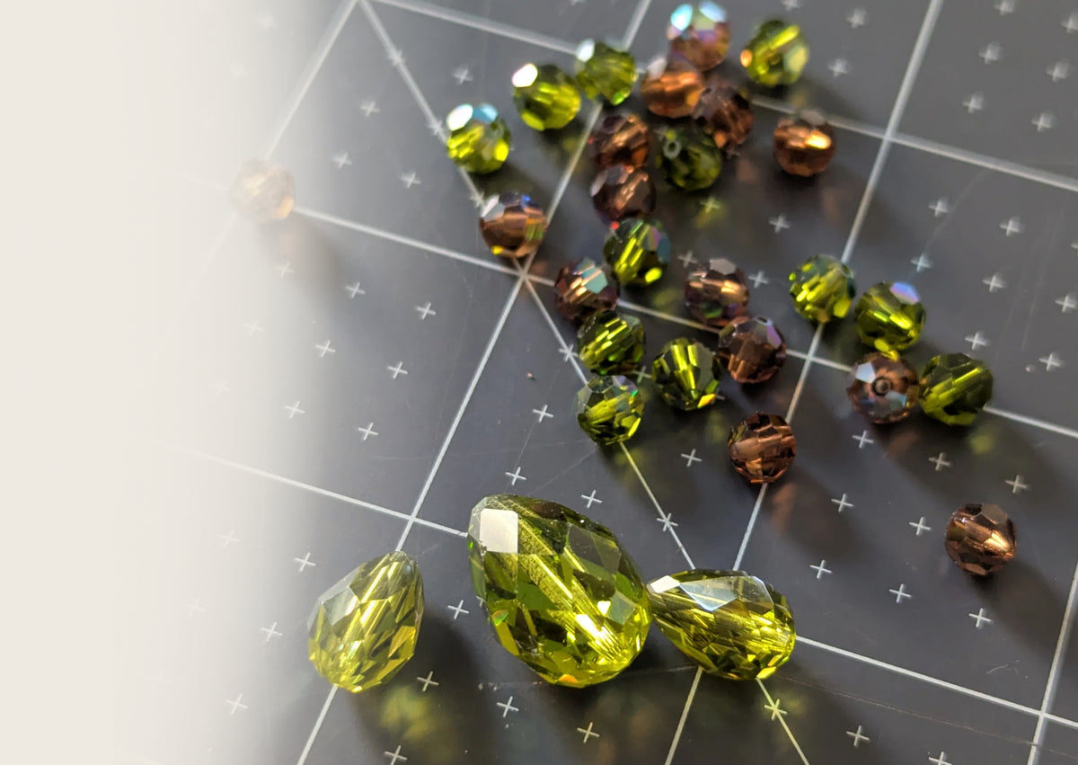 Loose beads in glass, plastic, wood, and other materials for stringing, stitching, weaving, and embellishment.