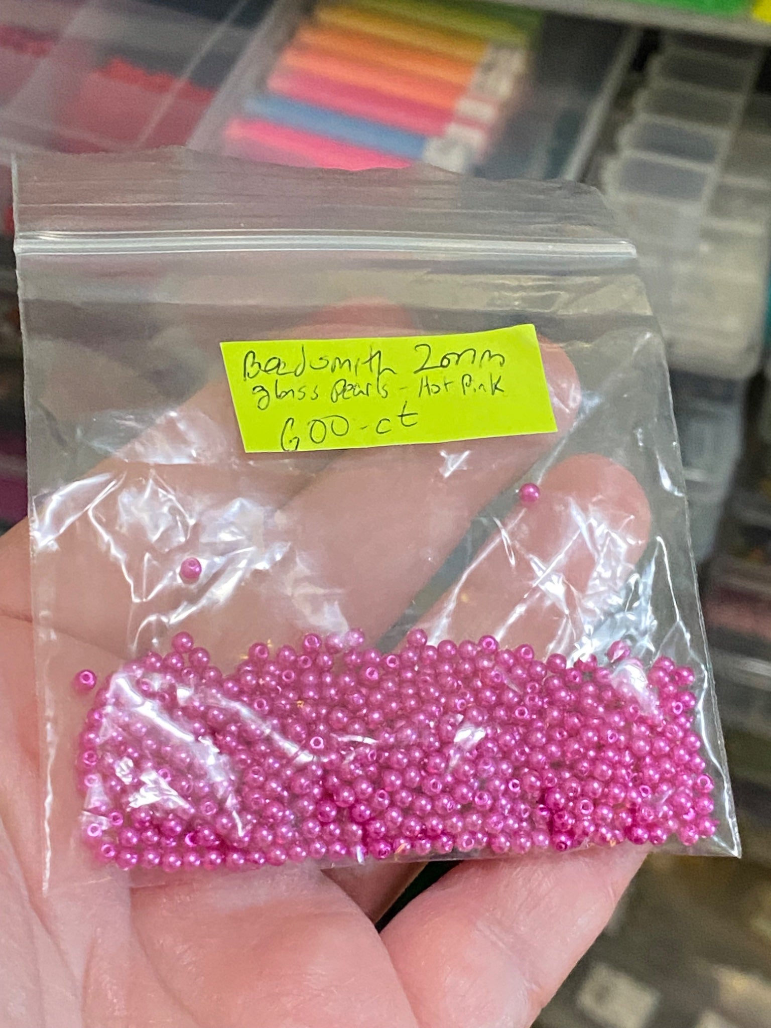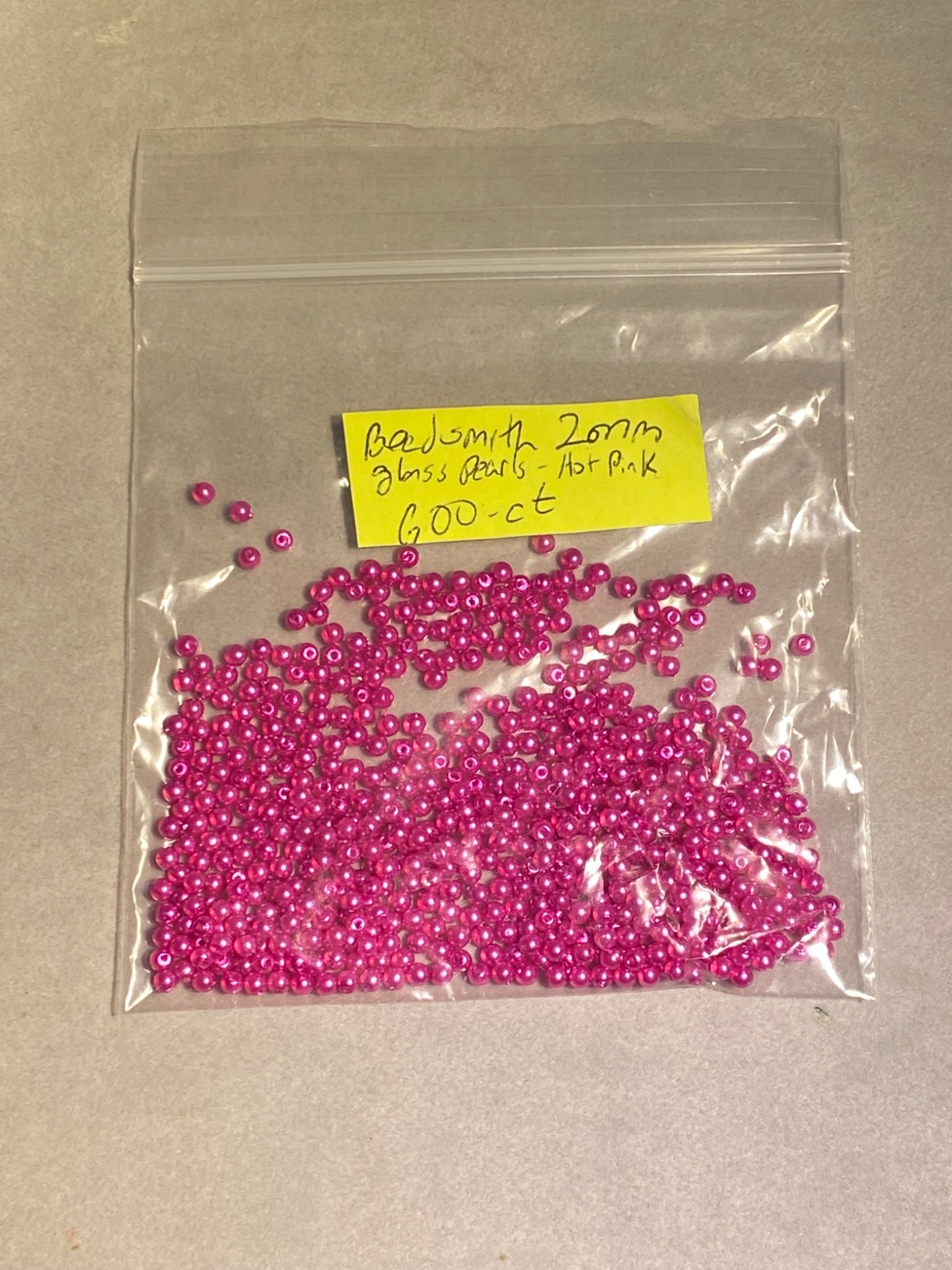 Very fine 2mm Czech glass pearls in very 80s bright hot pink, and I did the hard part in getting them off all the strands for you!