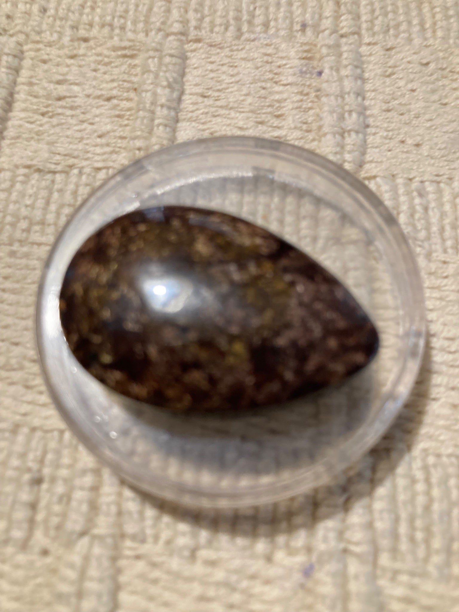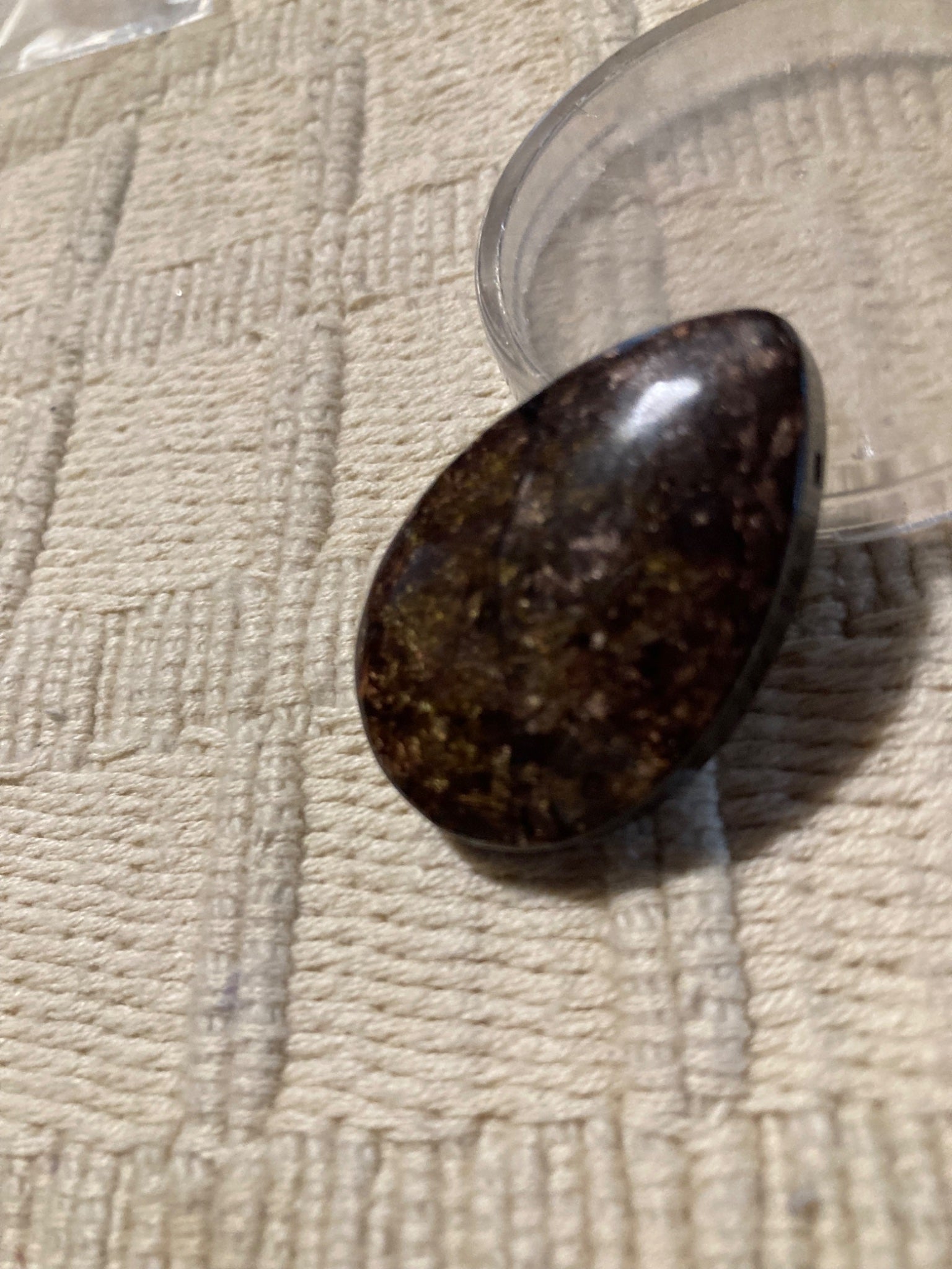 This bronzite teardrop focal bead is rich in color and very reflective. 23mm x 35mm, top drilled.