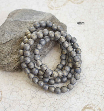 Czech etched beads are blue with a heavy aged gold metallic coating. They are 4mm and this includes Two strands!