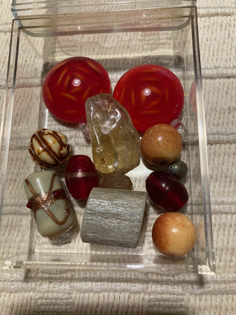 I have been a lifelong collector of beads, buttons, bobs and bits. While designing jewelry and making jewelry has left a gigantic collection of miscellaneous beads and findings. I am curating here collections of the ‘Detash’. I have gathered items that I find complimentary and I believe will spark some creativity. Perhaps the collection will attract you as it’s your favorite color palate. Maybe a collection here will inspire you to create something with materials you never imagined working with or putting together. I have taken some still photos and a video of each as well to best show what is included in each ‘treasure chest’. Please ask questions I will answer all. These are reasonably priced collections of unusual and meant to inspire pieces