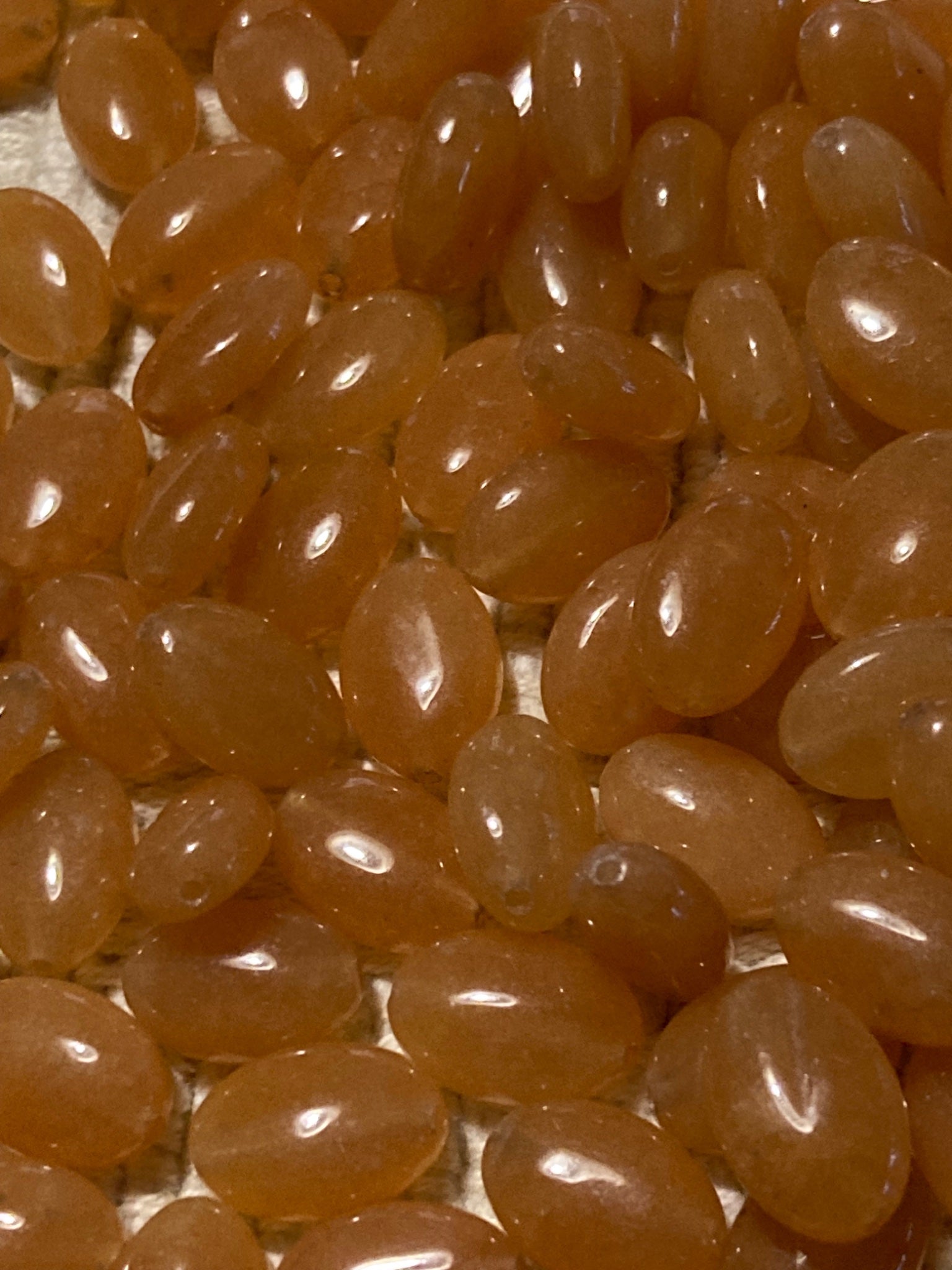 These lovelies are 8x12 mm ovals, drilled lengthwise. Beautiful polish. $8.00 3oz.