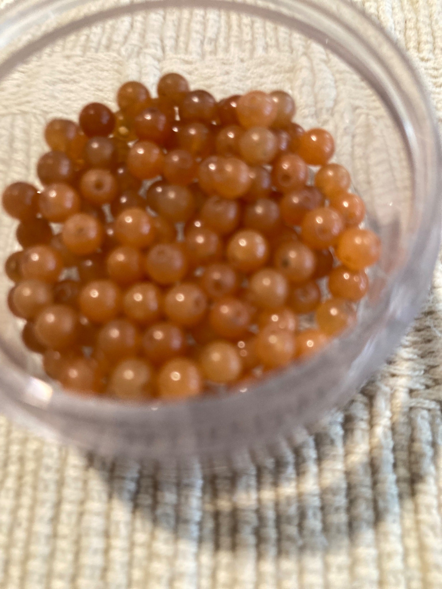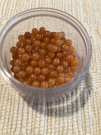These gorgeous round carnelian beads are 1/8” in diameter, center drilled. $3.00 1oz.