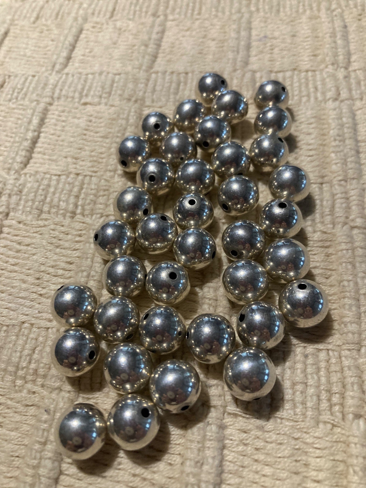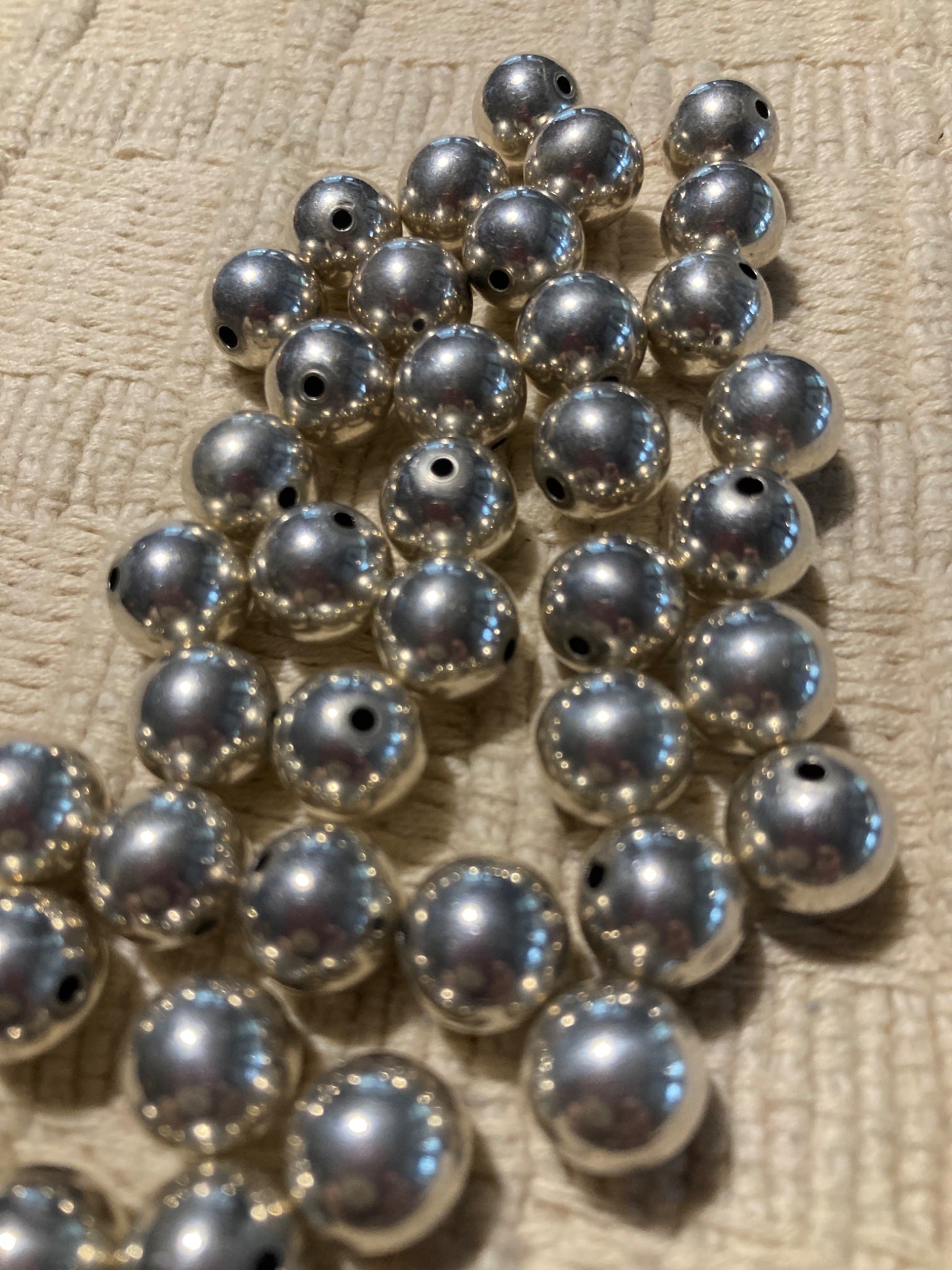 These round sterling silver beads are just beautiful. 8mm, lovely sheen, center drilled.