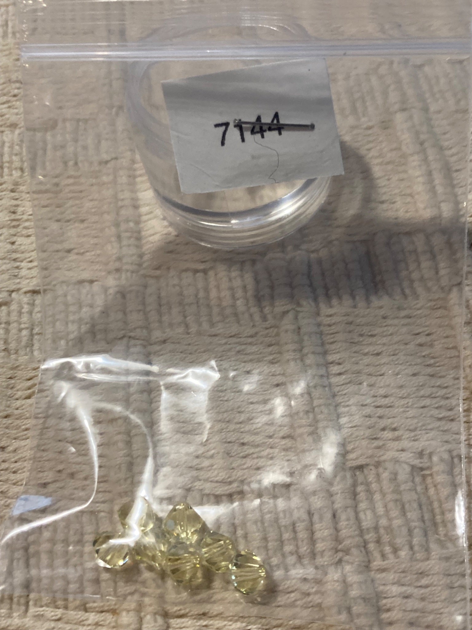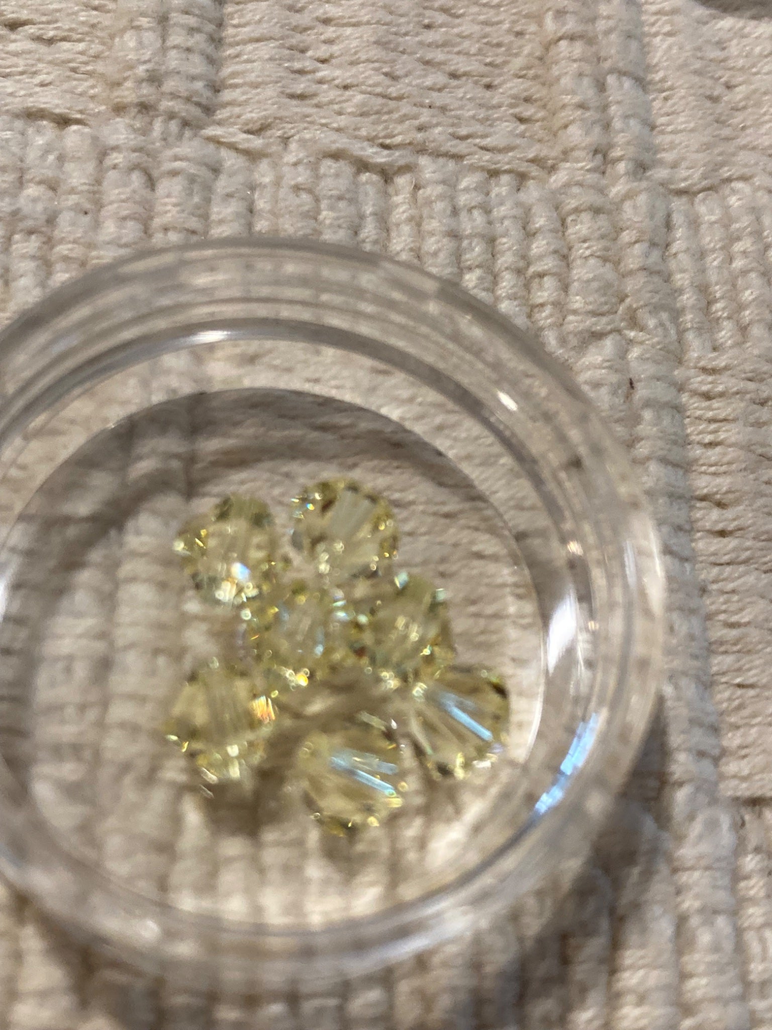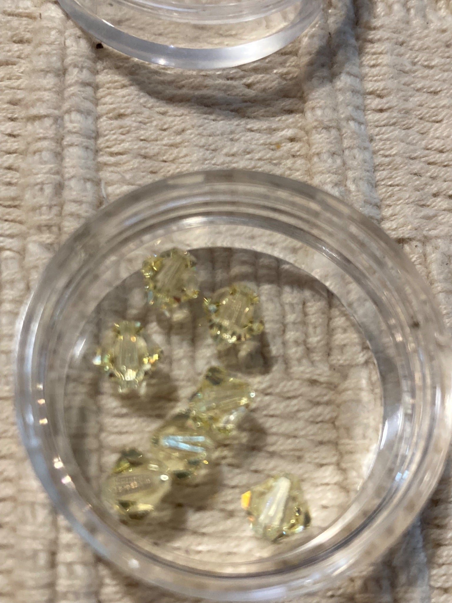 These Swarovski crystals are Citrine (249) 3mm, center drilled. 7pcs. $1.00 1oz.