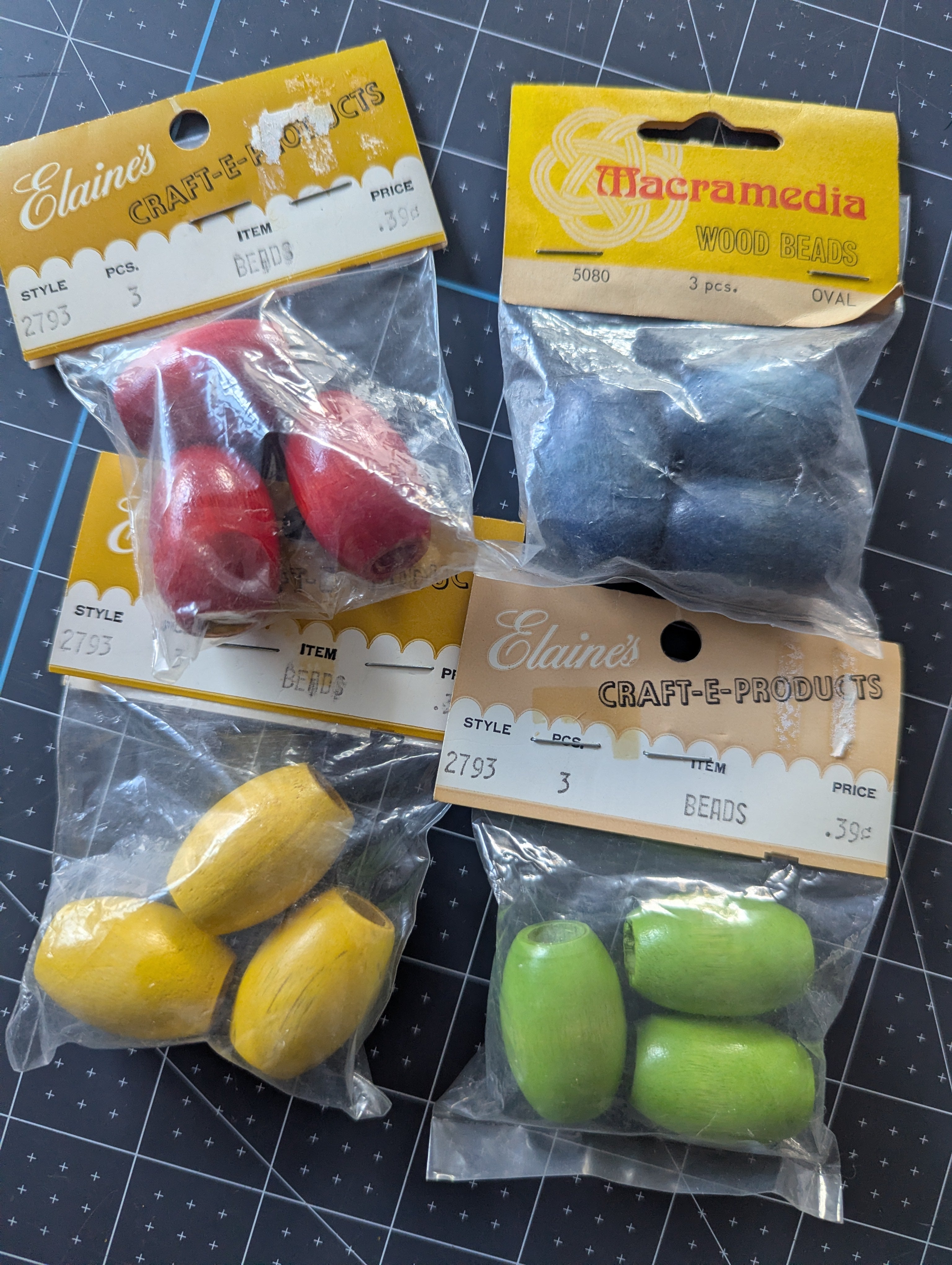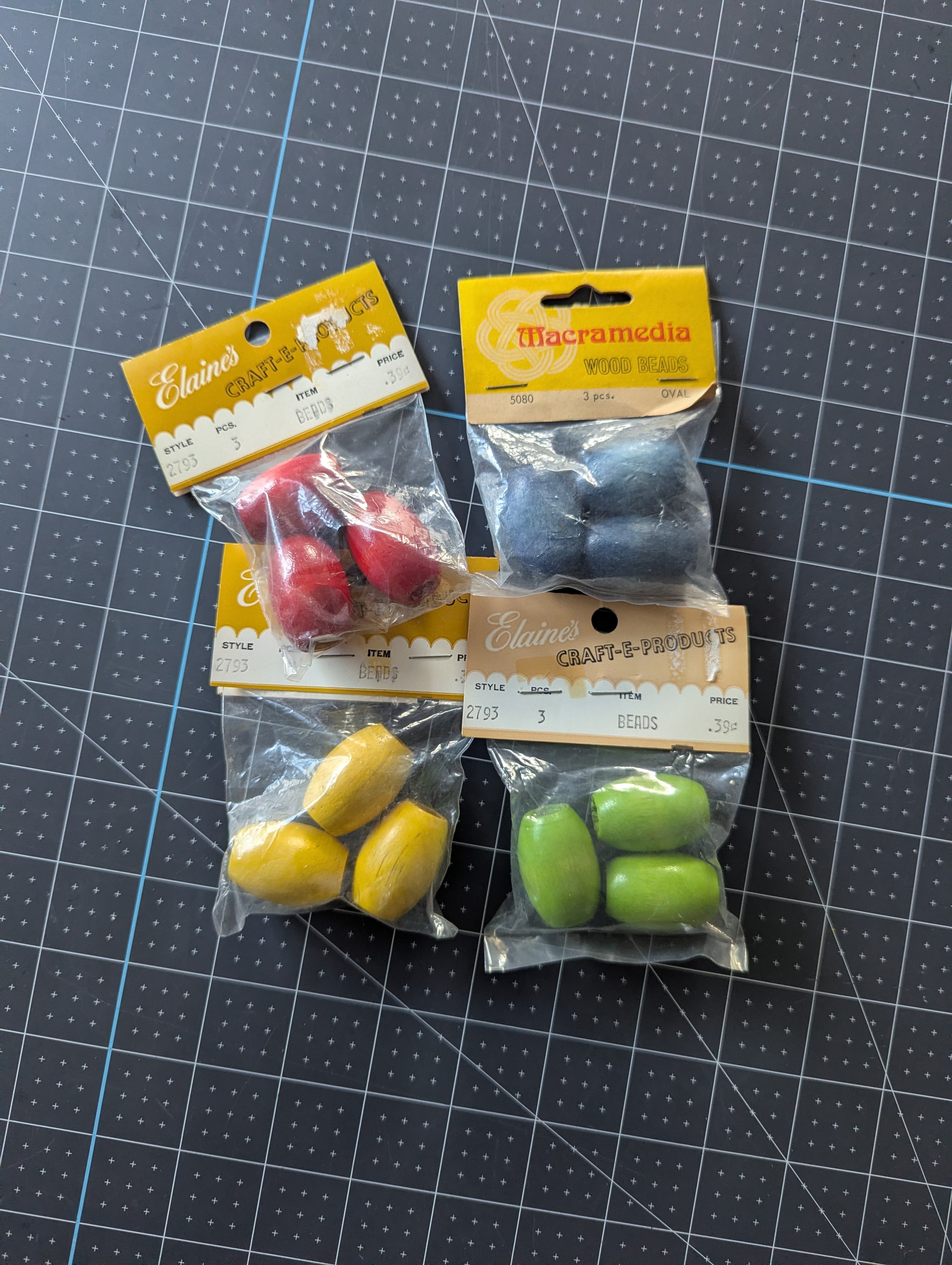 Vintage Painted Wooden Beads - Large Tubes / Large Hole Beads - Lot 6