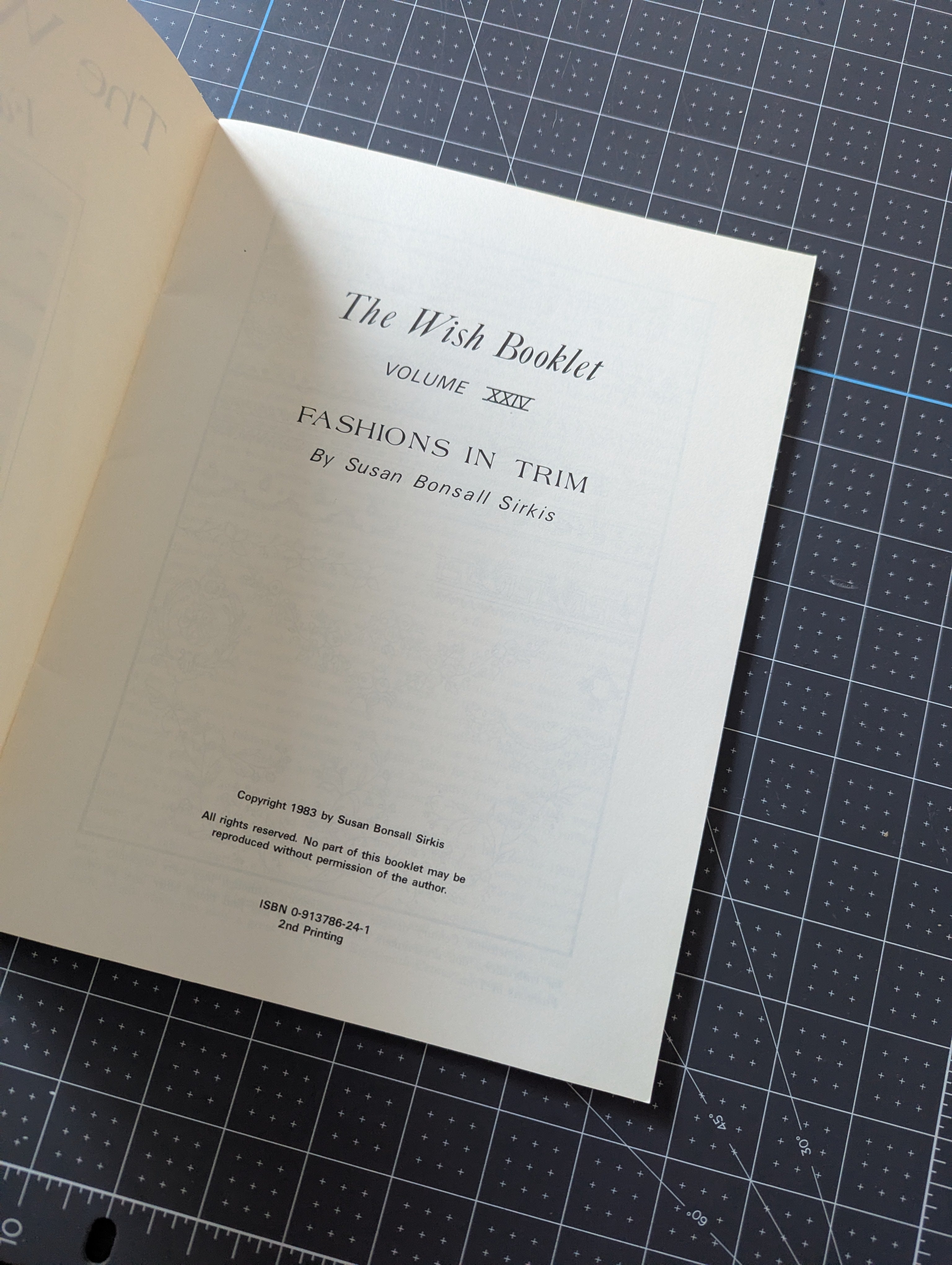 The Wish Booklet: Fashions in Trim - Vol XXIV - Susan Sirkis (1983)
