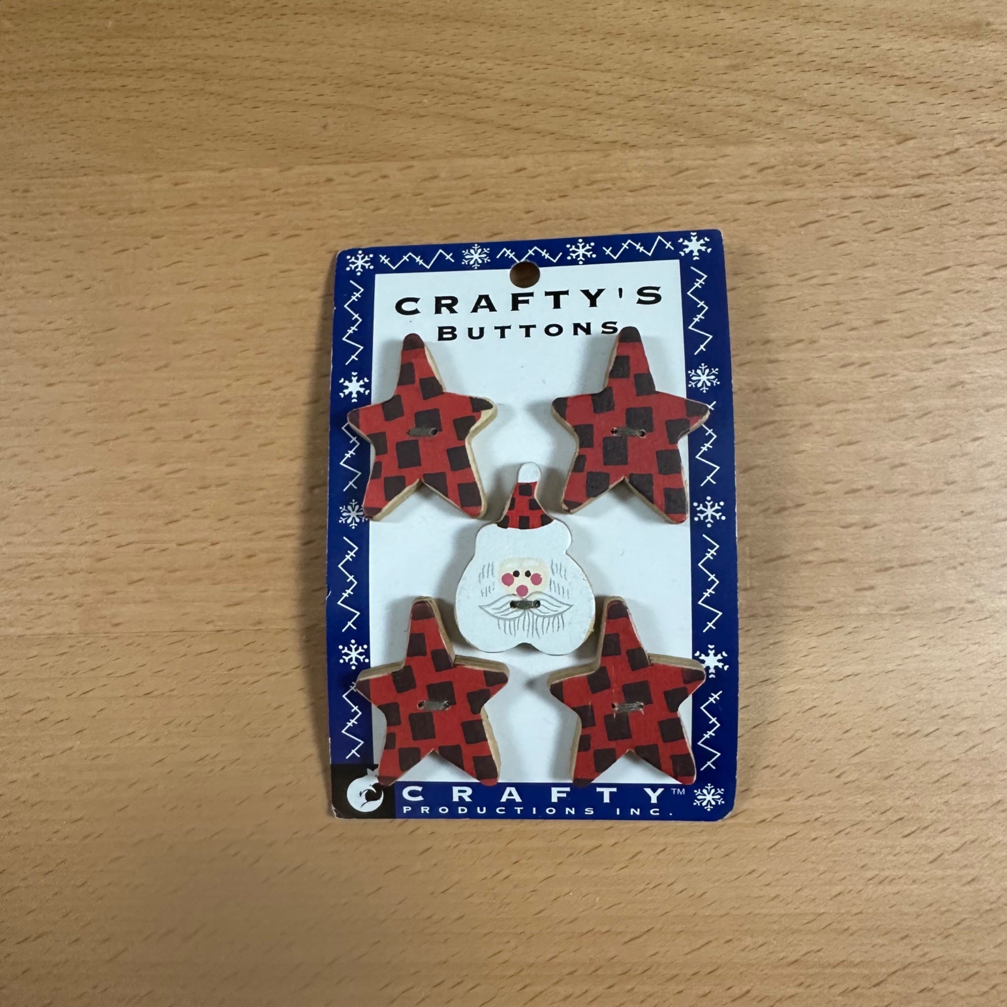 Christmas buttons— wooden stars & Santa Claus
