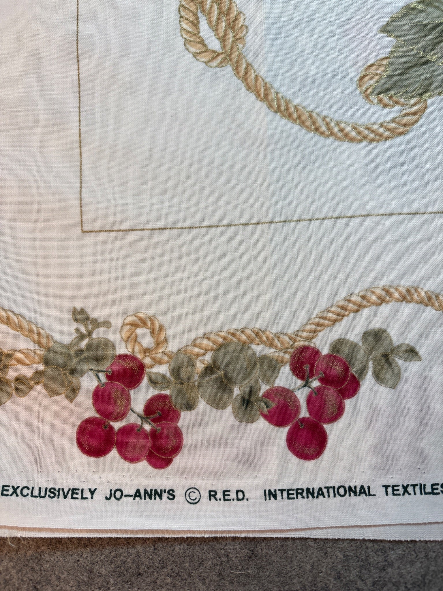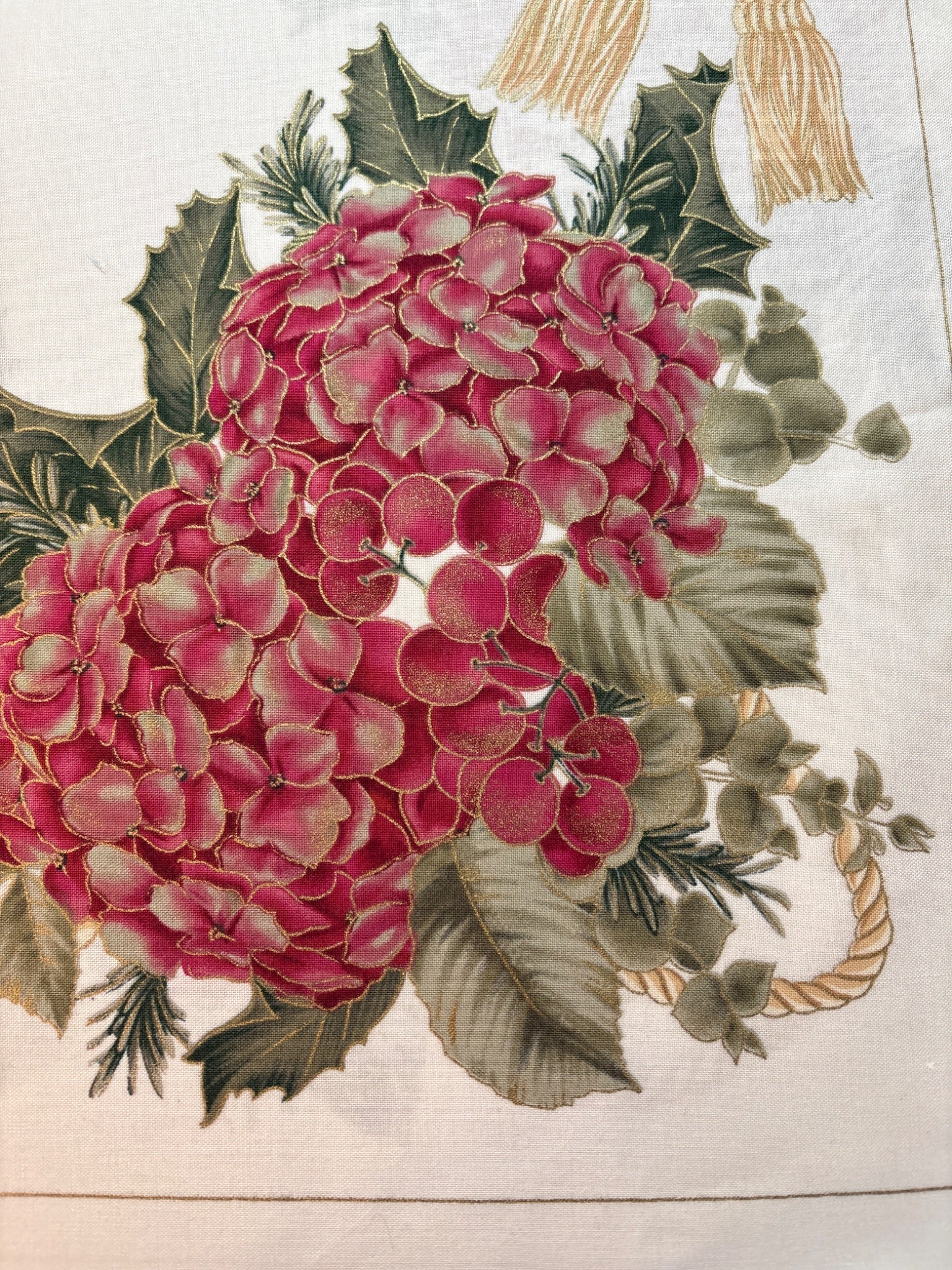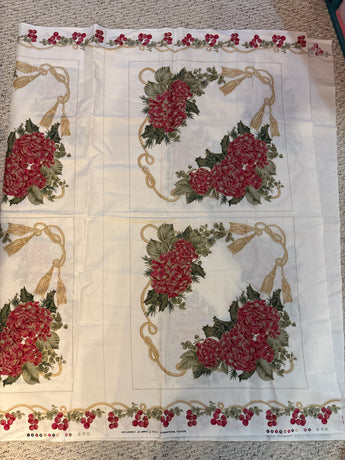 Holiday fabric panel 6 blocks ea 17.5” sq berries gold metallic