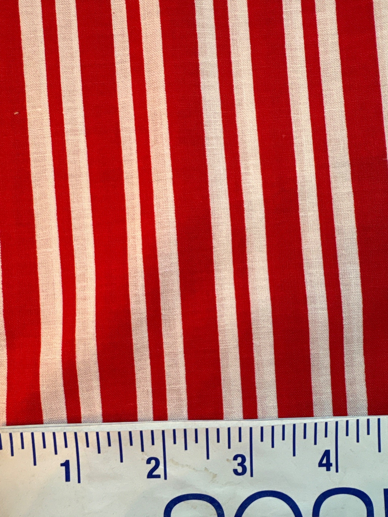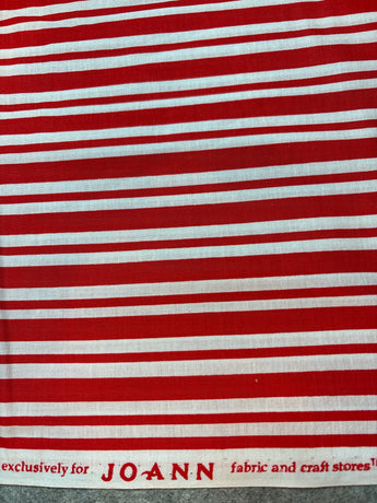 Selling by the yard 43"w, JoAnn cotton fabric, red white cotton fabric new condition from JoAnns. Candy cane stripe great for Christmas crafts.