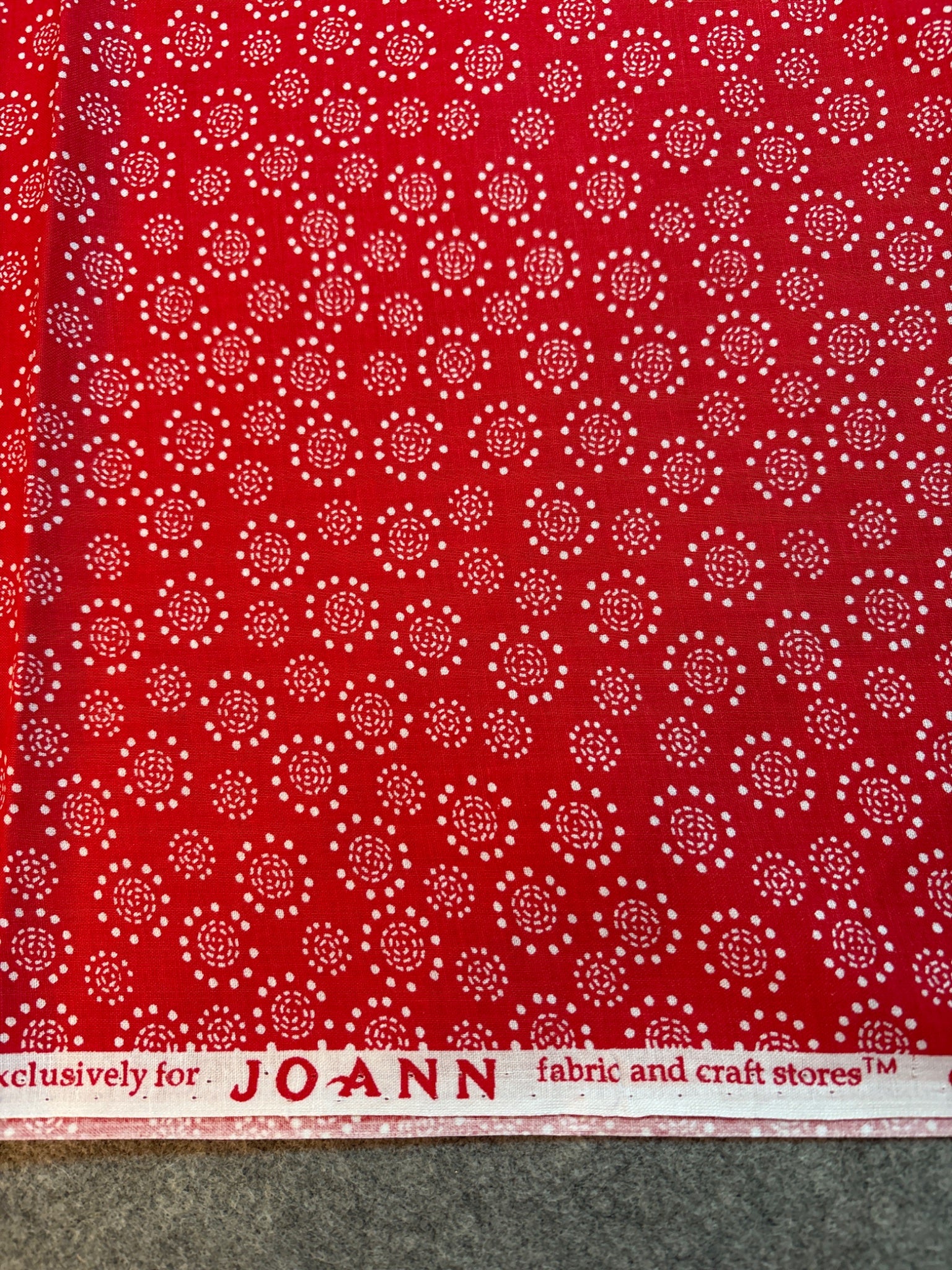 By the yard, 3 yds available. Cherry red and white from JoAnns, new condition