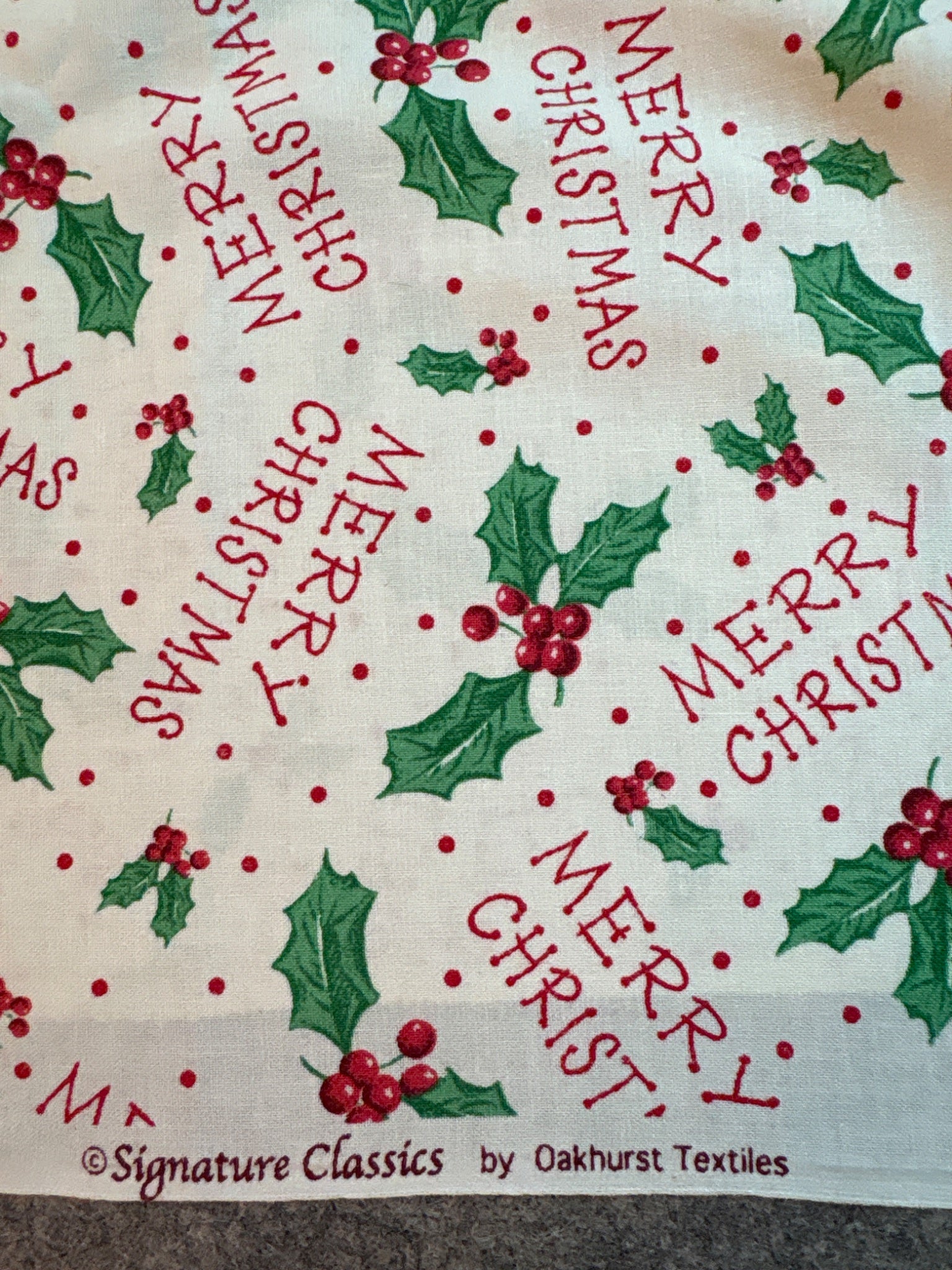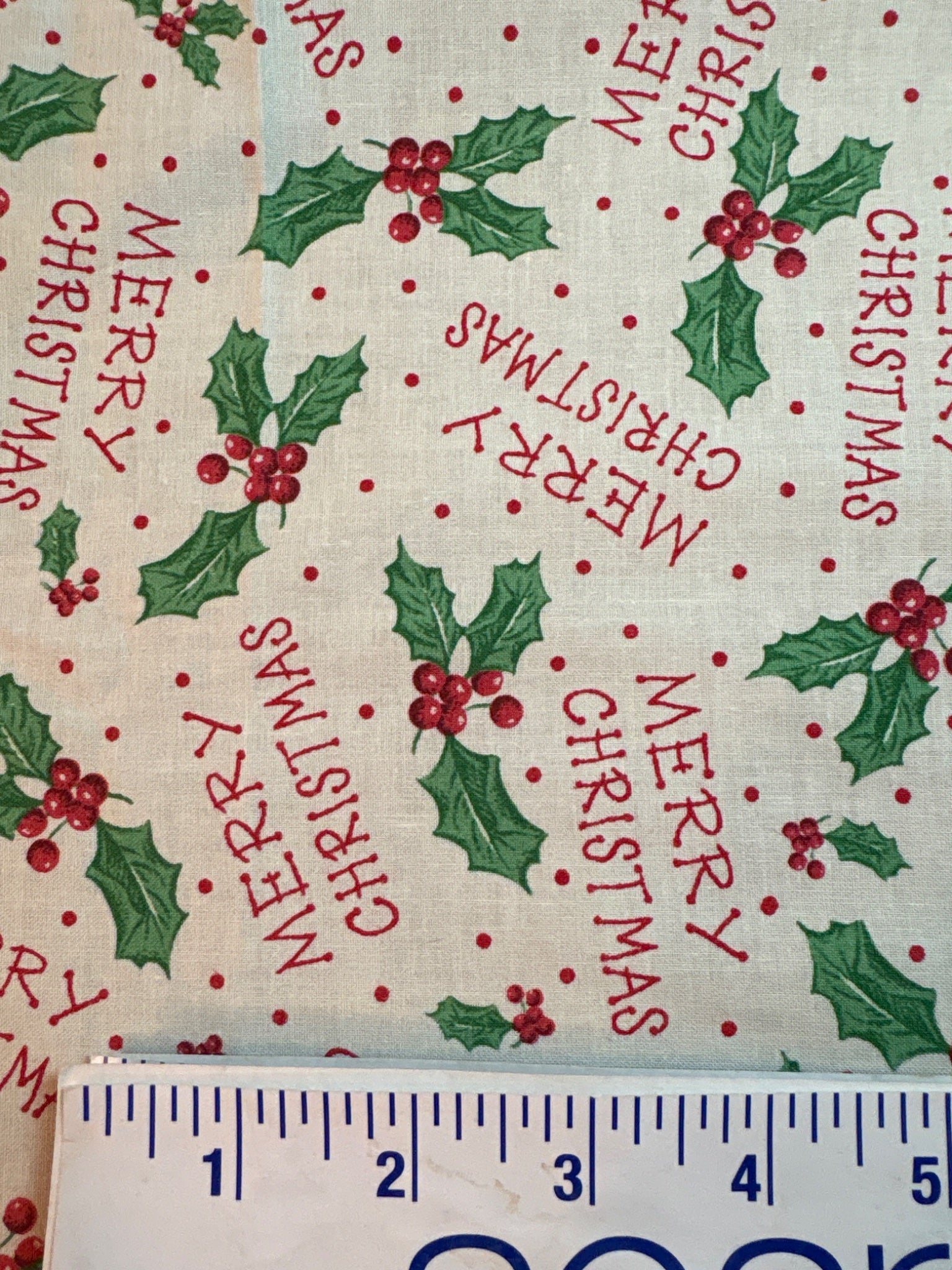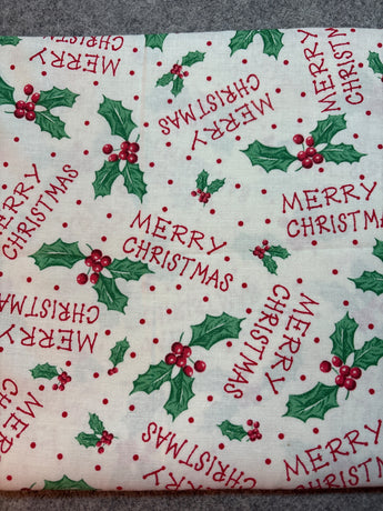 Retro Christmas cotton fabric holly 1.5 yds x 44”w