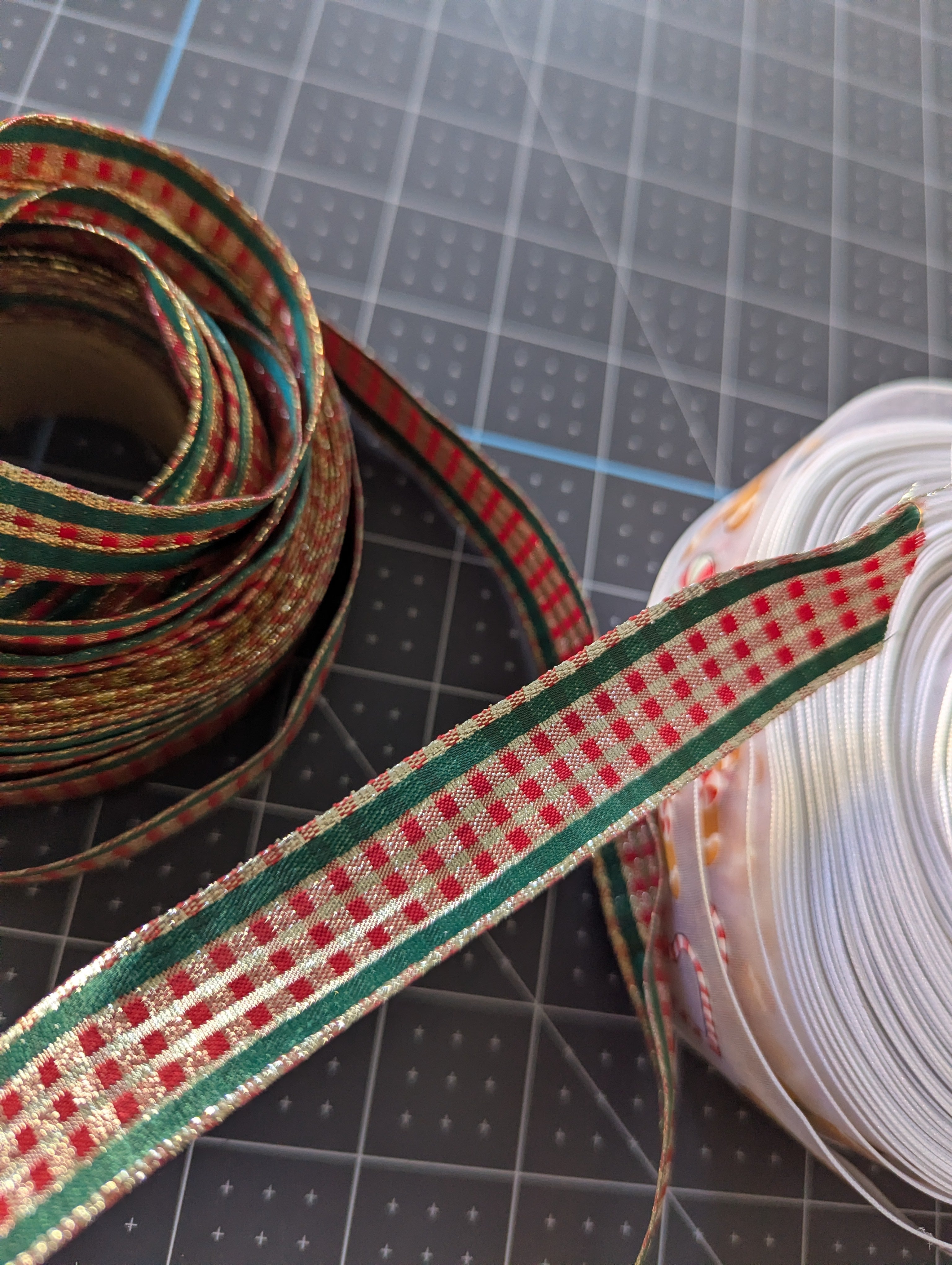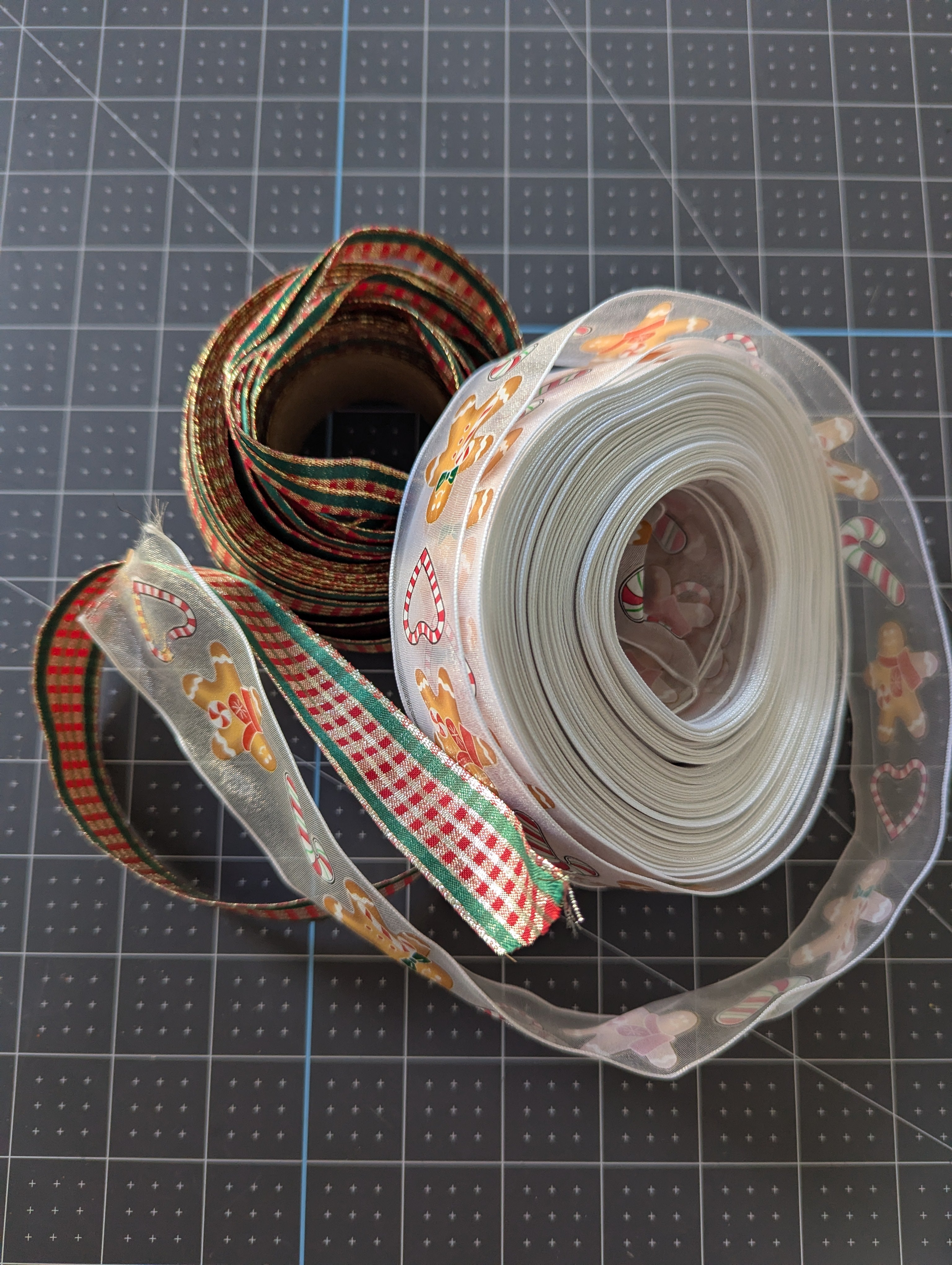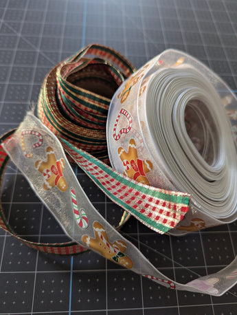 Set of 2 Christmas Craft Wire-edged Ribbon Spools
