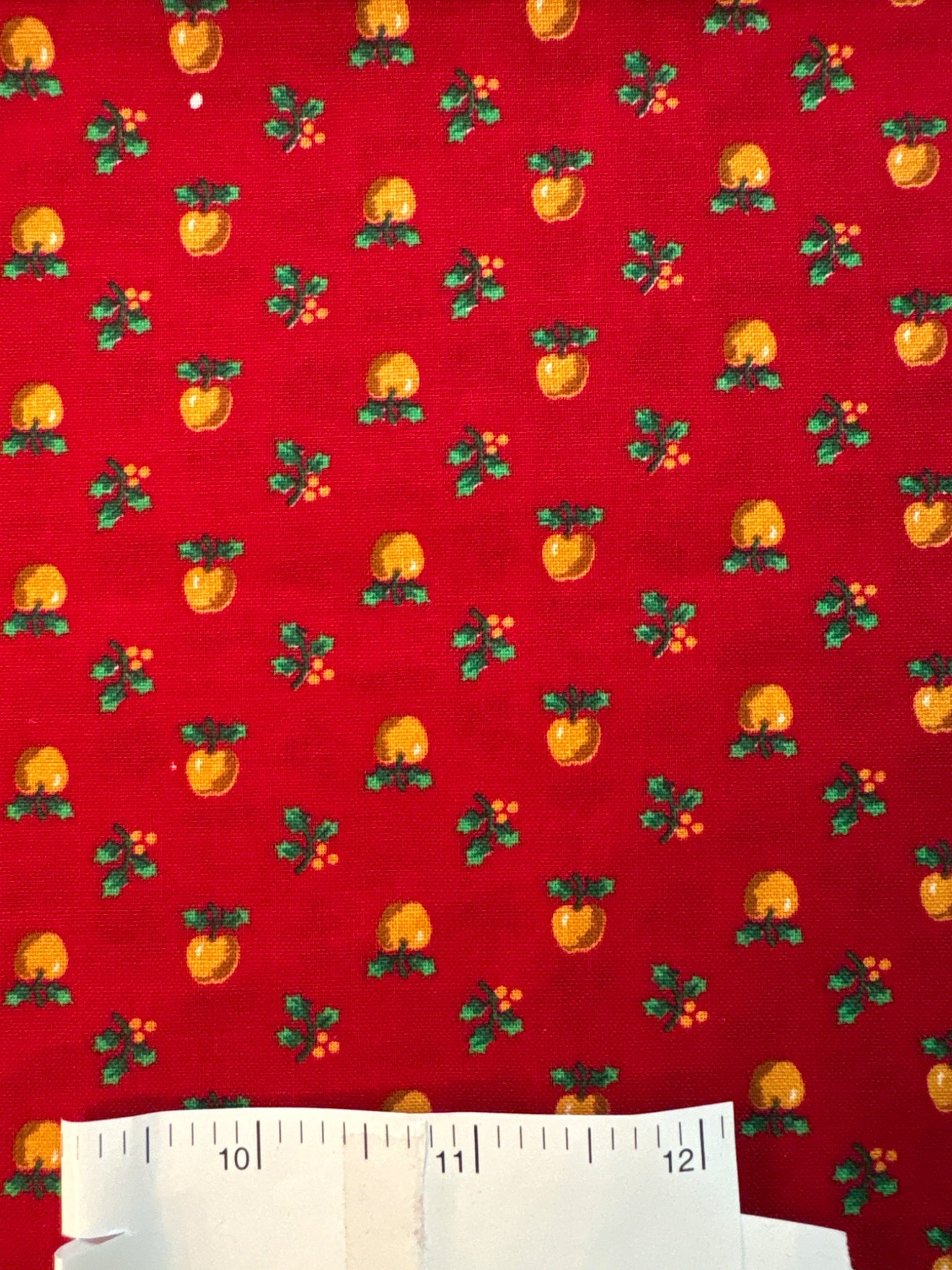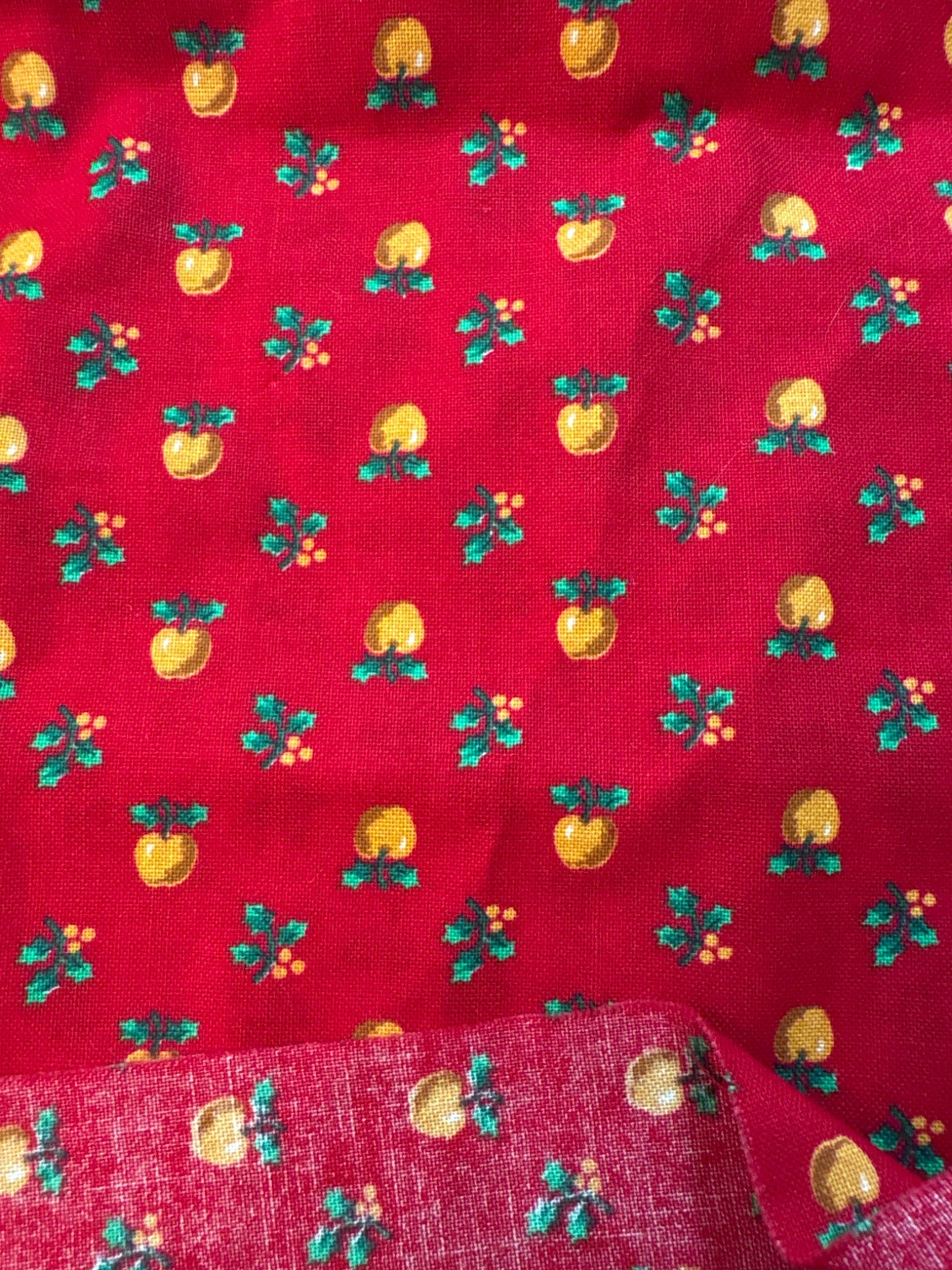 Vintage Christmas Apple cotton fabric remnant 50” x 38”