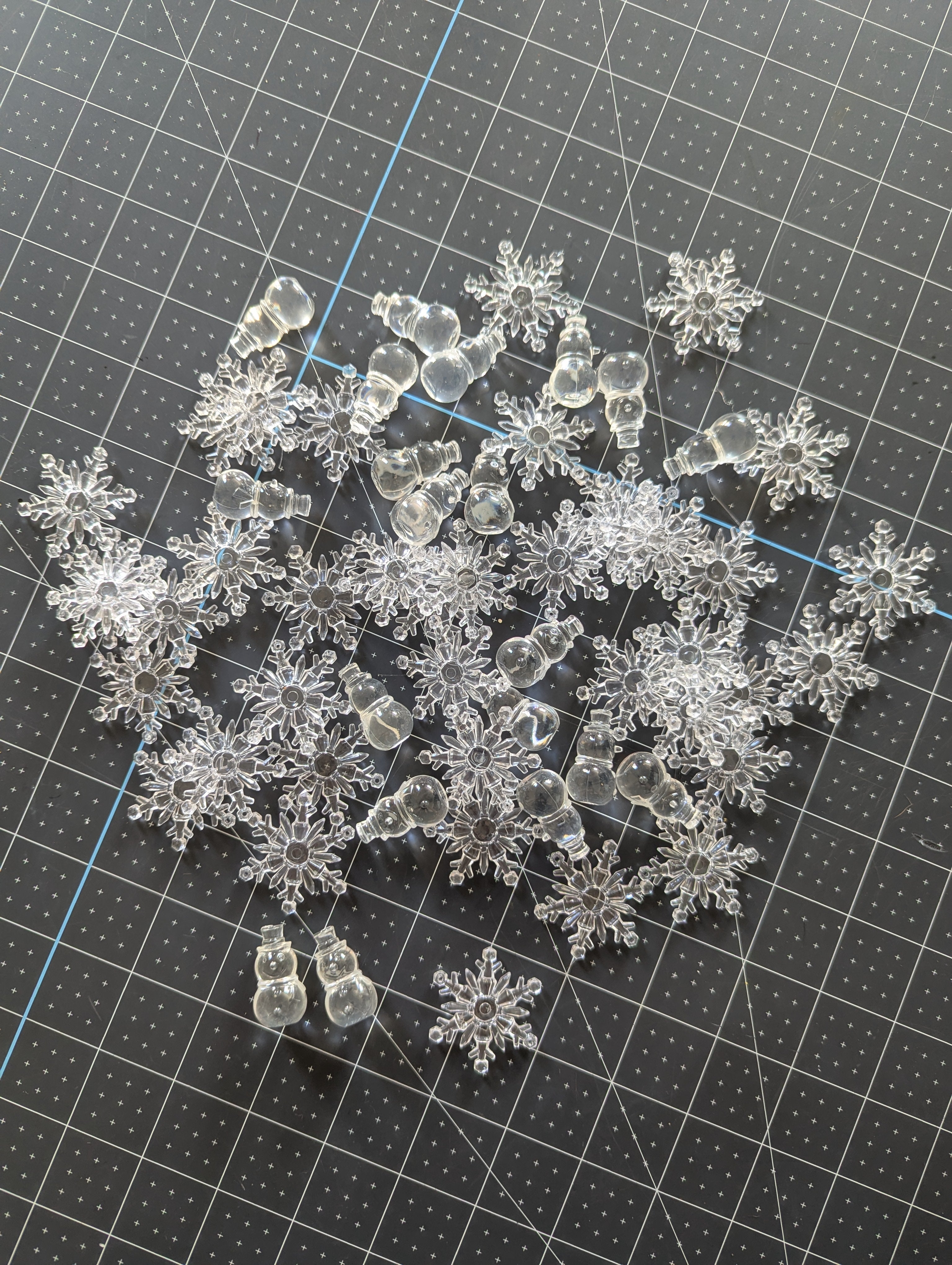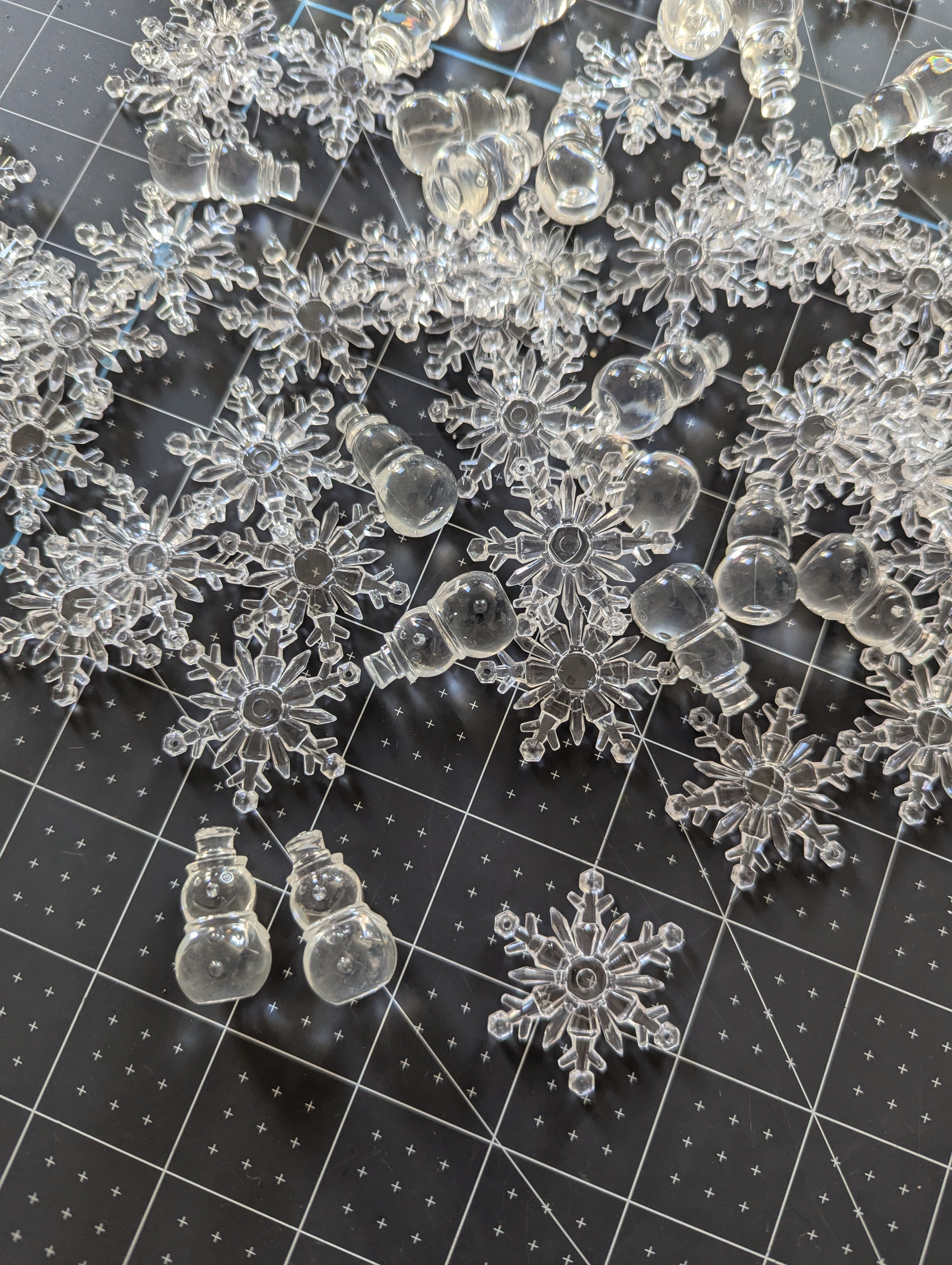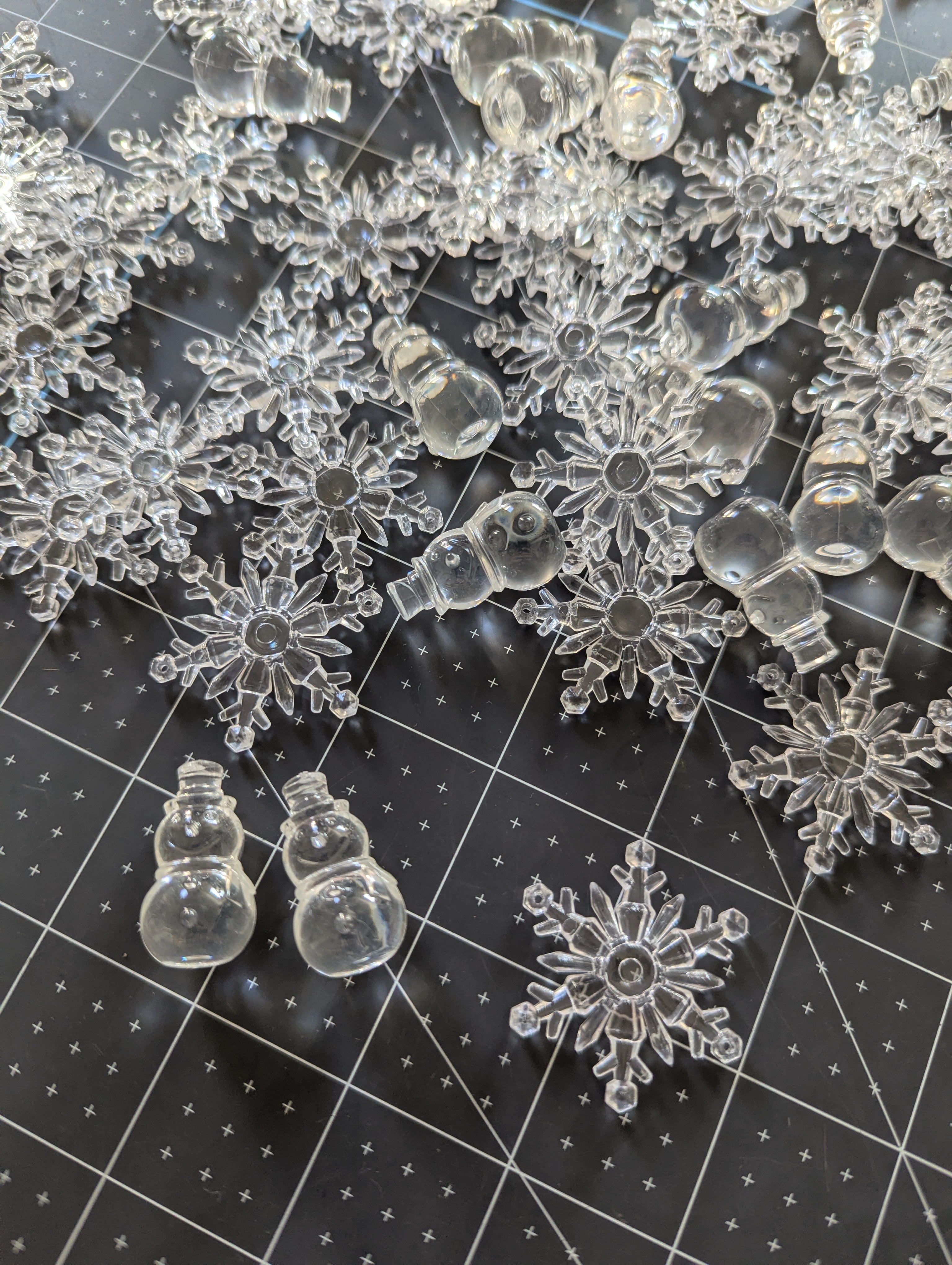 These snowflake and snowmen fillers are made for putting into water or gel vase crafts, but can be used for all kinds of holiday theme projects.