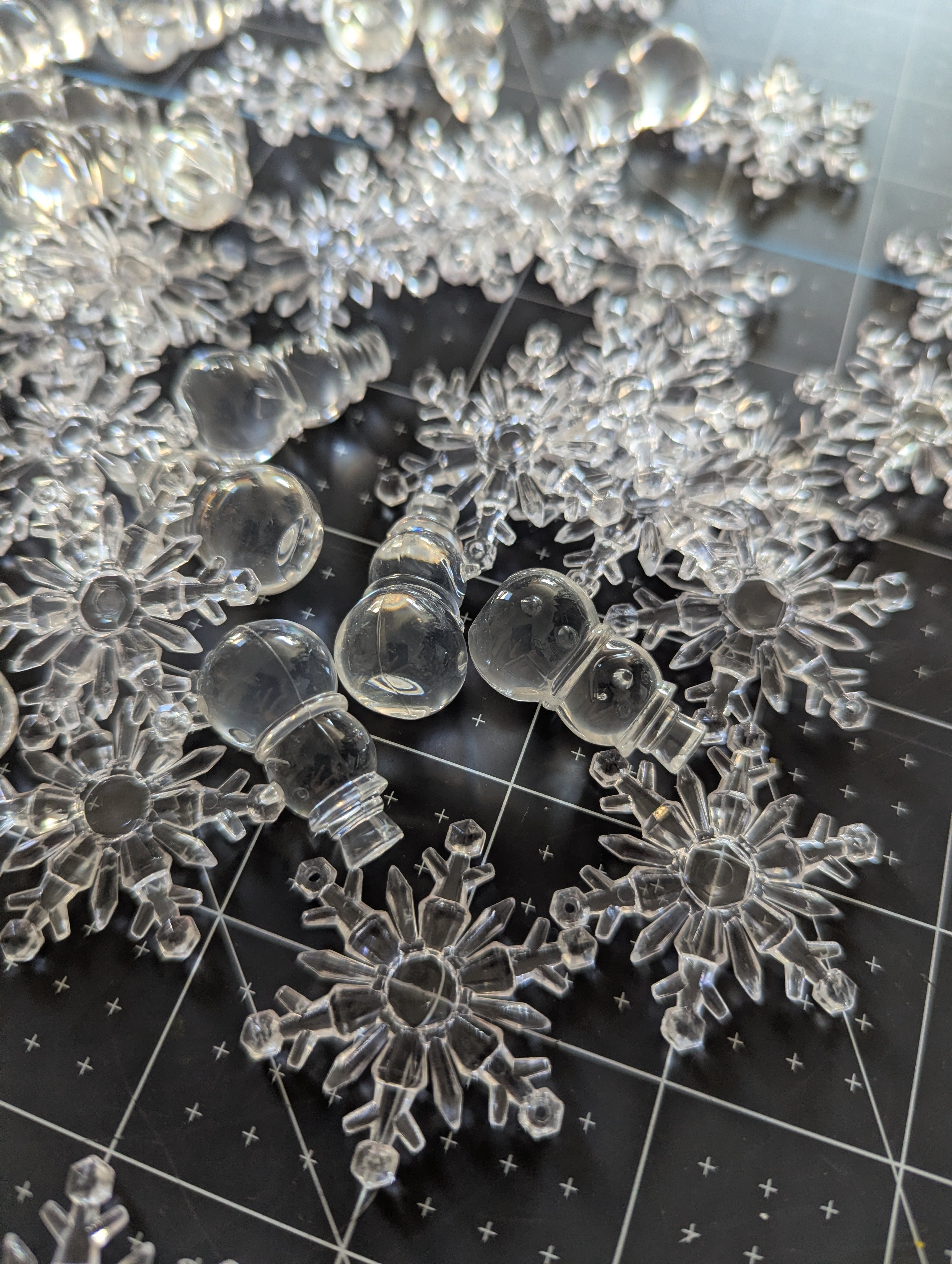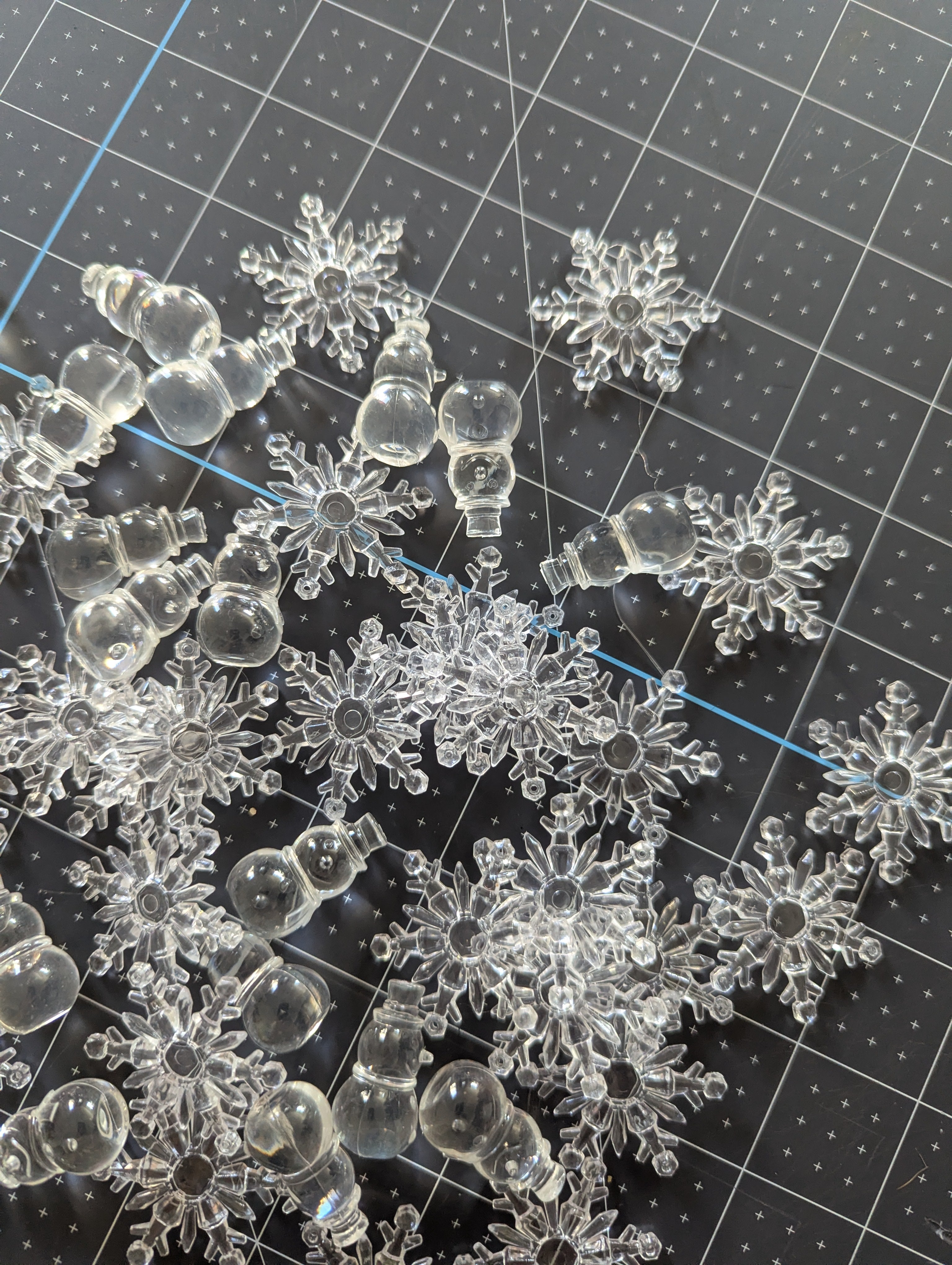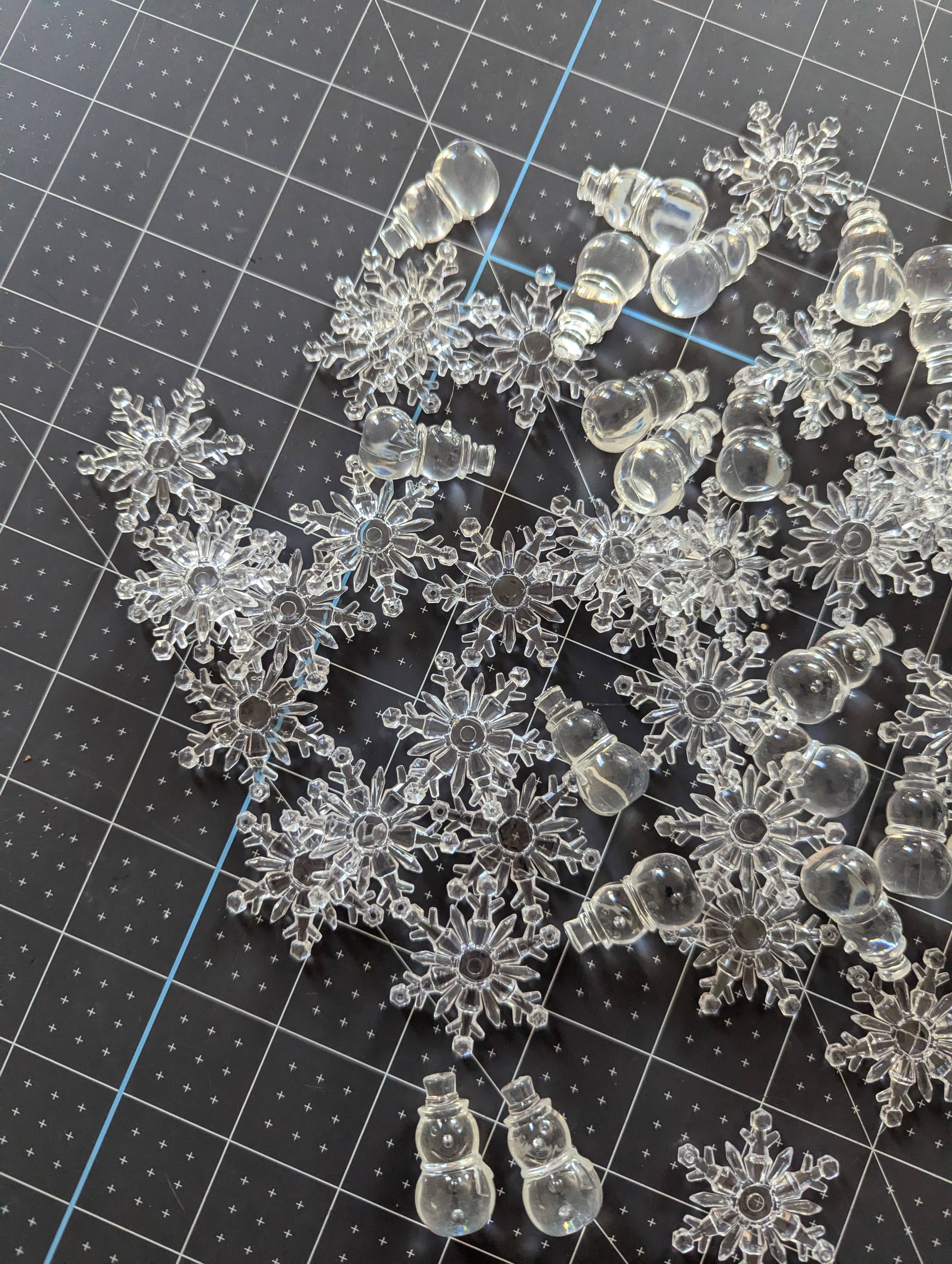 These snowflake and snowmen fillers are made for putting into water or gel vase crafts, but can be used for all kinds of holiday theme projects.
