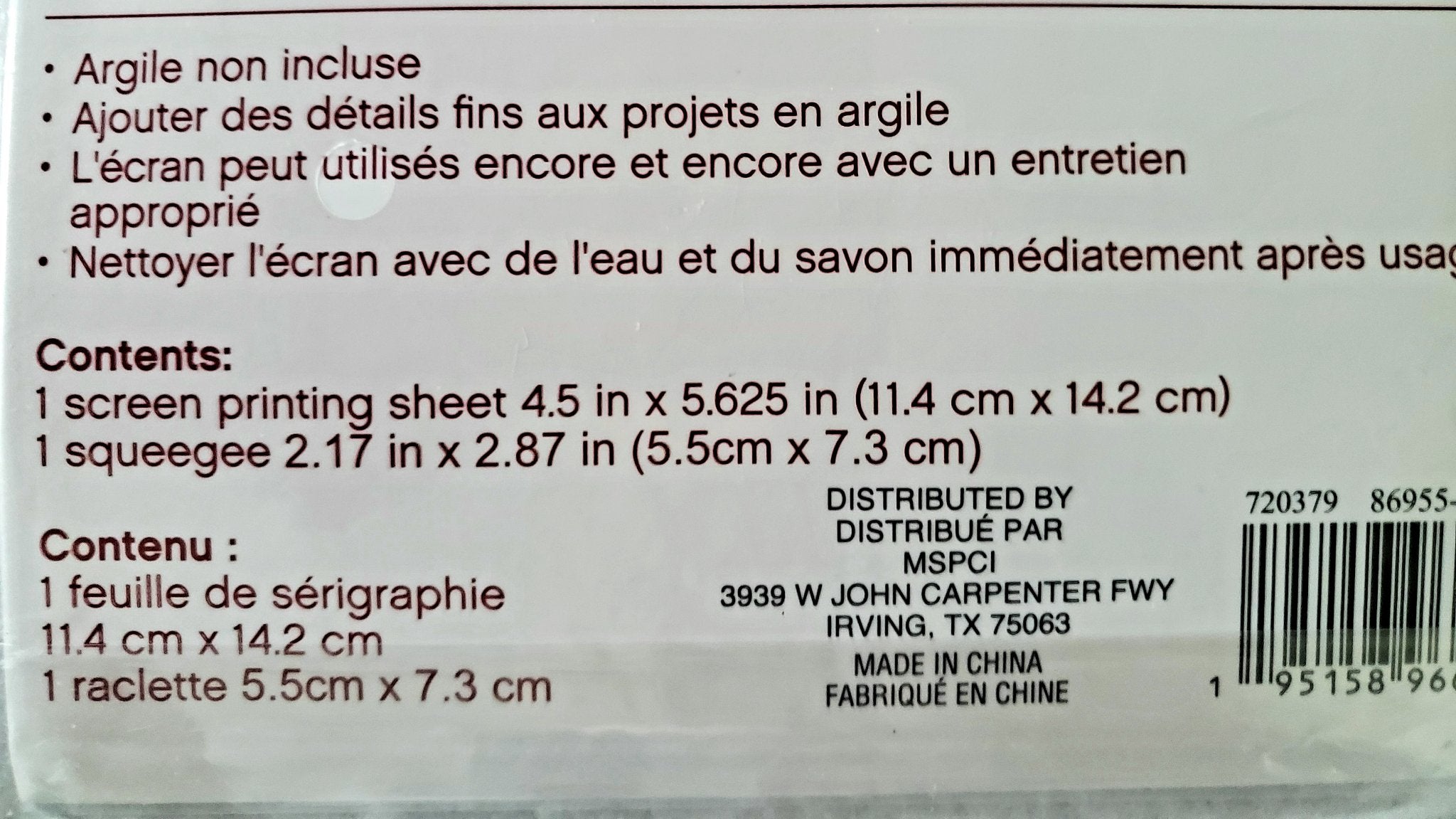 Includes 1 Screen printing sheet 4.5 inches x 5.625 in.