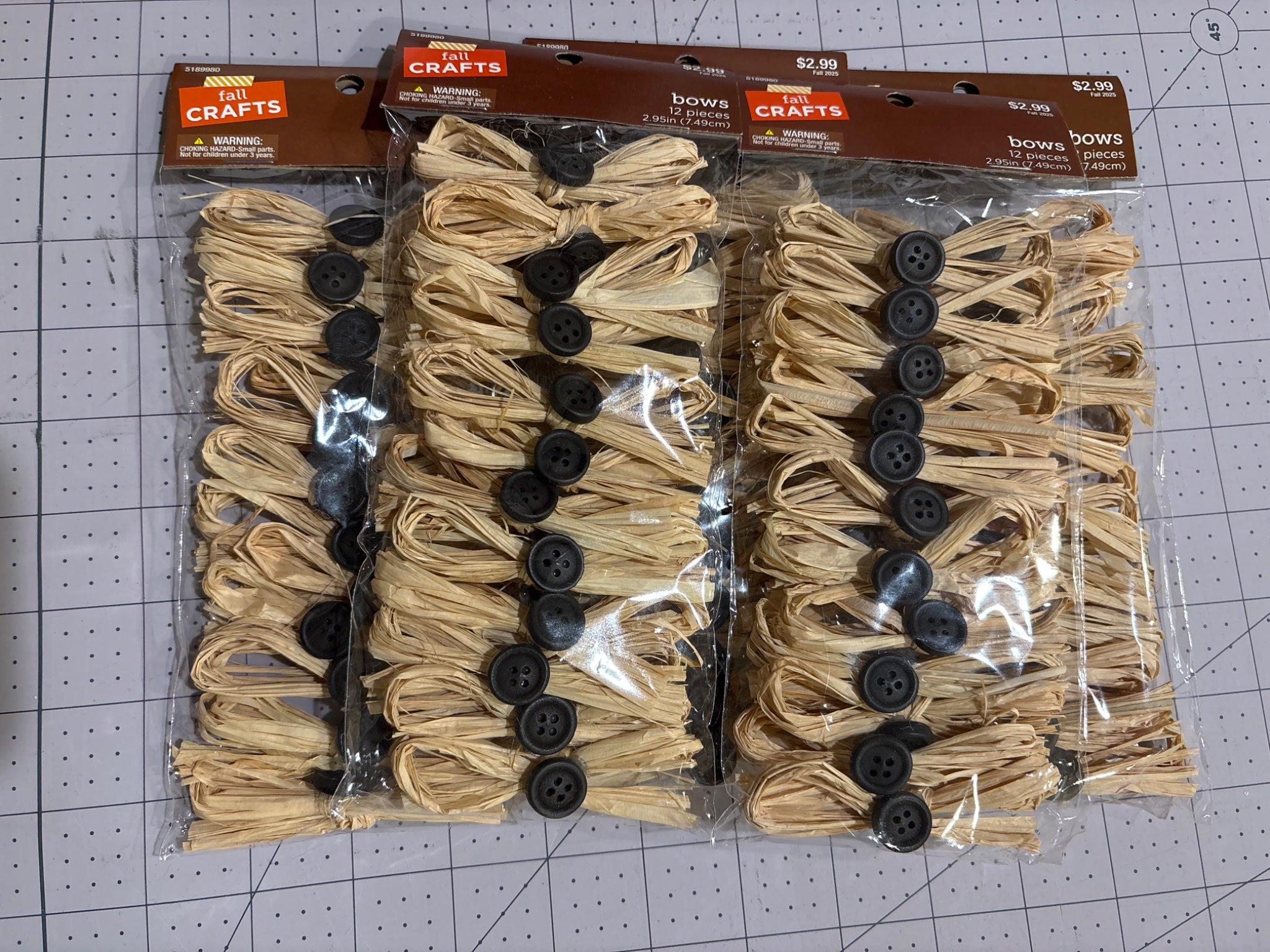 5 packages of raffia bows from Hobby Lobby. All in original packaging. 12 bows in each package.
