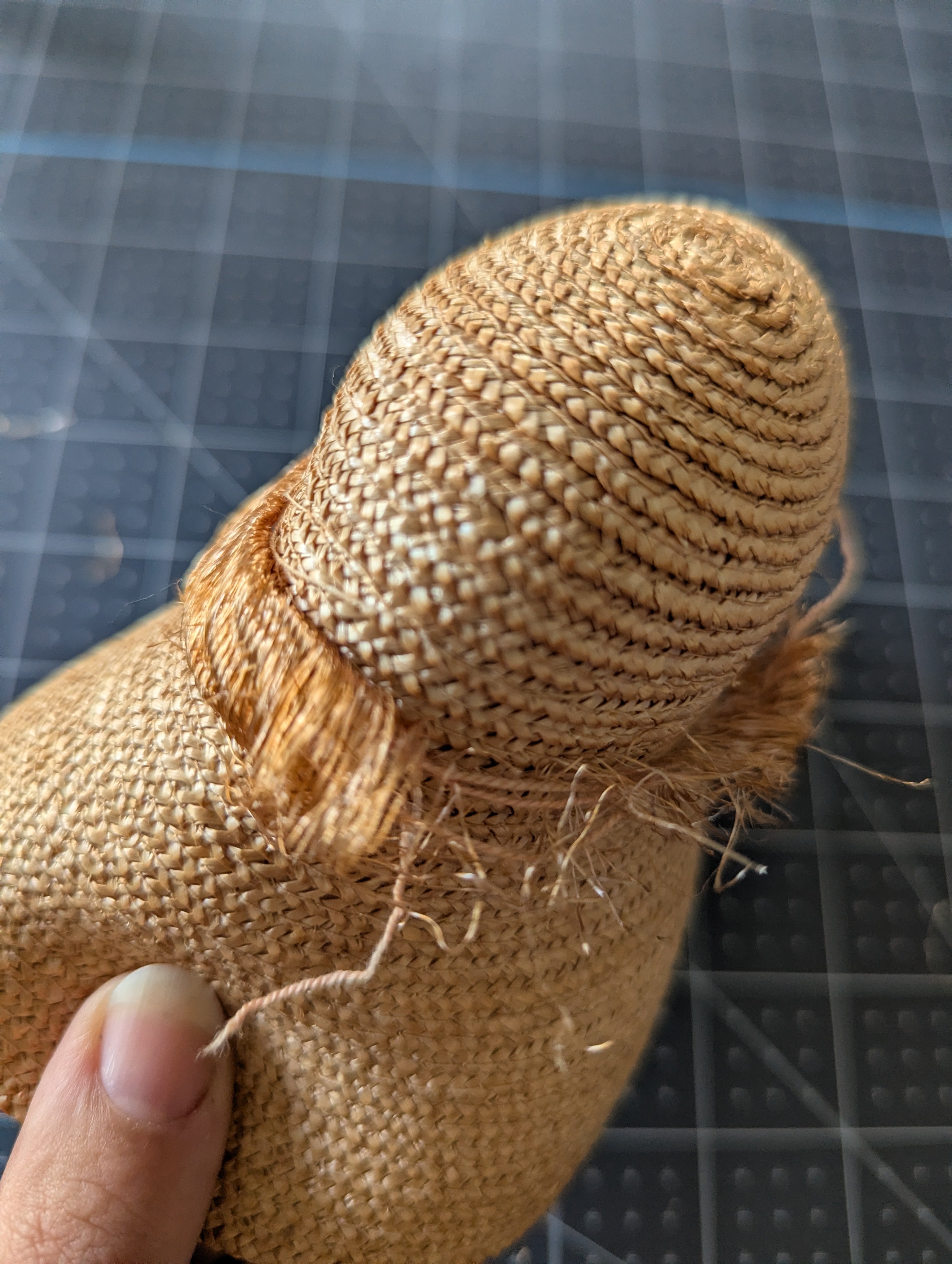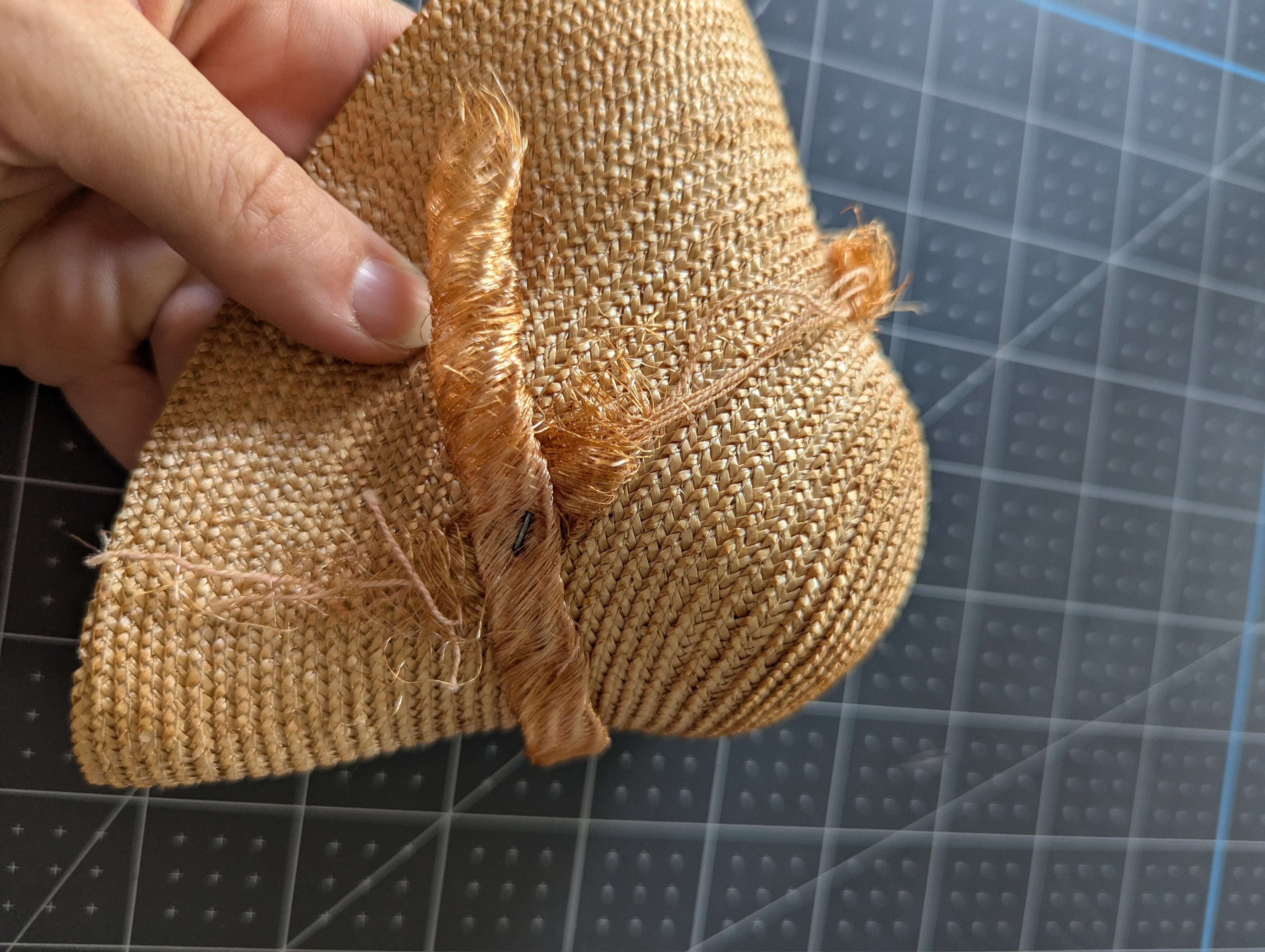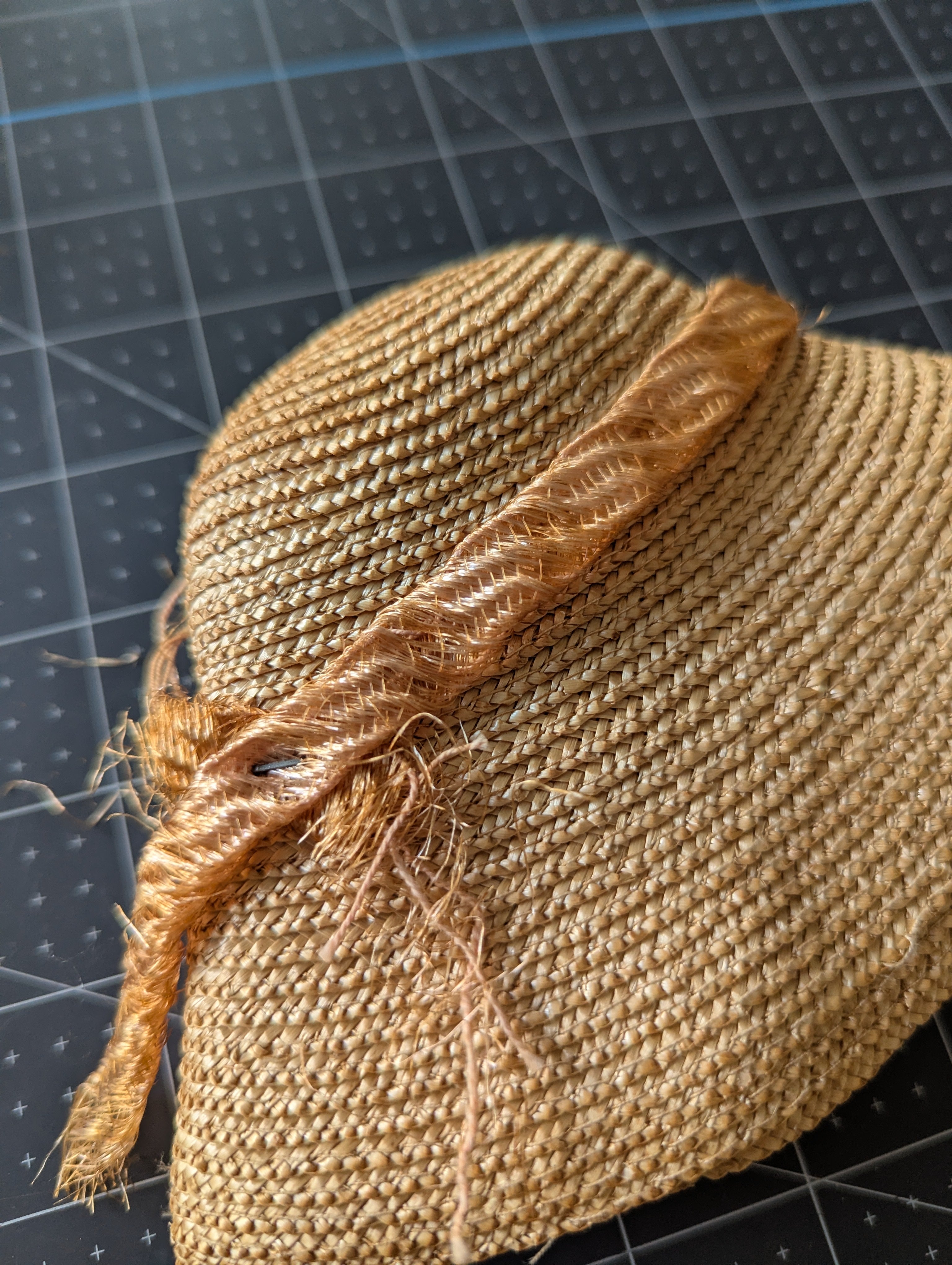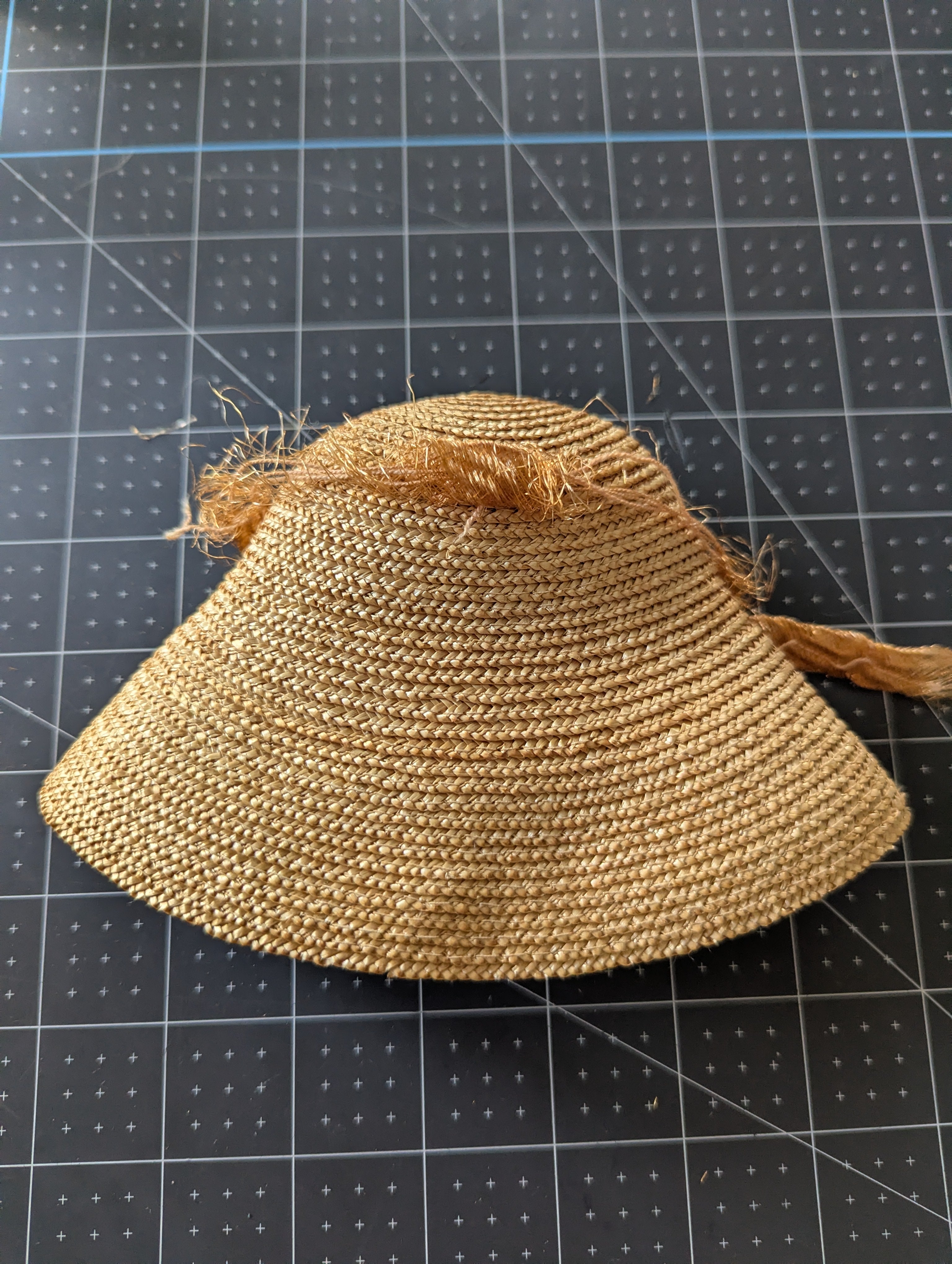 The tie around the hat is shedding quite a bit. The hat itself is in good condition overall.