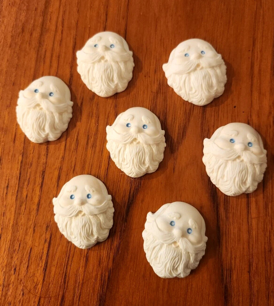 Vintage Set of 7 Christmas Craft Santa Claus Faces - 1.5"