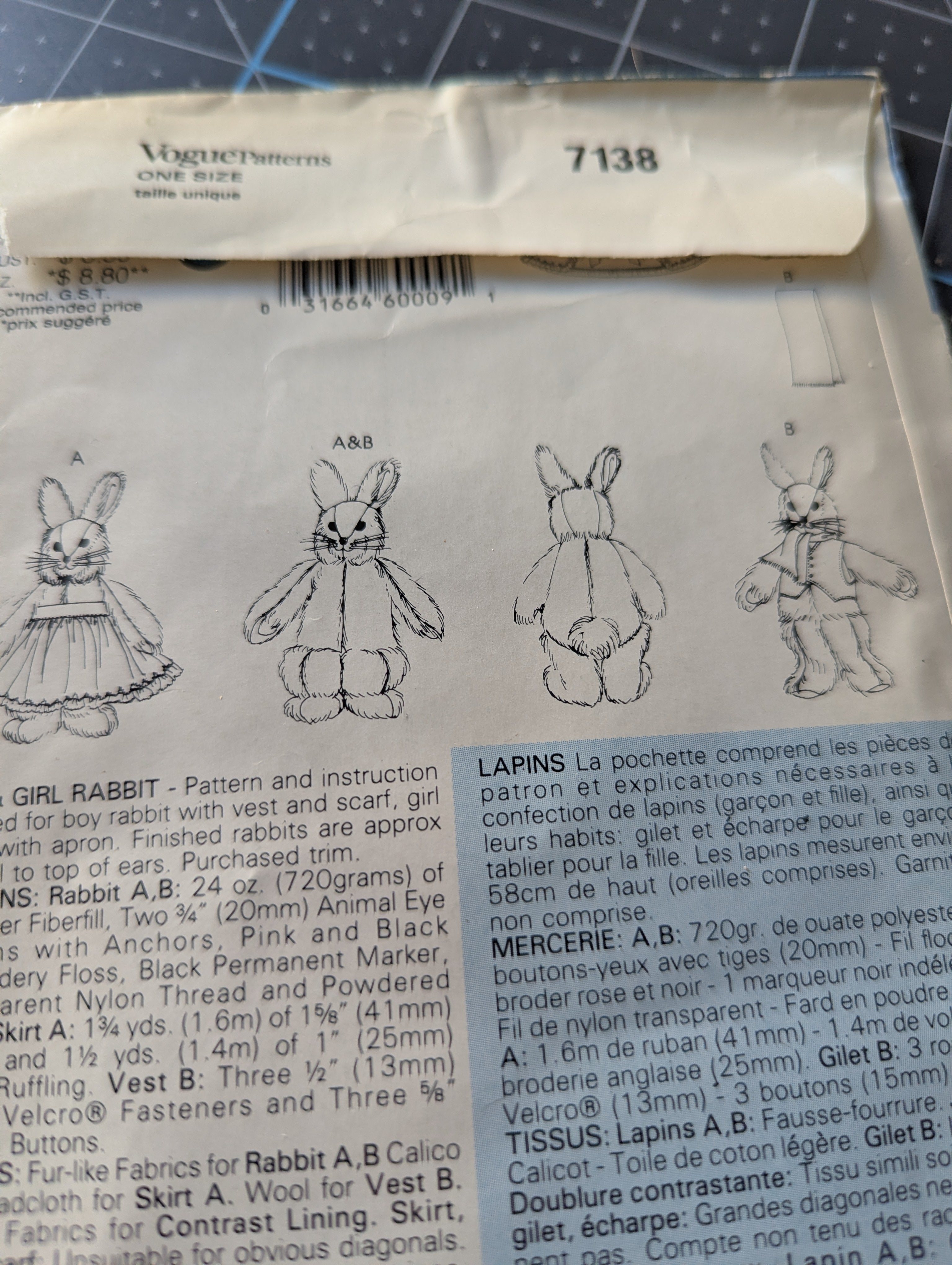 Vogue Patterns - Boy & Girl Rabbit #7138 (1988)