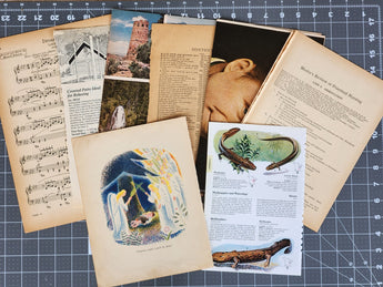 Disclaimer: While I do my best to cursorily screen for and remove potentially offensive content, it is impossible to guarantee that included vintage pages do not contain offensive language and/or images; paper packs comprise authentic relics of the imperfect past. I suggest tearing such pages up and creating something beautiful from the shreds!