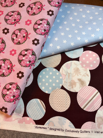 Baby quilt fabric bundle pink blue lot of 3 fabrics 5.5 yds