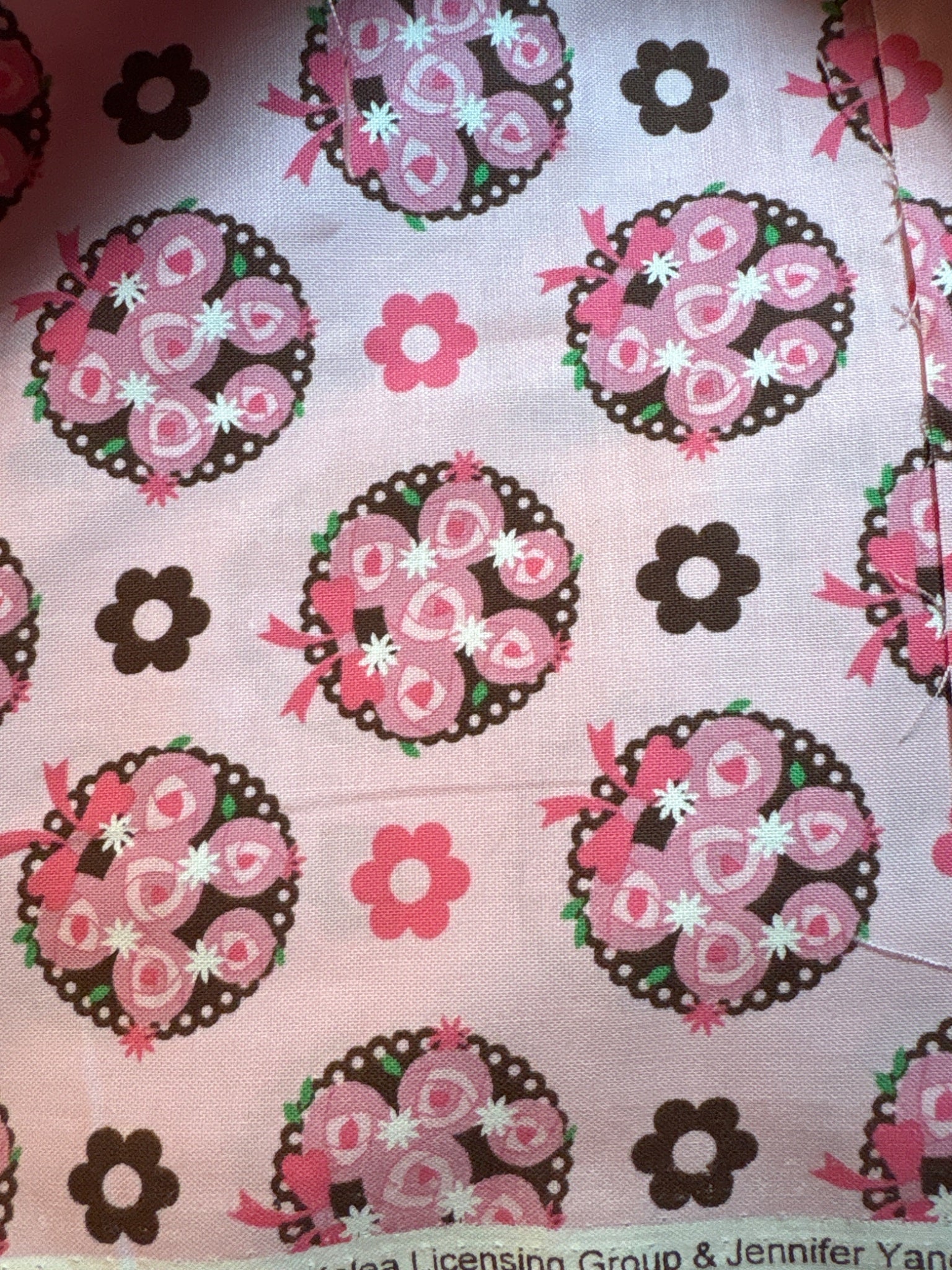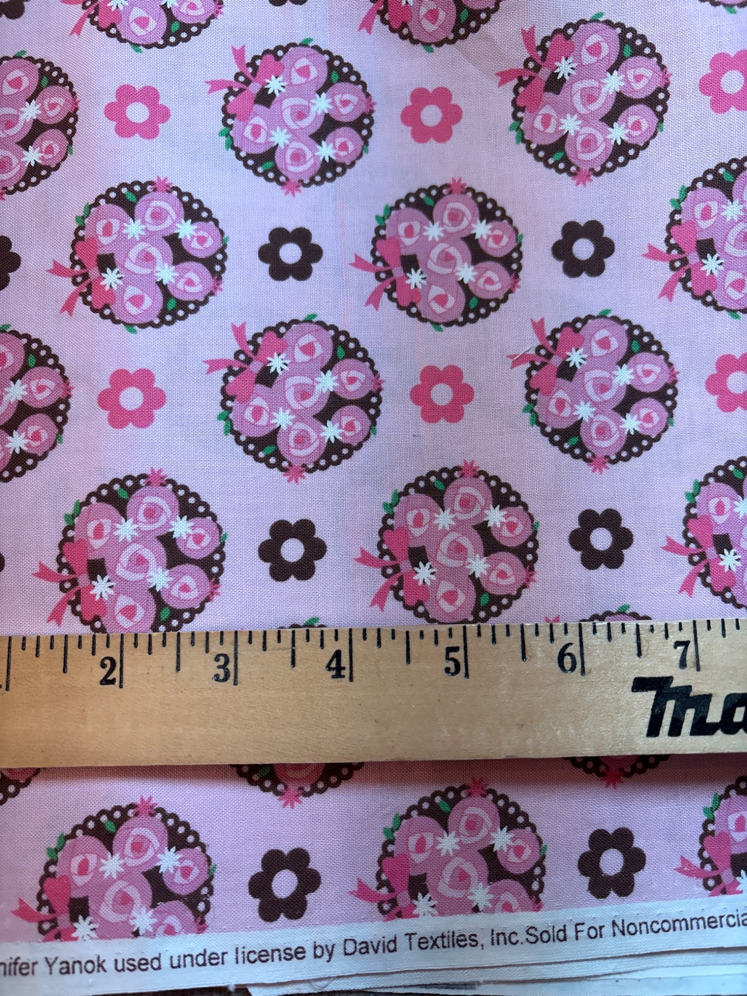 2. pink and brown roses from David Textiles is 2 pieces 2/3 yd x 44"w and 3/4 yd x 44"