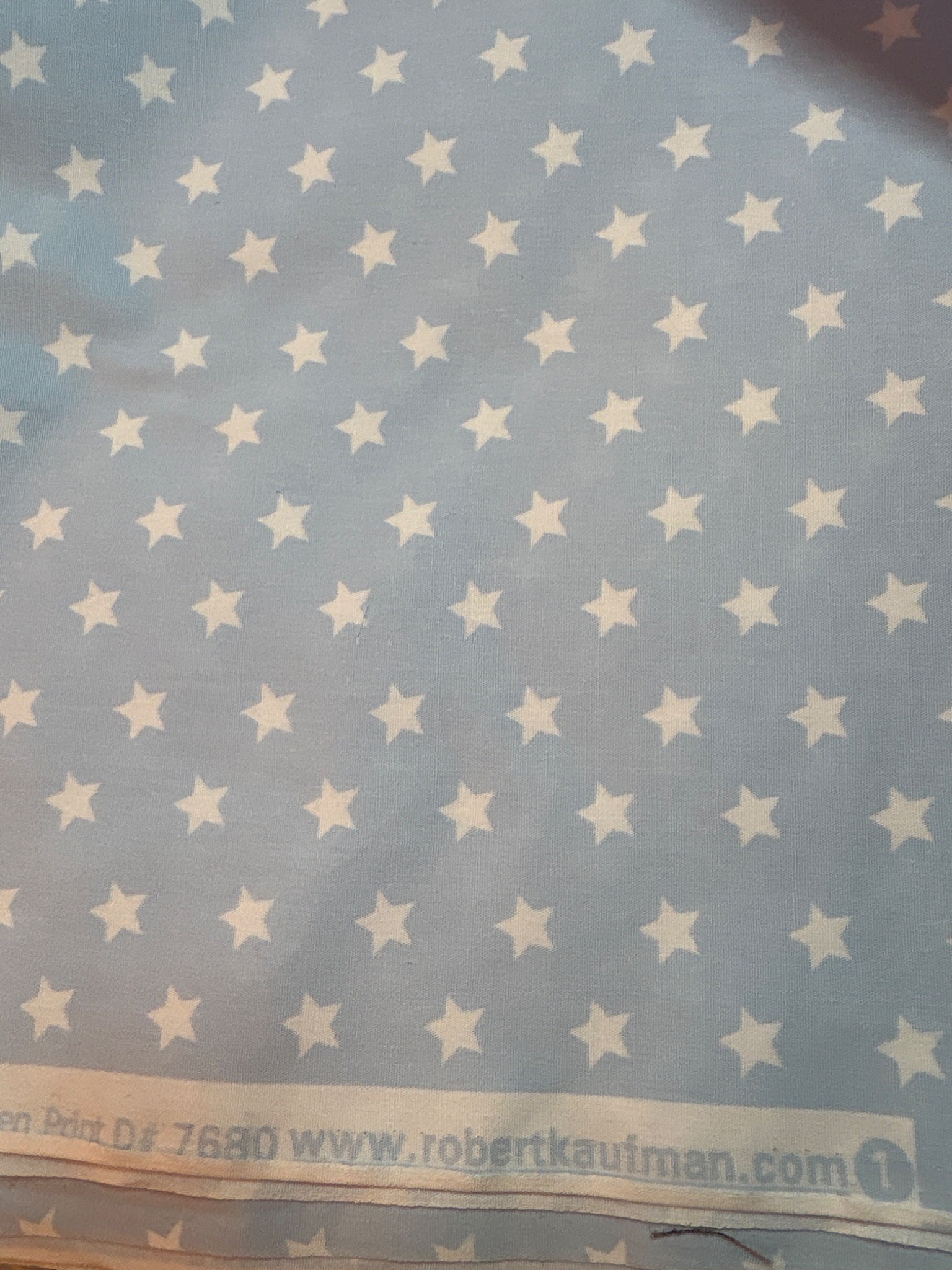 1. Robert Kaufman pastel blue with stars is 2.25 yds x 44"w