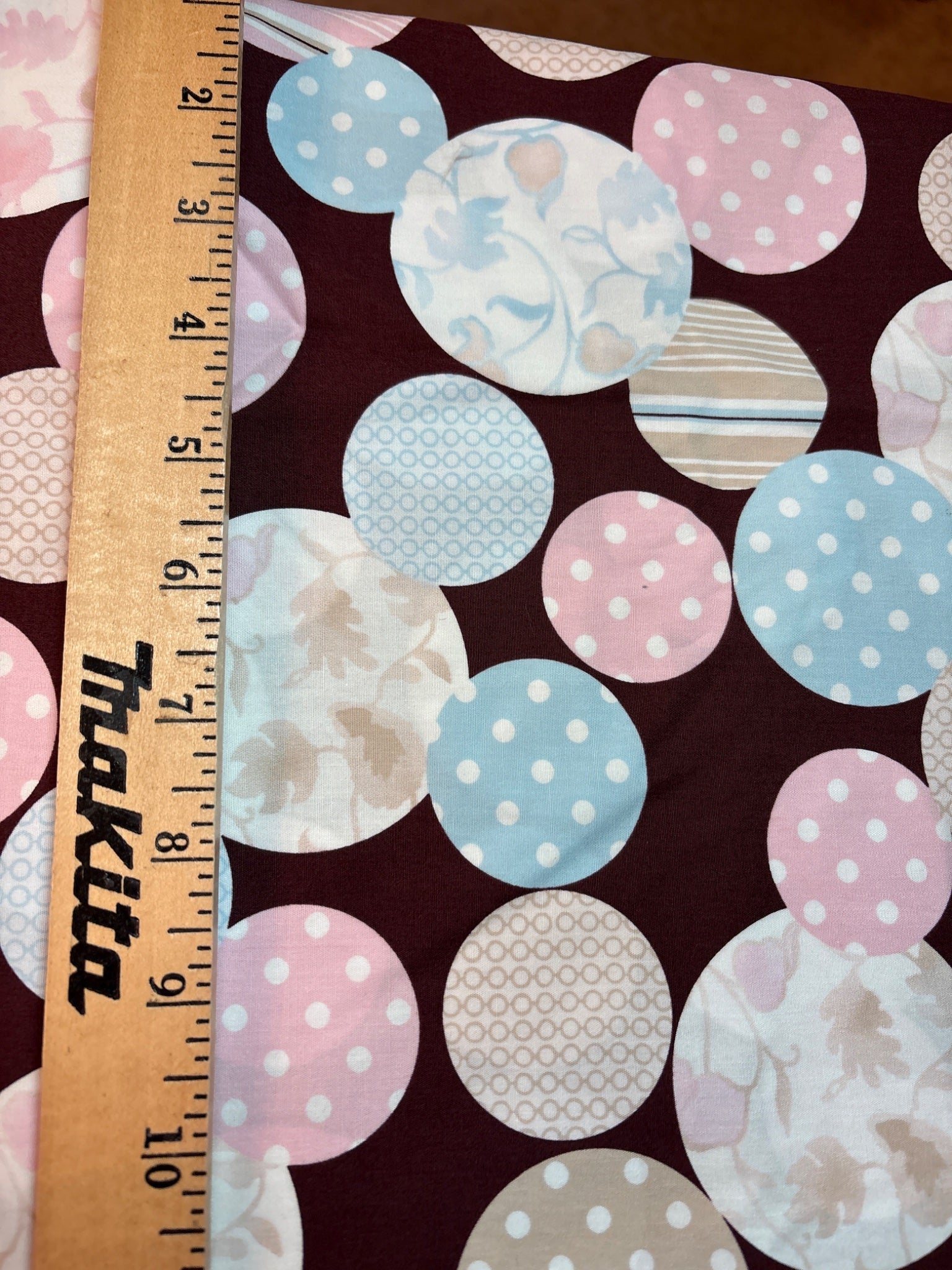 3. brown with pastel circles is 2 yds x 44"