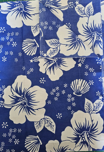Fabric Cotton Poly Blend Floral Blue Hibiscus Tropical Hawaiian 1 Yard x 42" New Unused