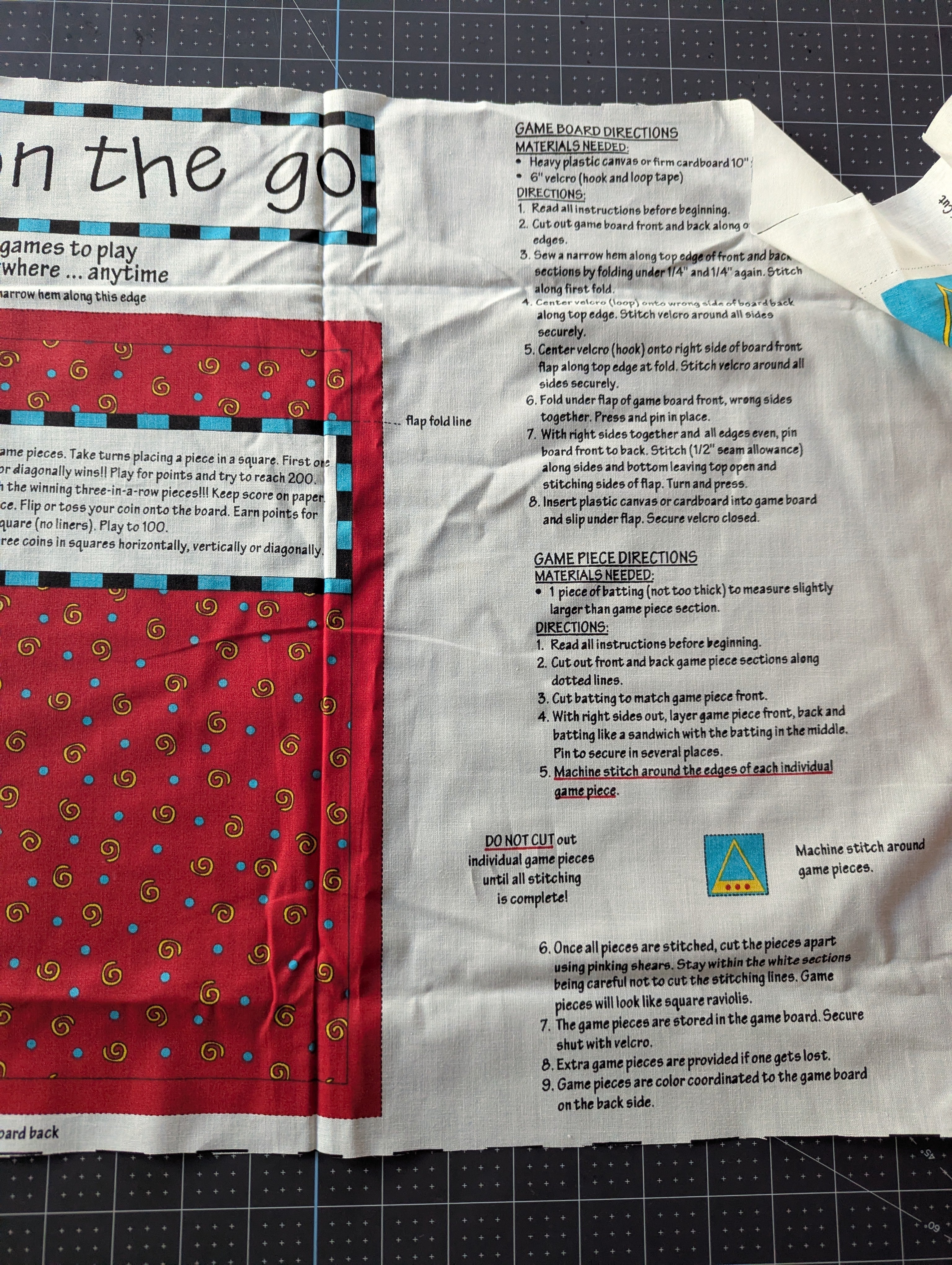 Fabric Kidz on the Go Gameboard Panel Cut-N-Sew Project