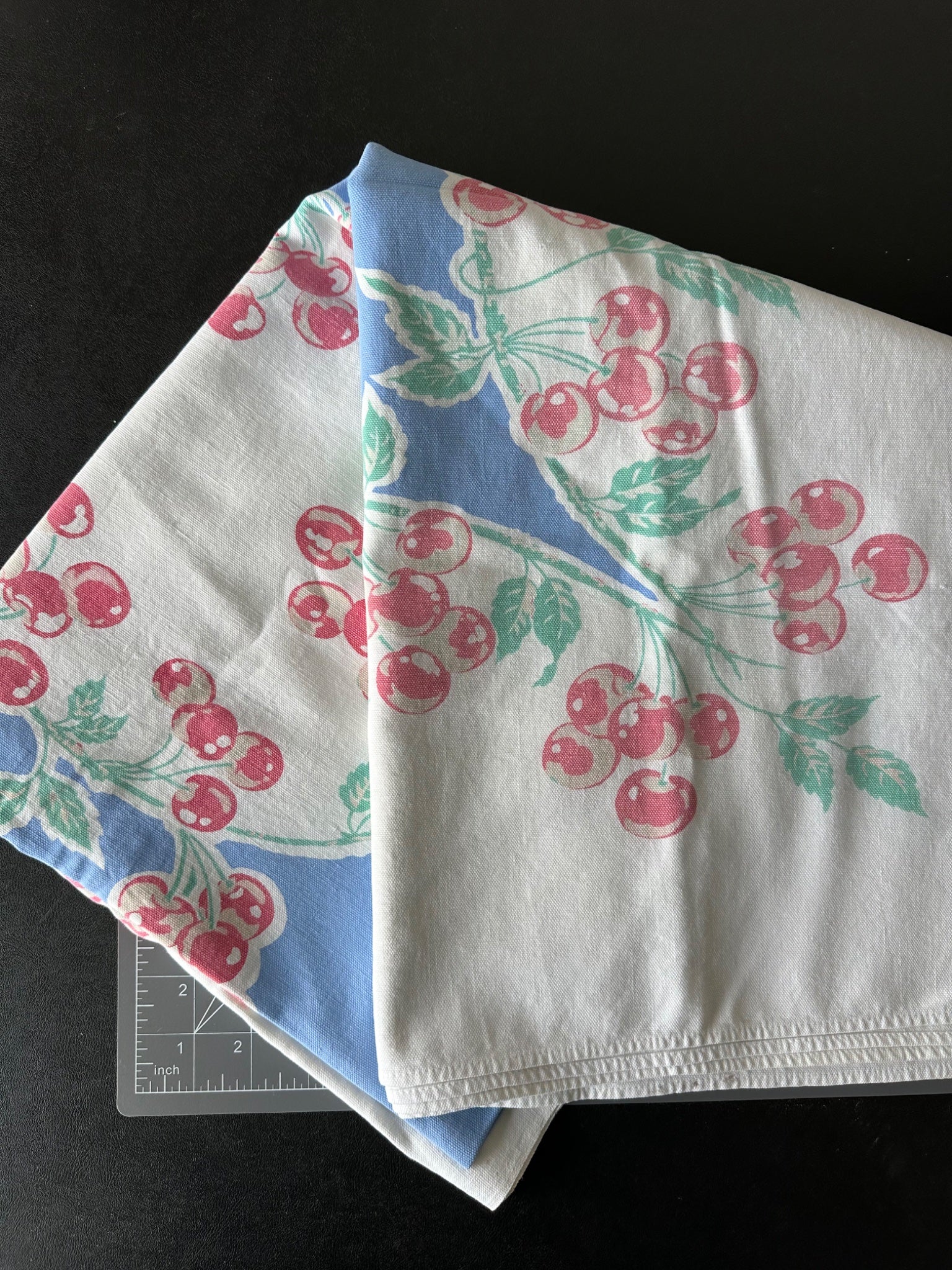 Large Vintage Printed Tablecloth - Cherries - 60 x 52-inches