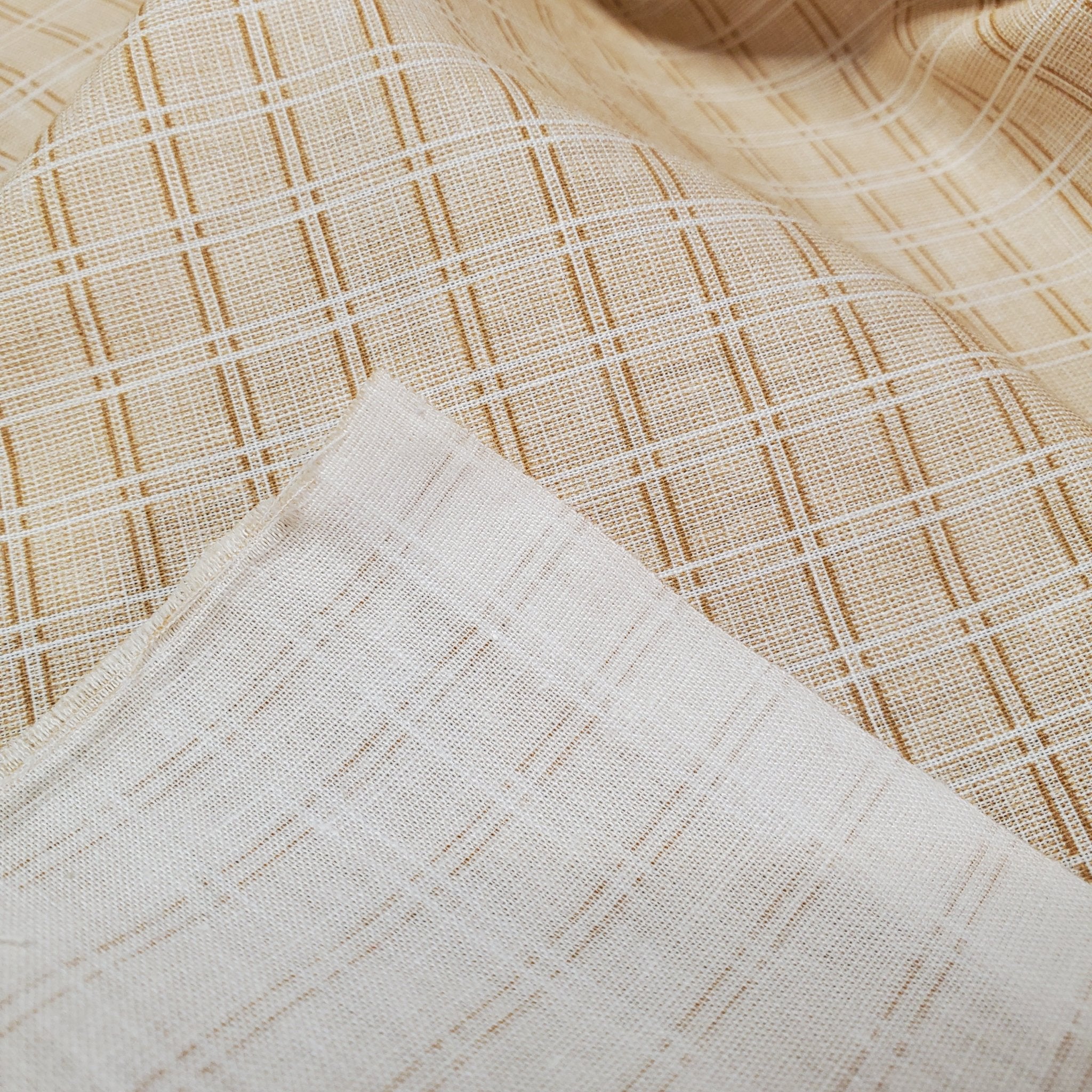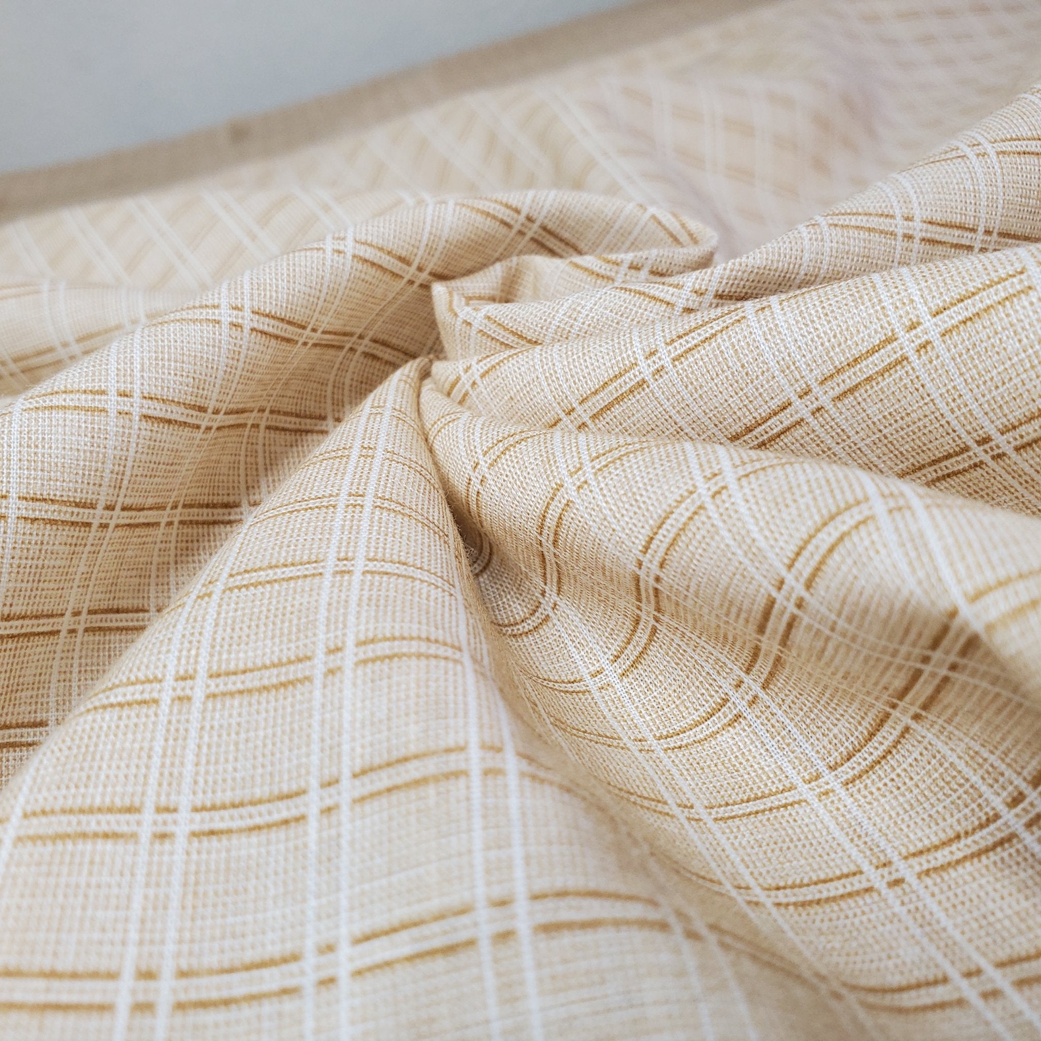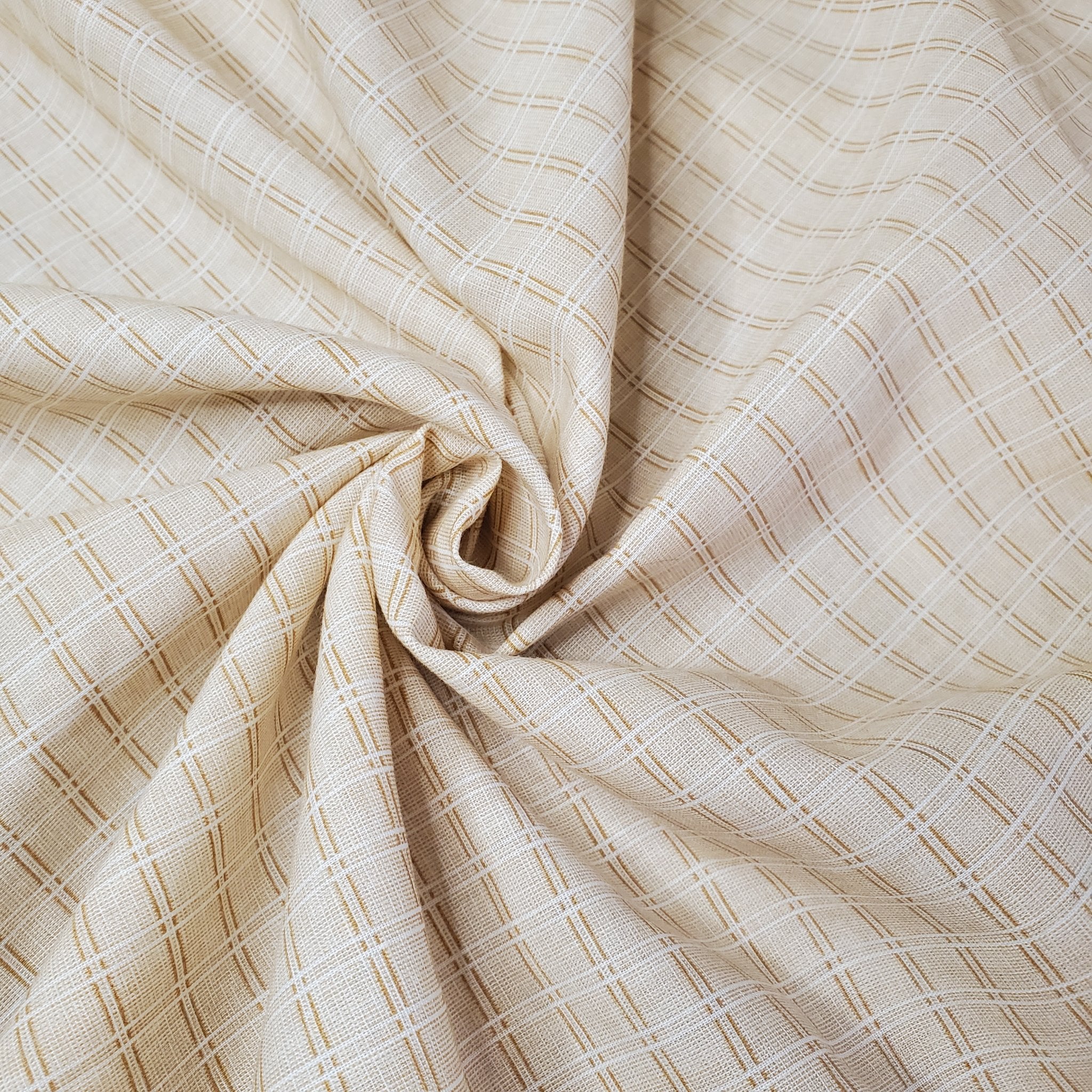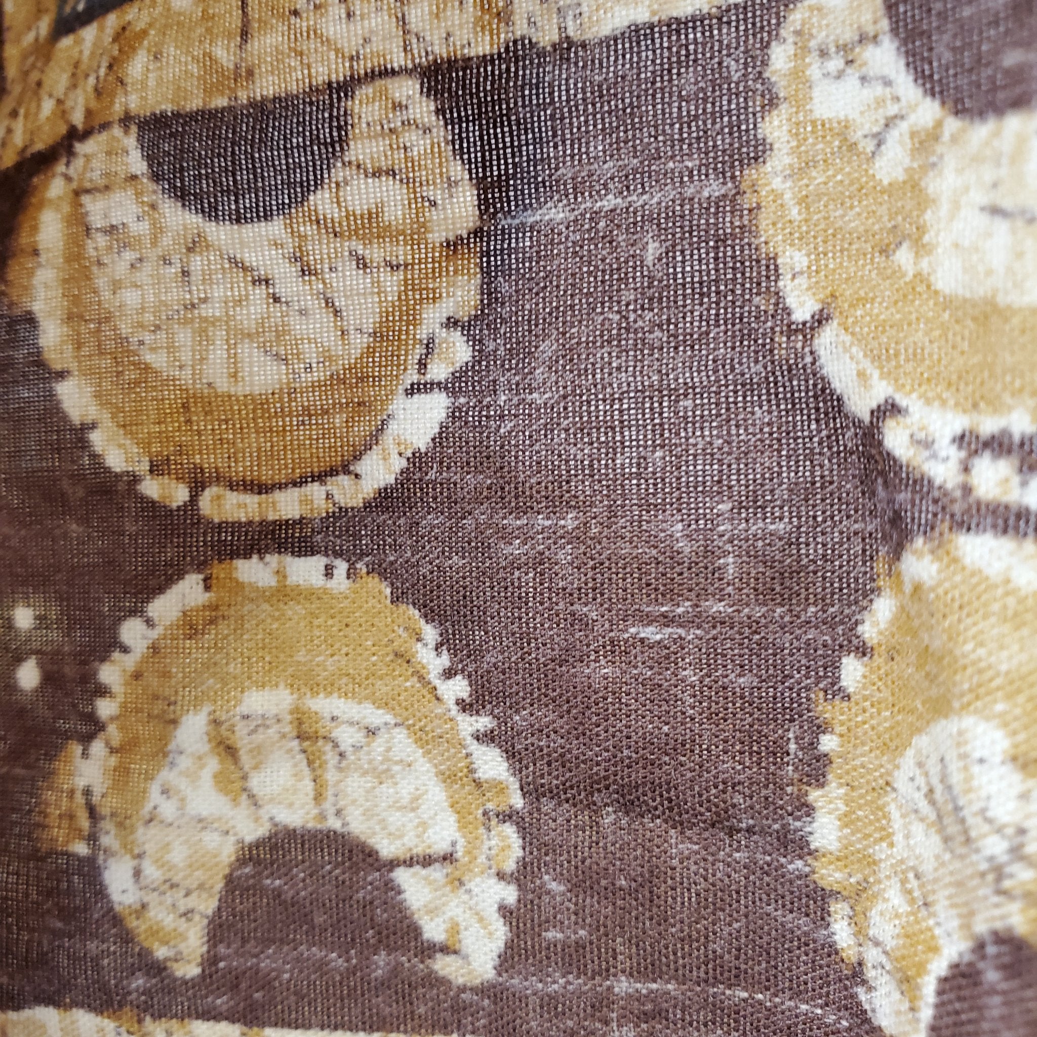 44" Width - We have 1 Yard 10" of the darker print. It looks like it could pass for a tiki bar fabric, right? This is much thinner than a quilting cotton. So we aren't sure if this is cotton lawn or just a thin cotton in general. There is a little more than what we've measured but we only calculated what is uncut.
