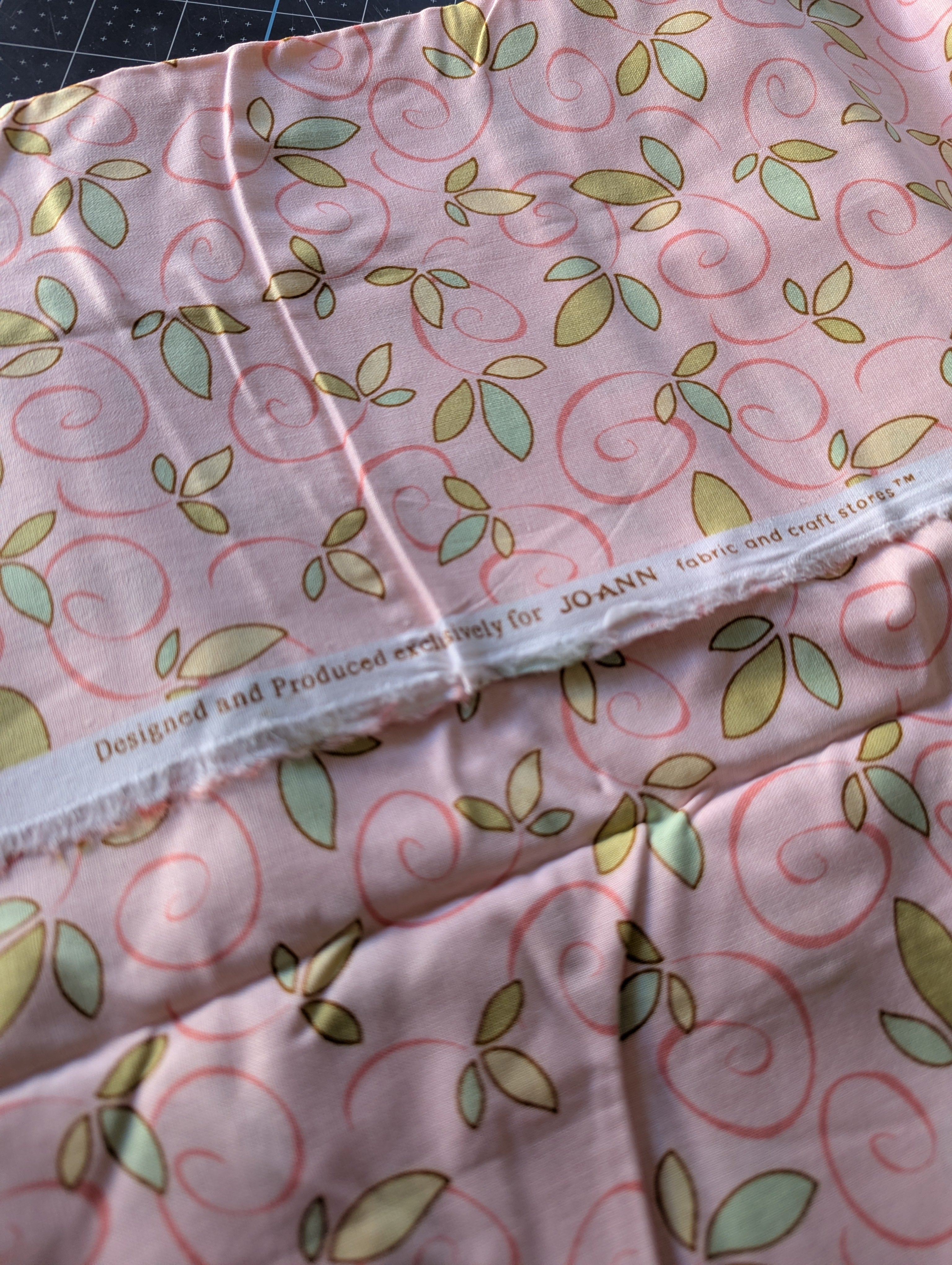 Pink Leaves Joann Fabric Remnant - 42 x 32 inches