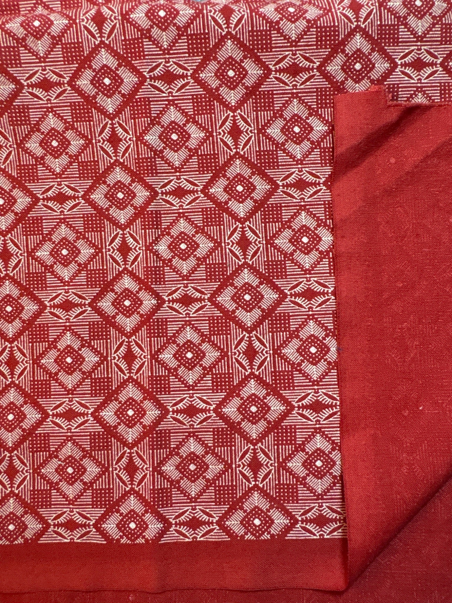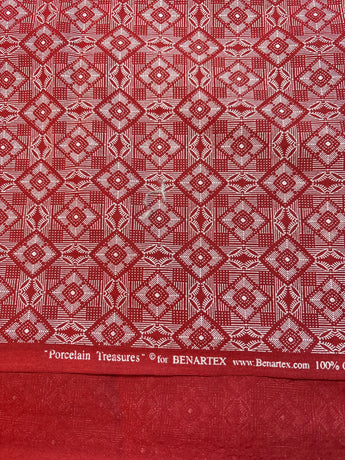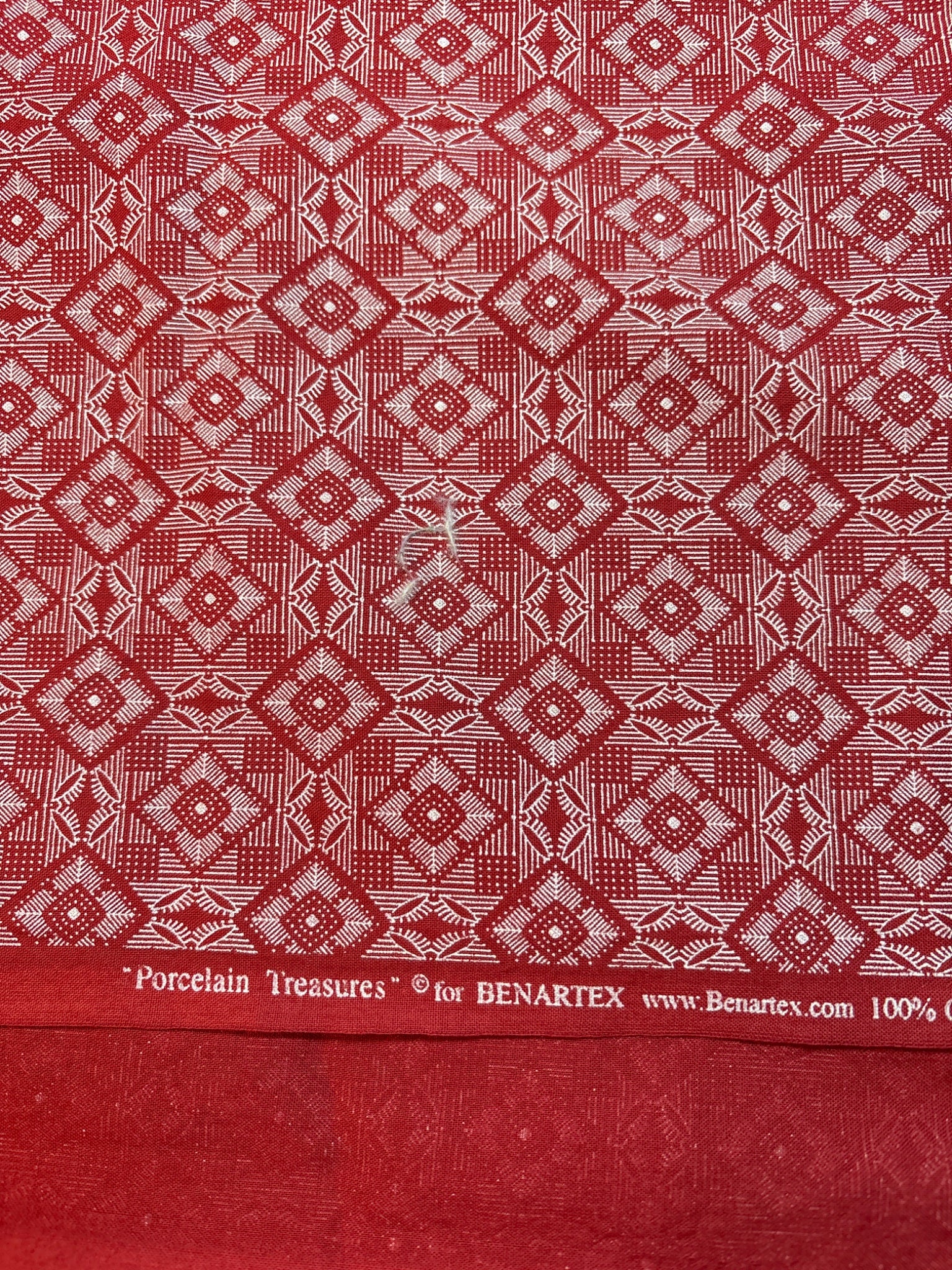 By the yard x 40" w, 3 yds available. Would be fun for Christmas or Valentine projects. Quilt weight cotton washed and ironed. It's called Porcelain treasures.
