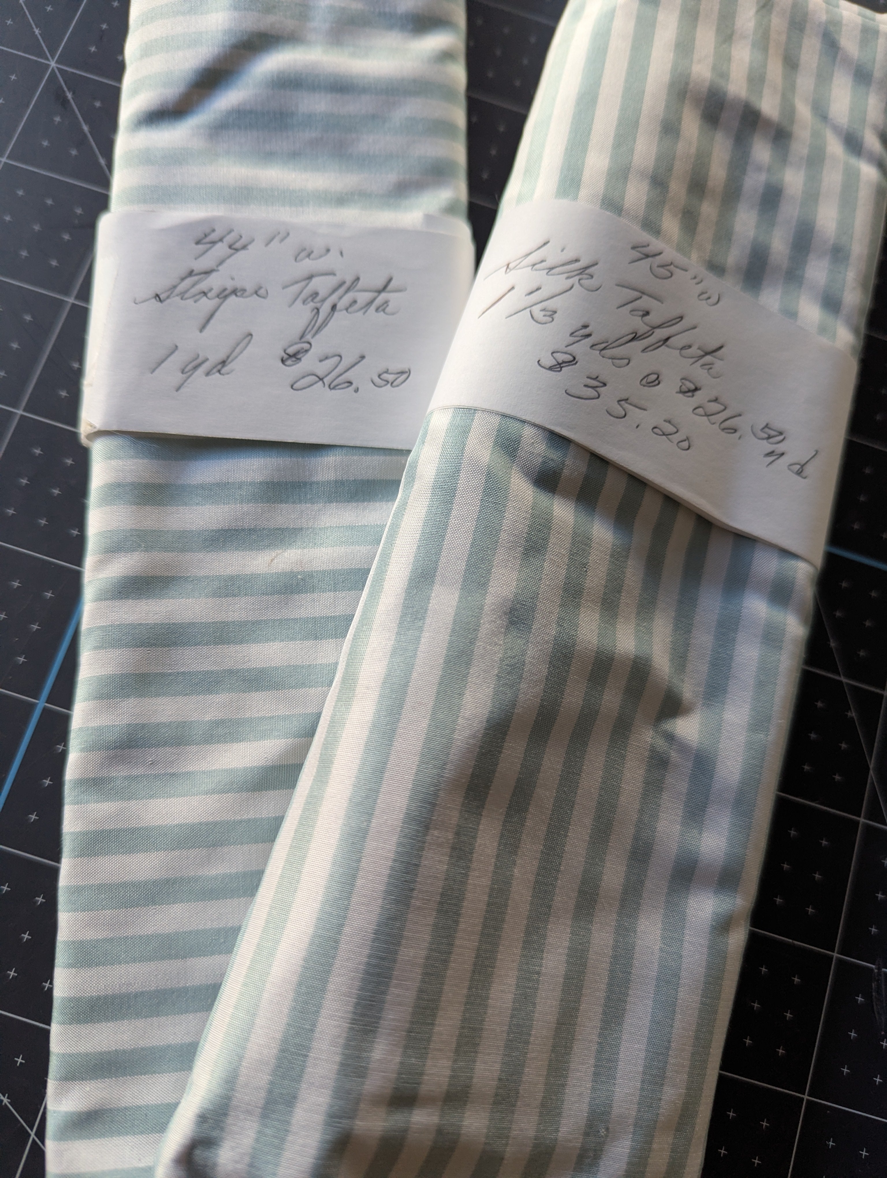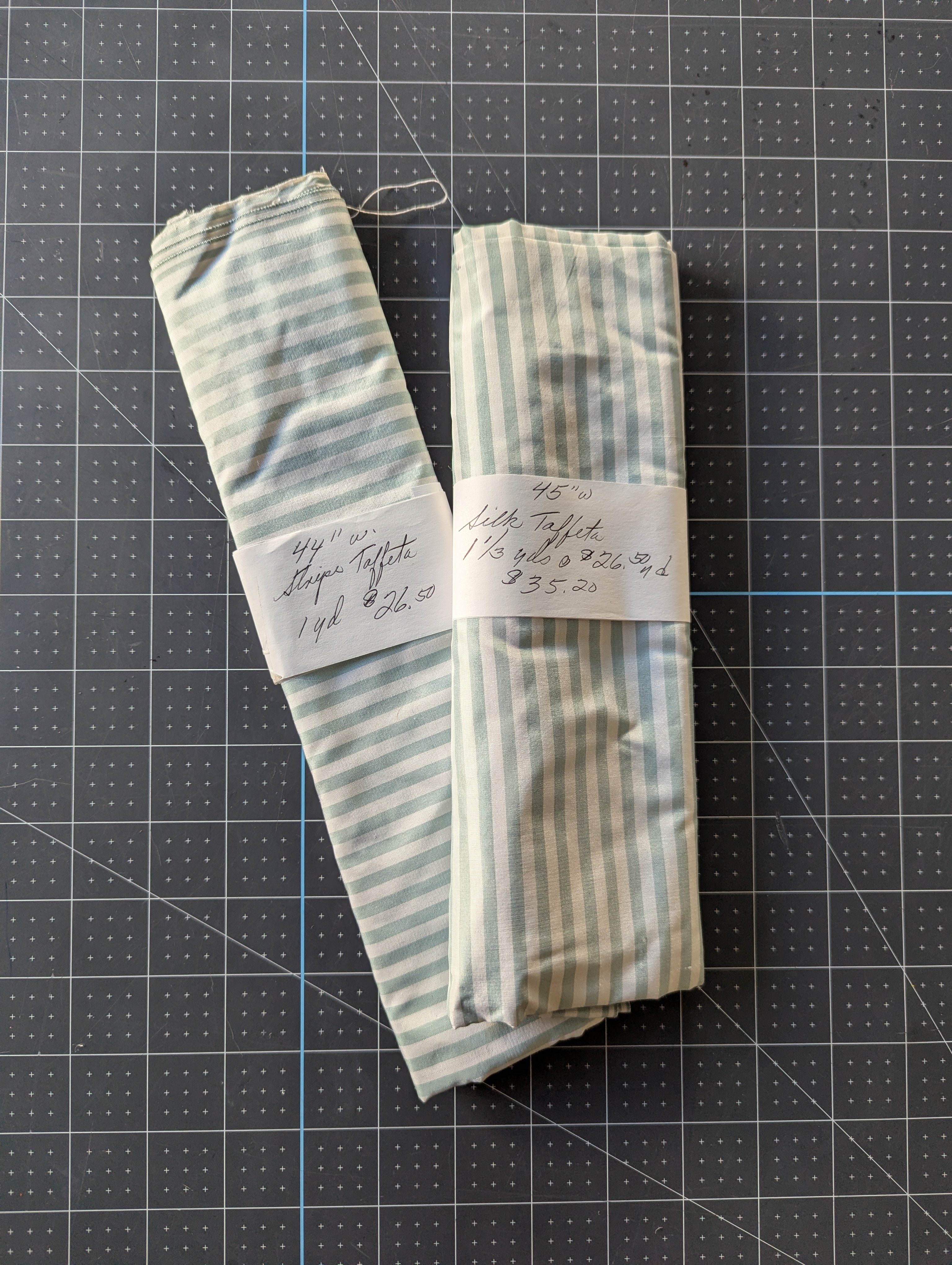 These are cut pieces still wrapped and marked from the original purchase. They came from a vintage estate collection.